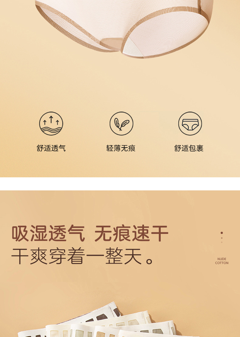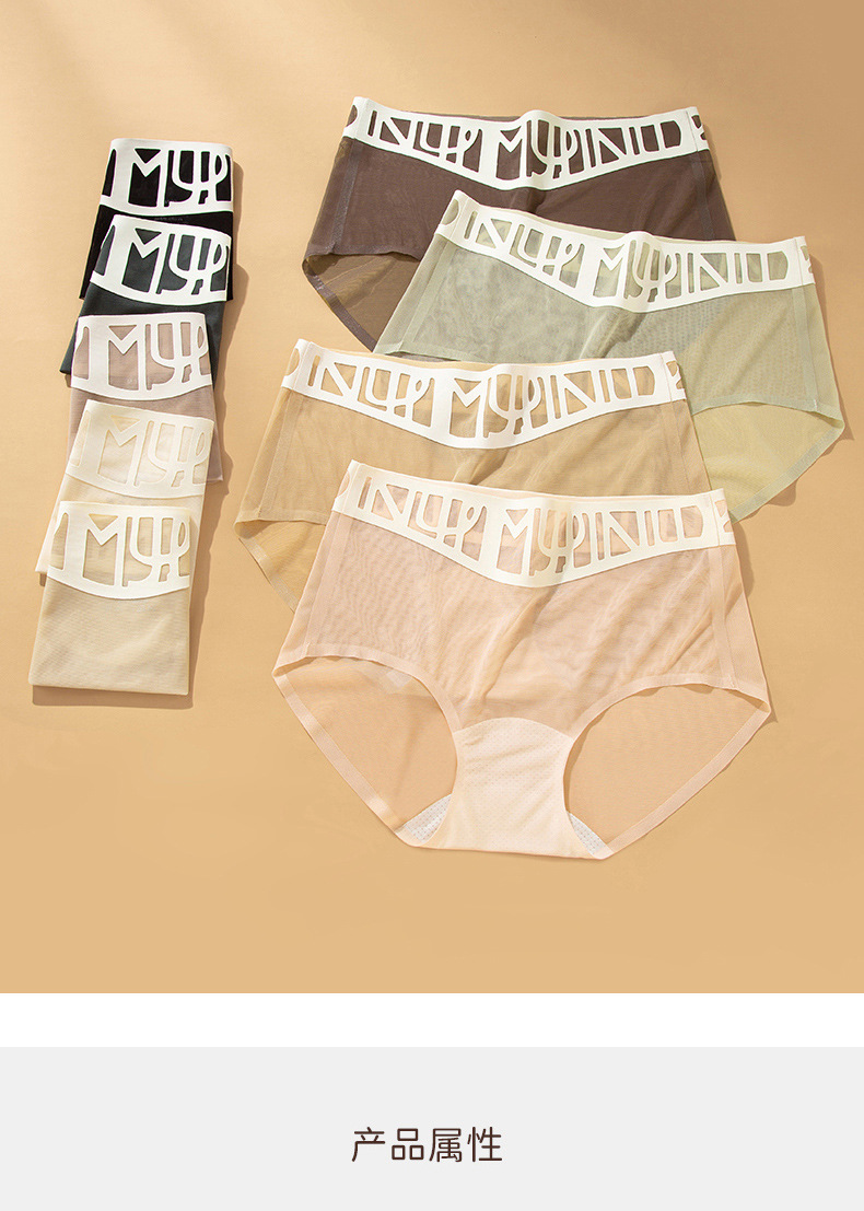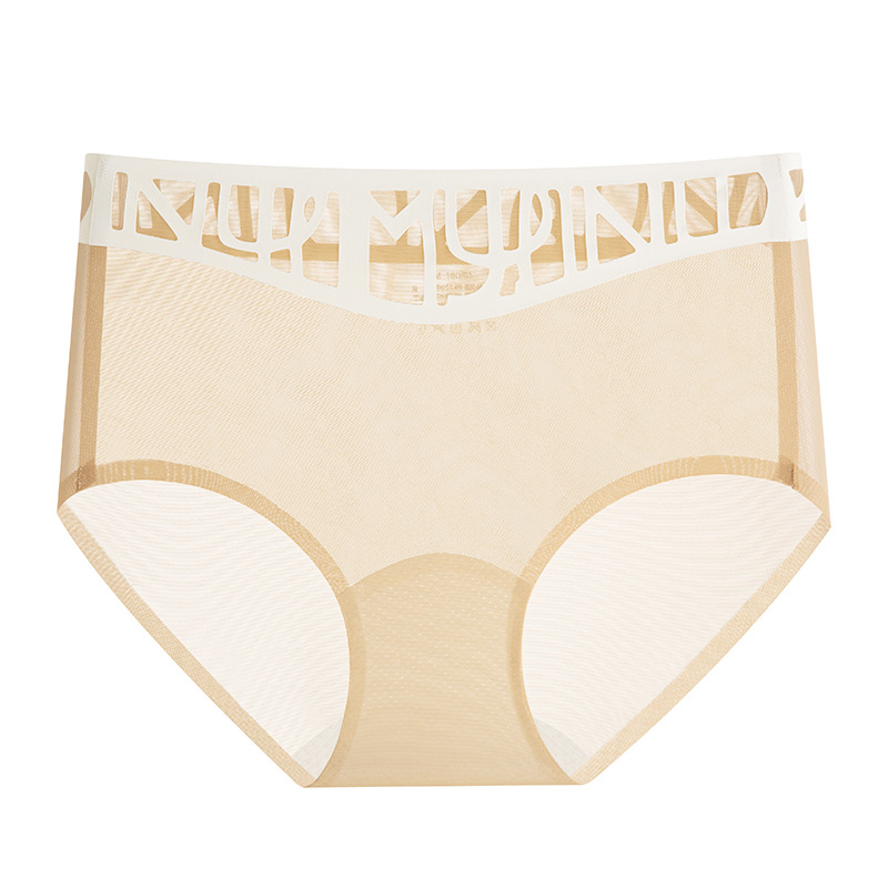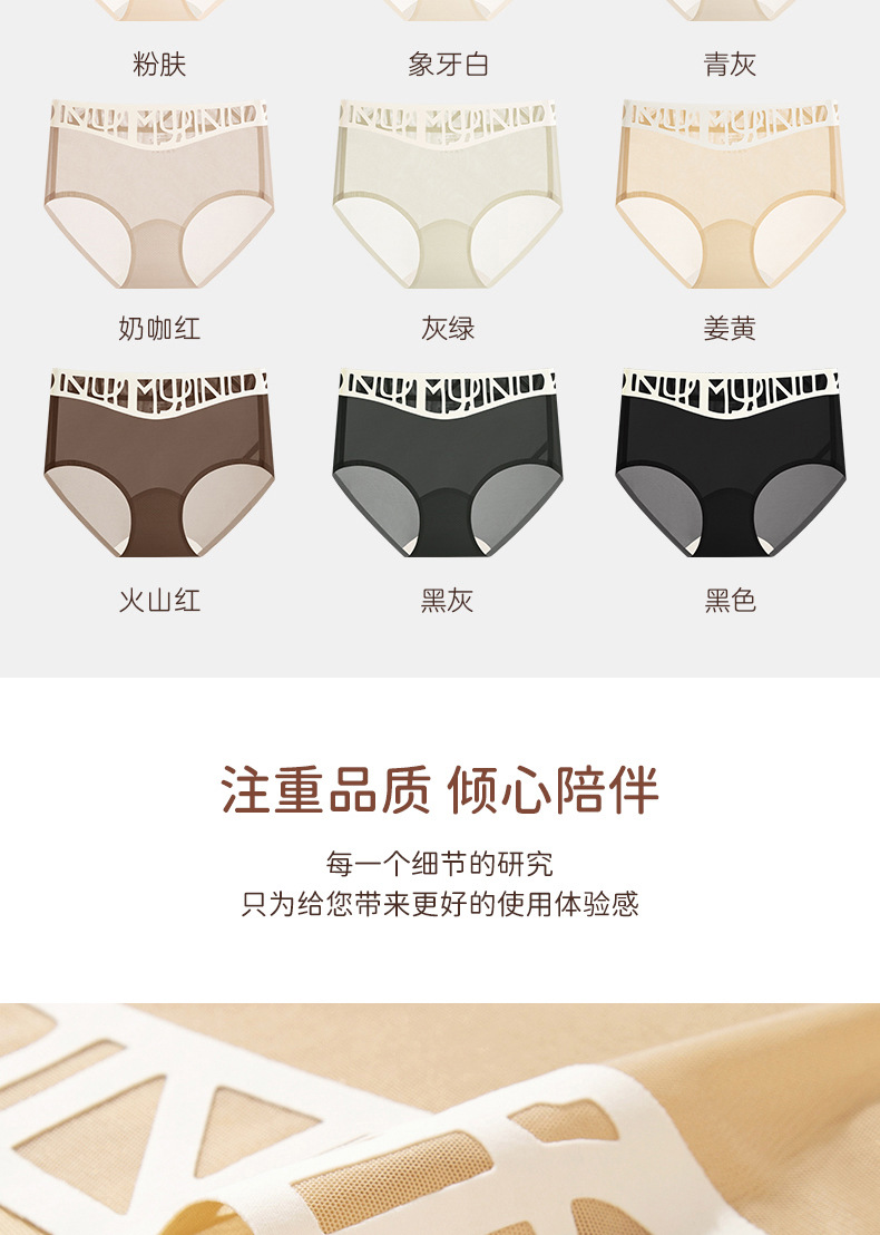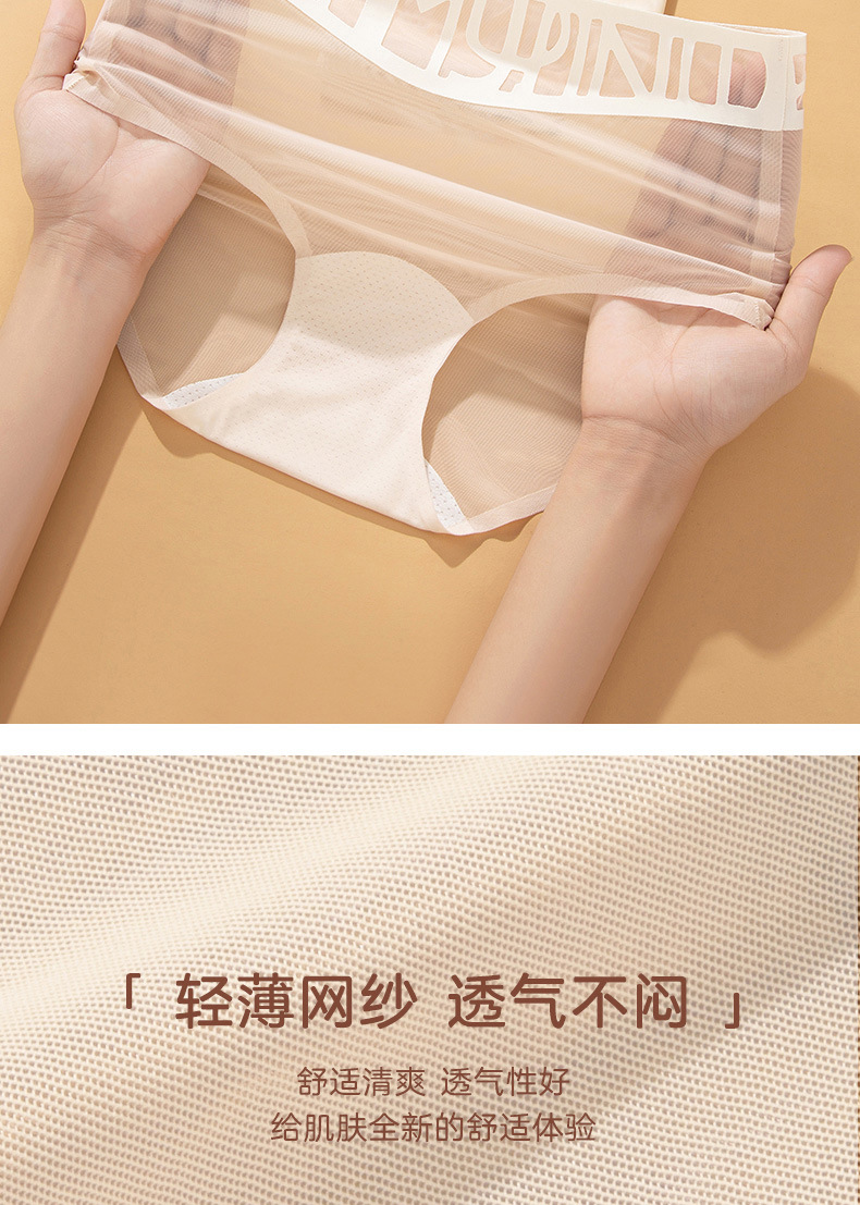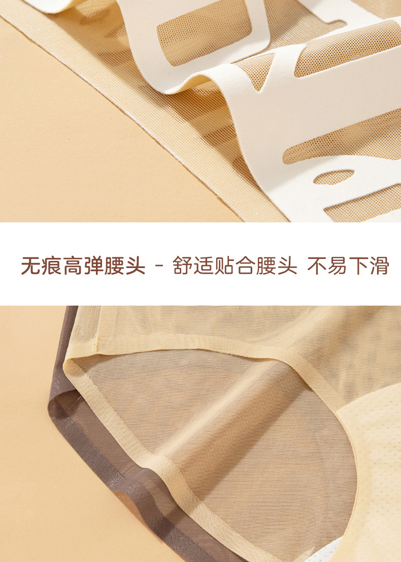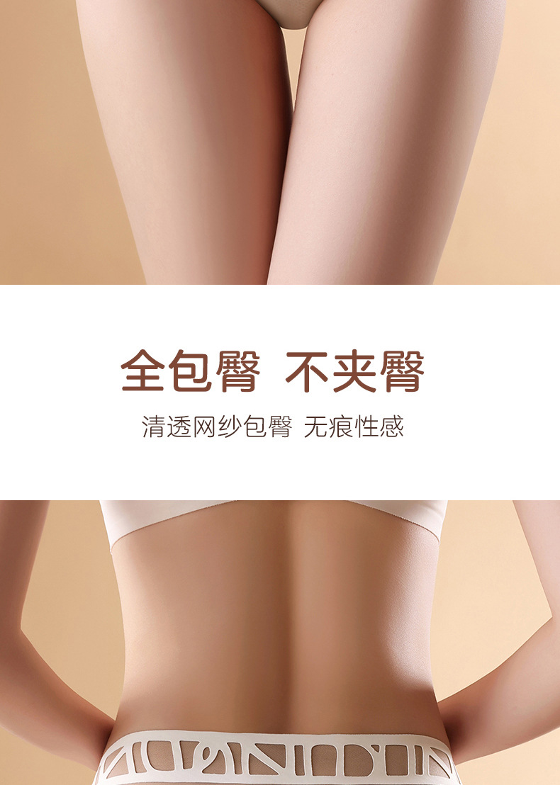 速干运动风女士内裤性感网纱透气无痕内裤蚕丝蛋白中腰收腹裤