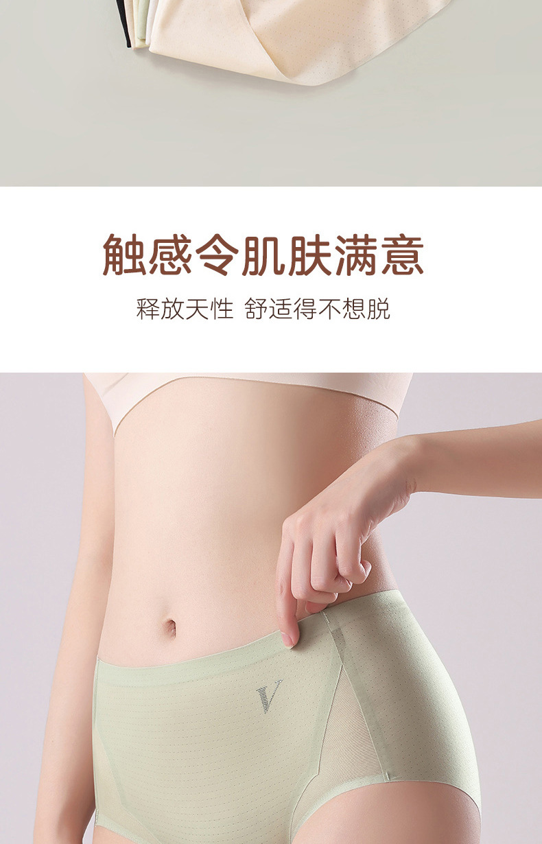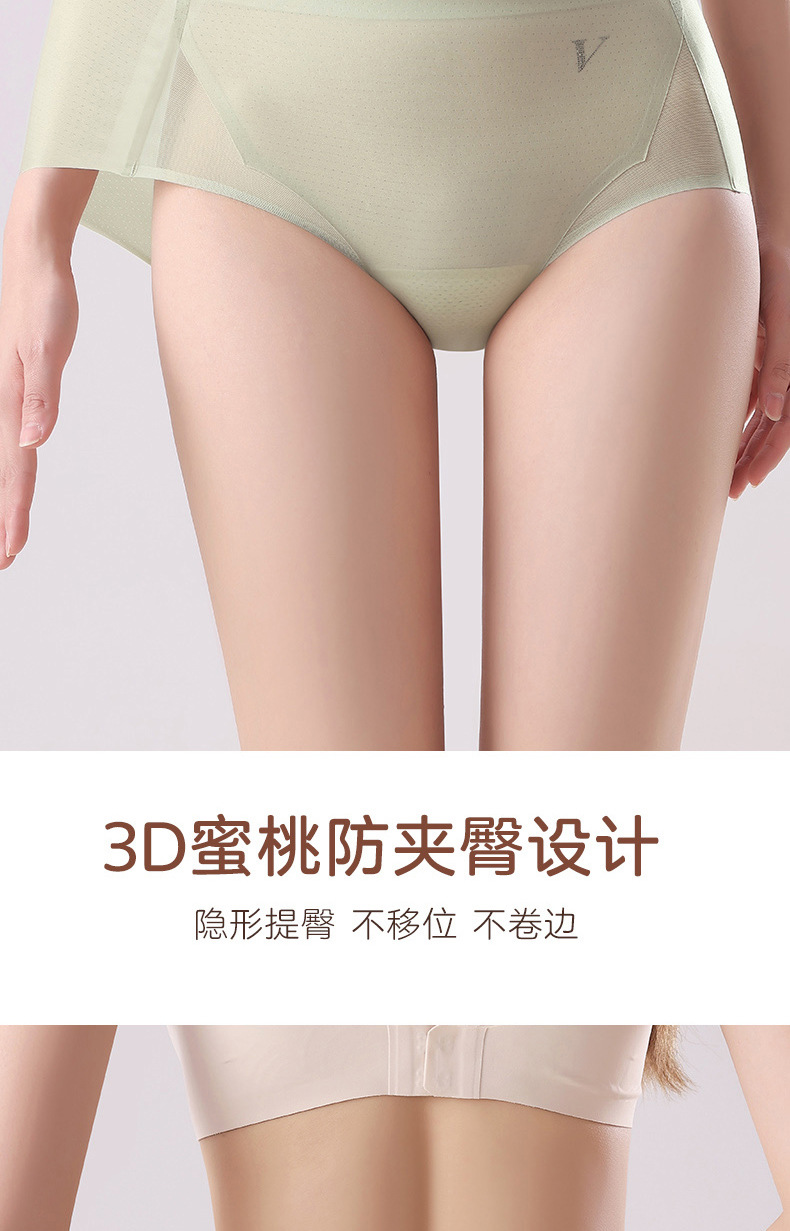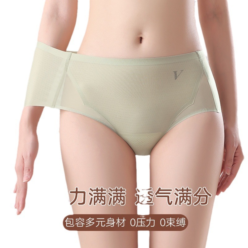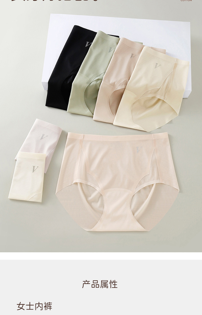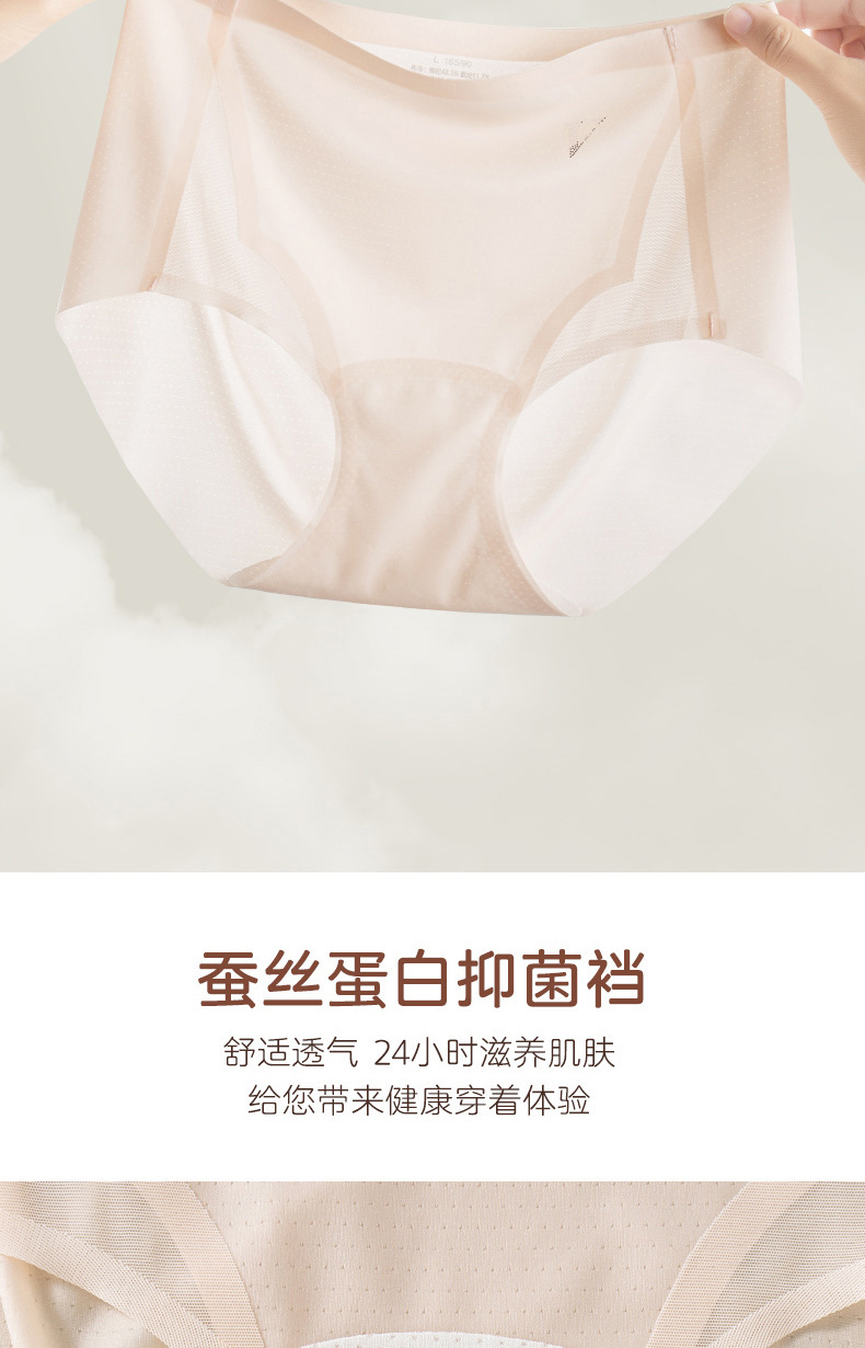 新款冰丝无痕收腹中高腰内裤女蚕丝蛋白软面膜性感女士内裤