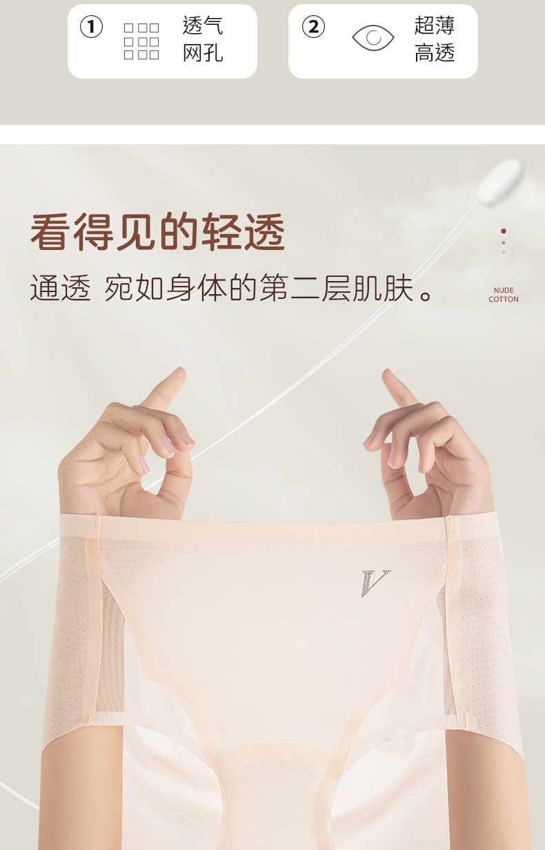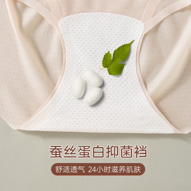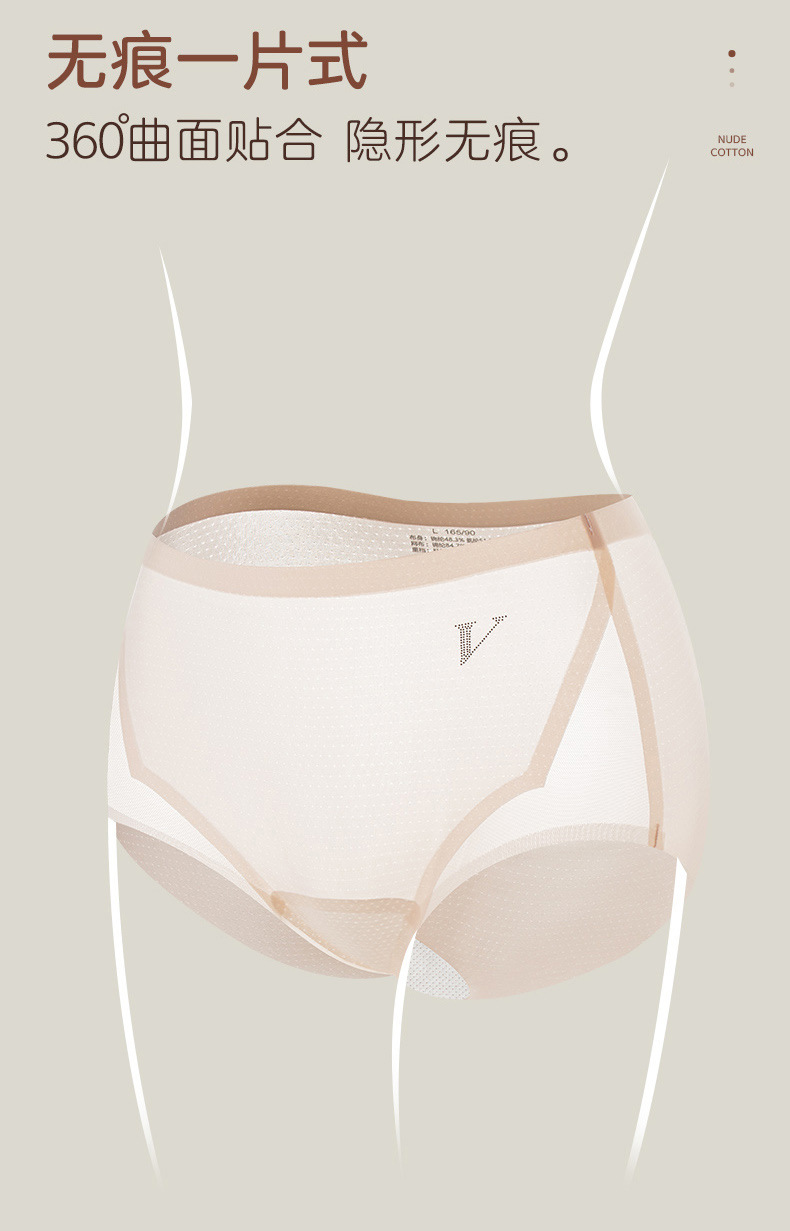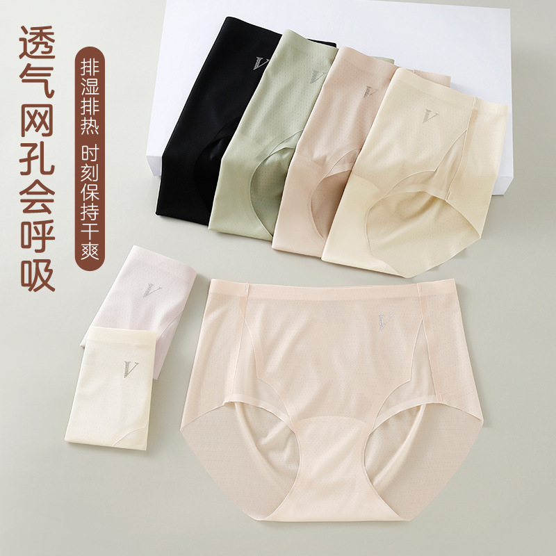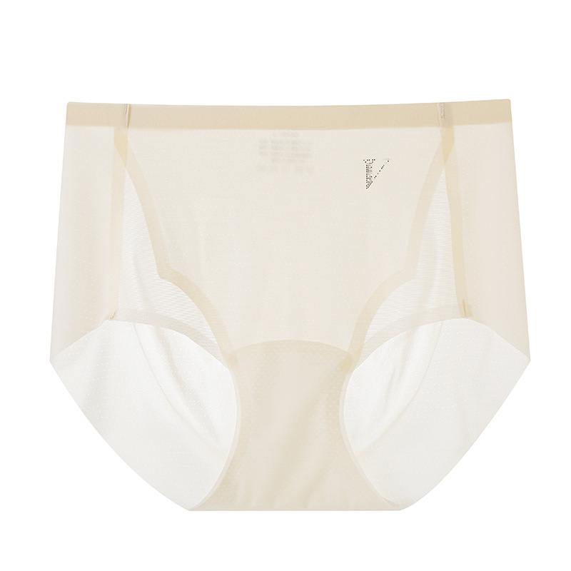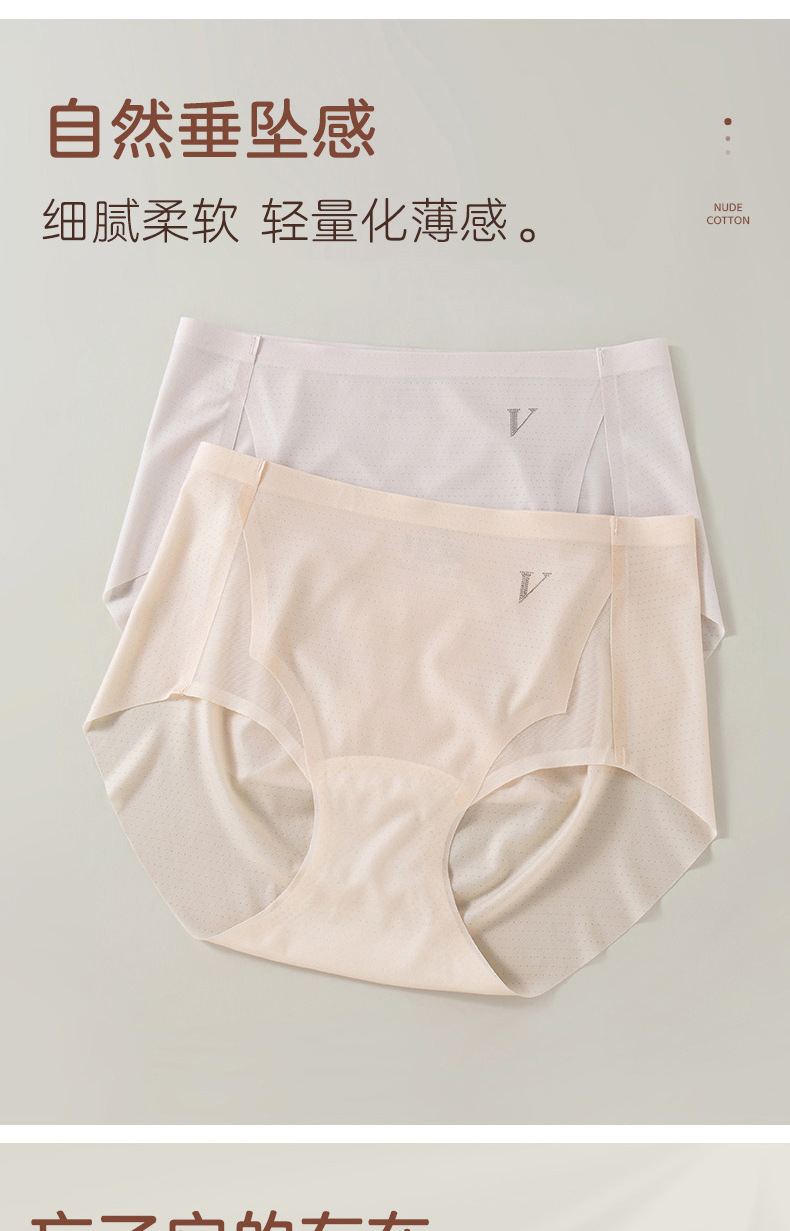 新款冰丝无痕收腹中高腰内裤女蚕丝蛋白软面膜性感女士内裤