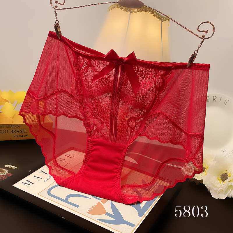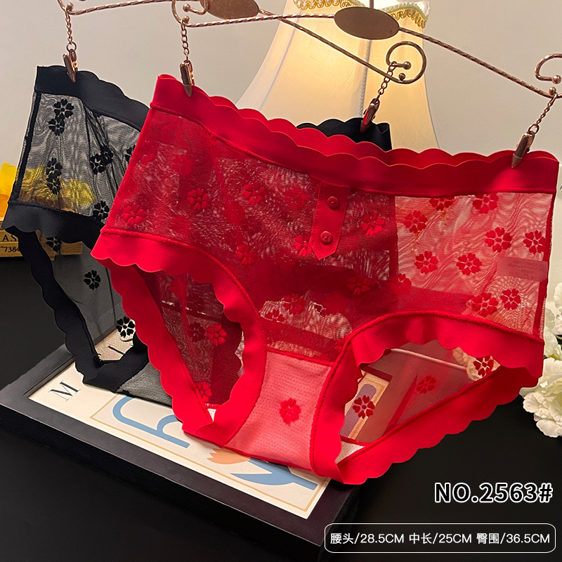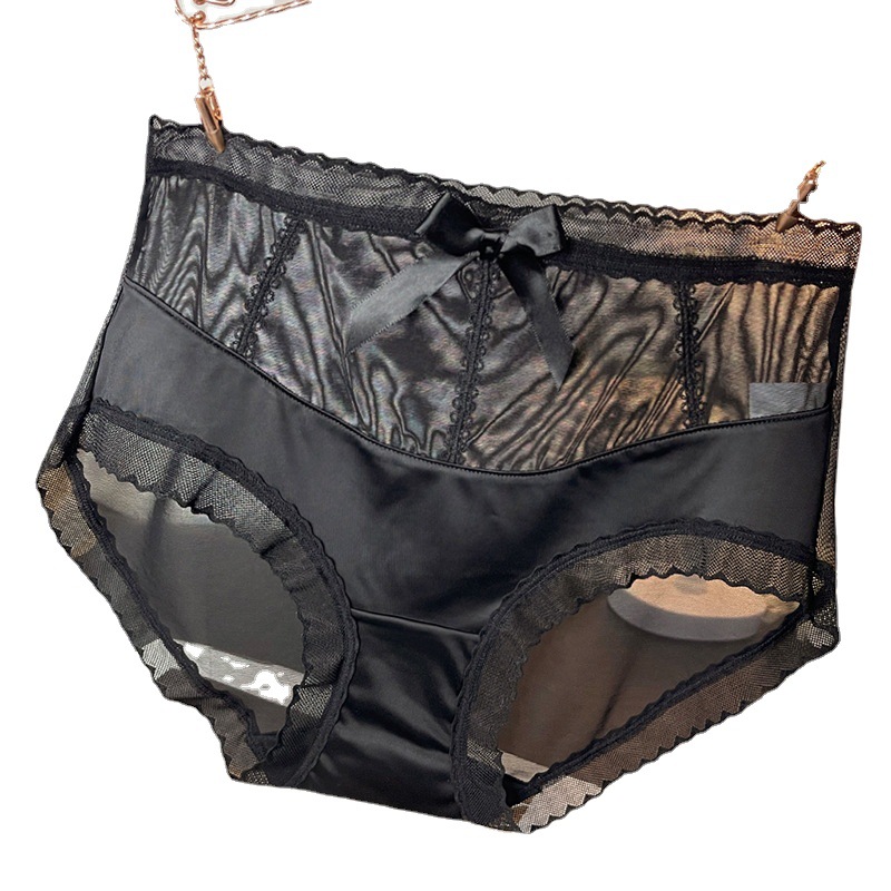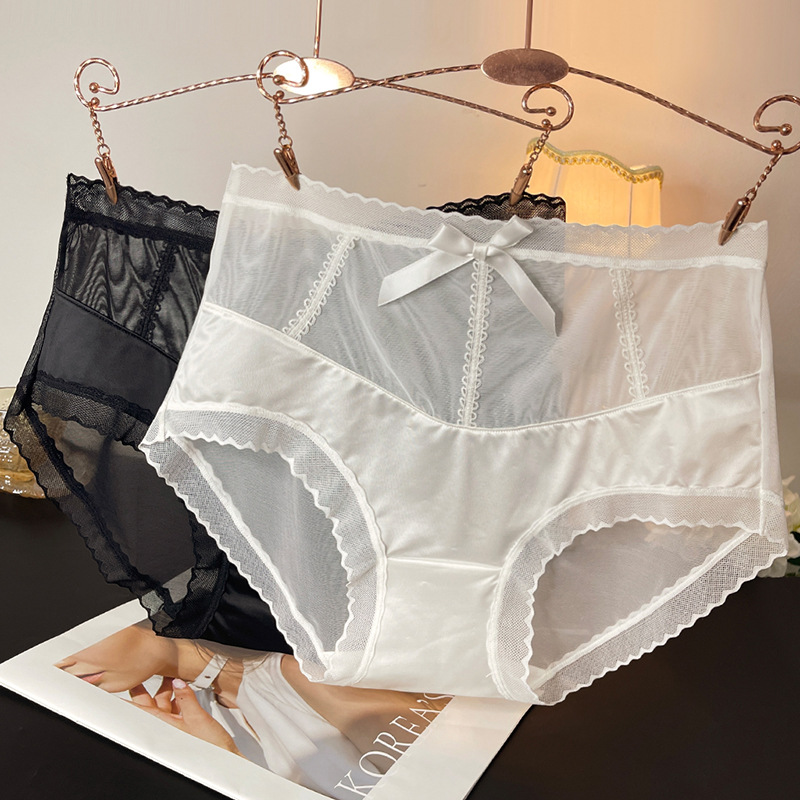 性感蕾丝内裤女生性感无痕中腰纯棉裆透气三角裤头中大码短裤黑白