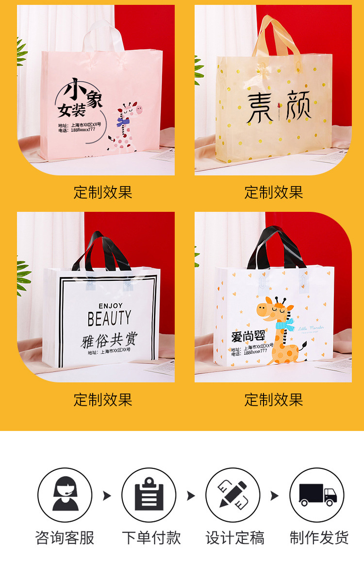 可爱笑脸服装店袋子礼品袋男女童装店手提塑料袋鞋盒包装批发logo