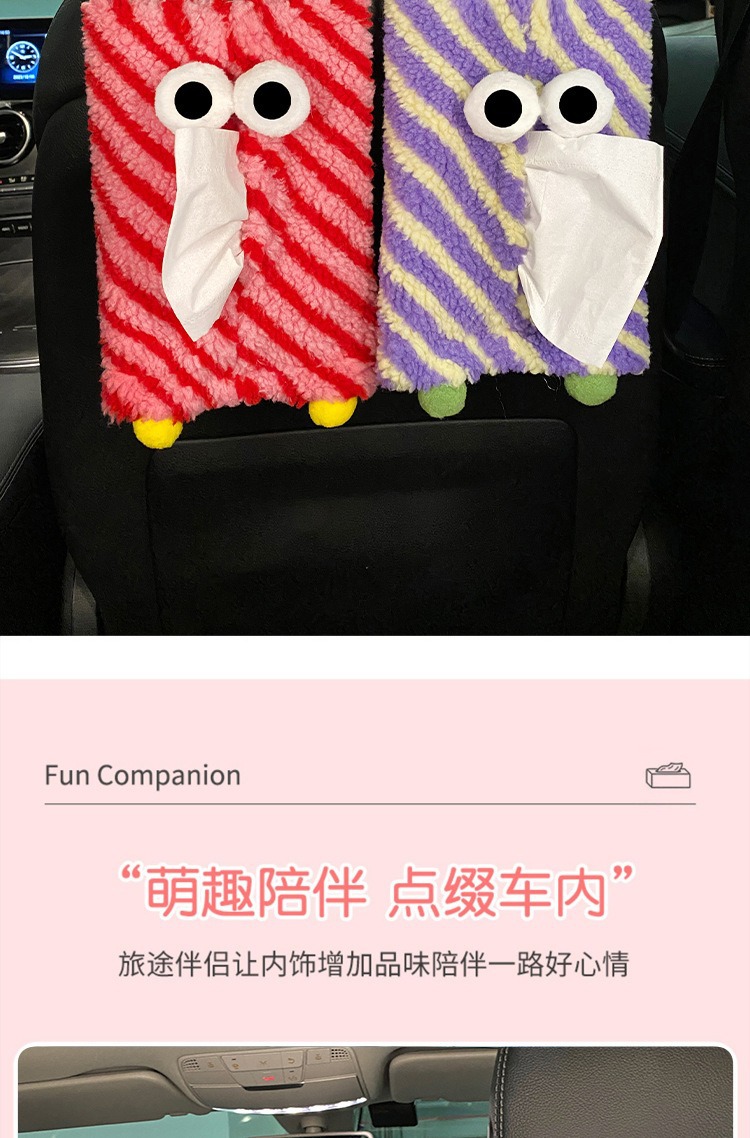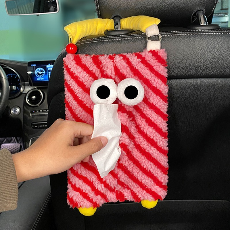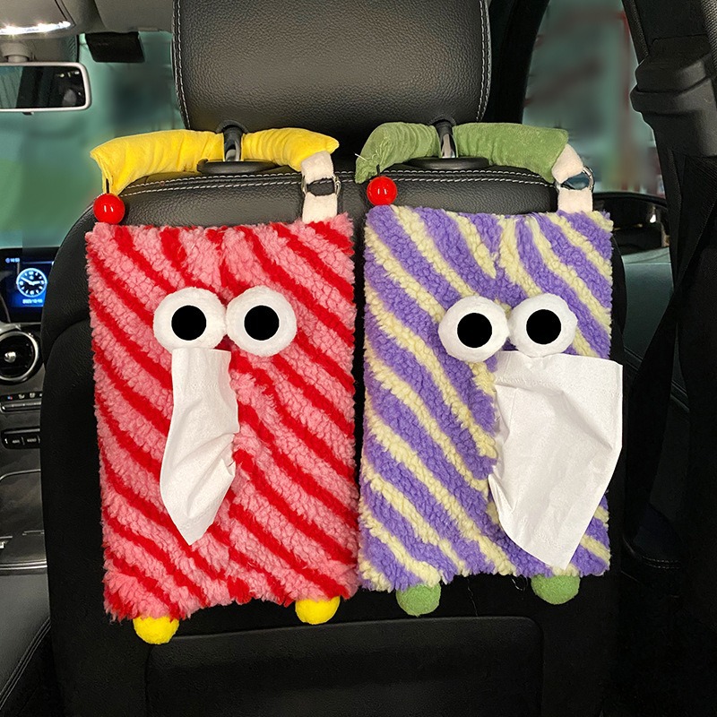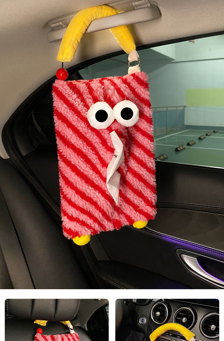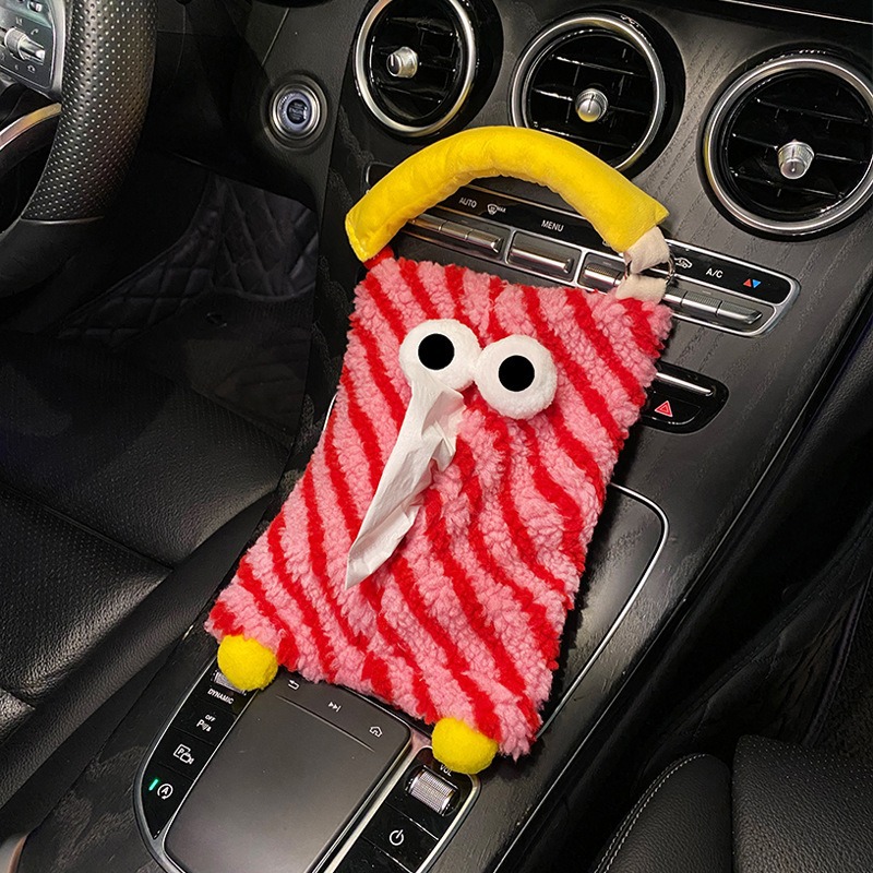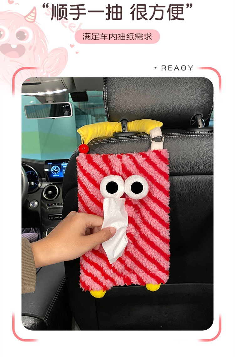 严选新款卡通怪兽挂式车载内抽纸巾收纳袋盒套可爱玩偶装饰用品潮