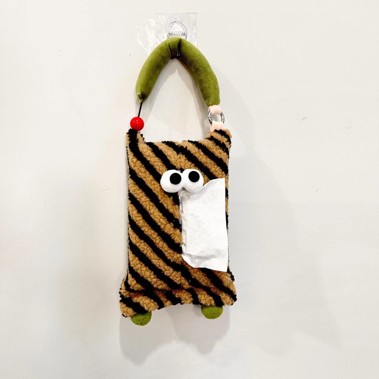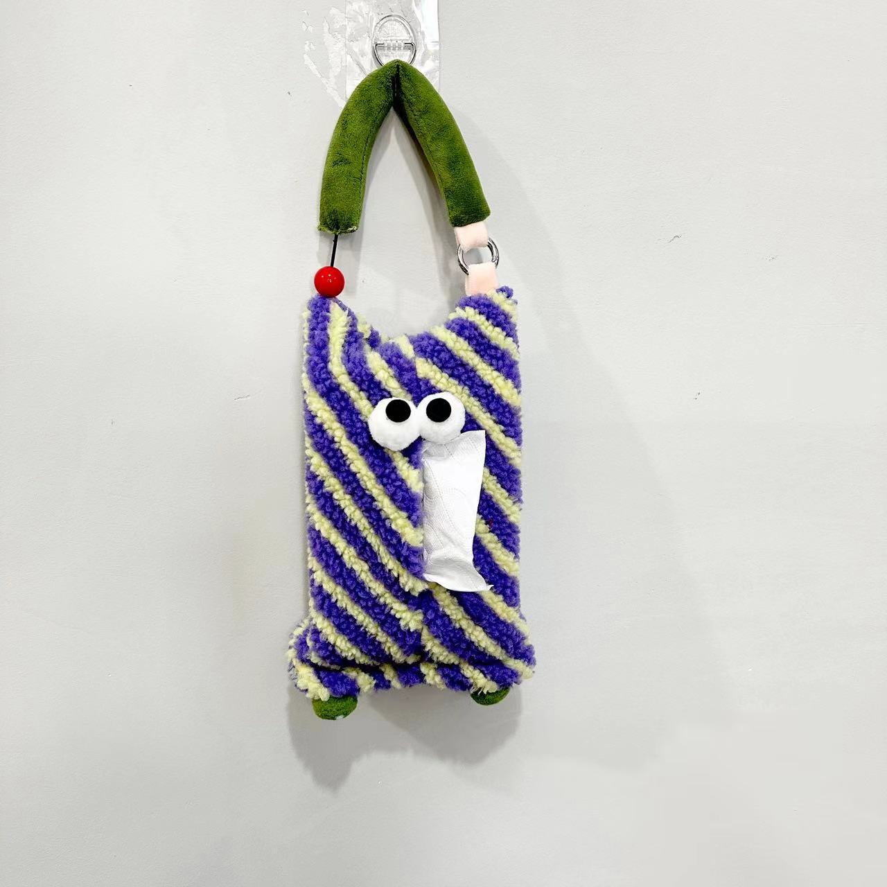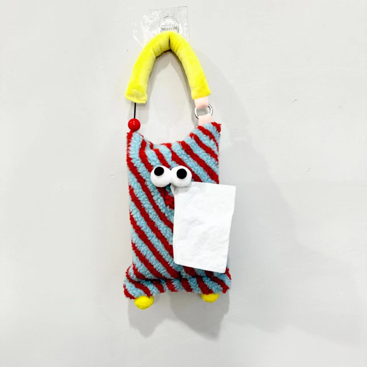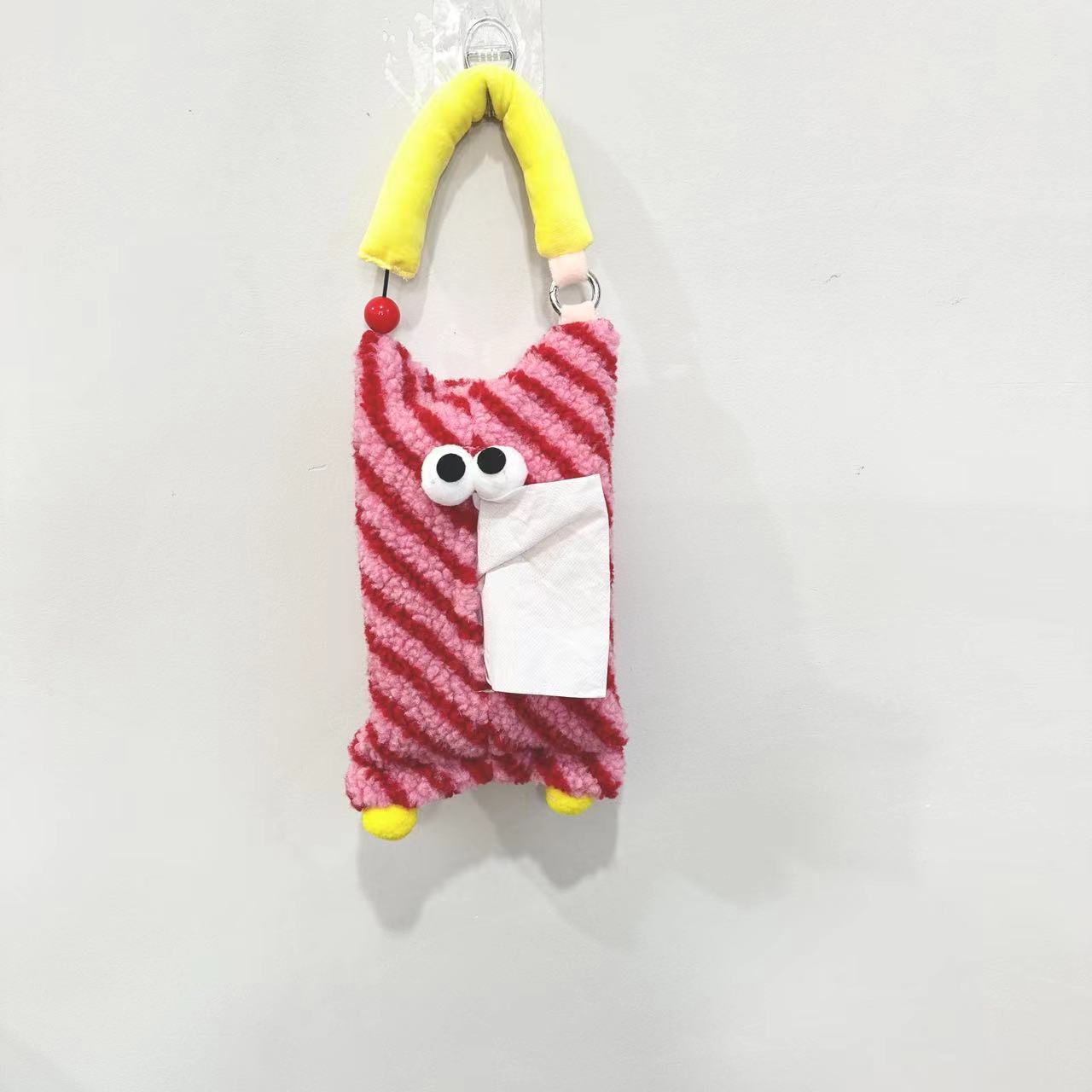 严选新款卡通怪兽挂式车载内抽纸巾收纳袋盒套可爱玩偶装饰用品潮