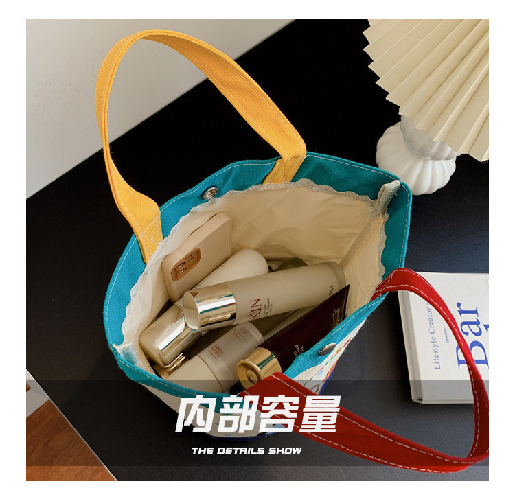 2023新款日系卡通刺绣帆布手提包可爱百搭休闲字母大容量妈咪包潮