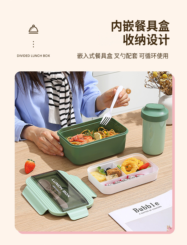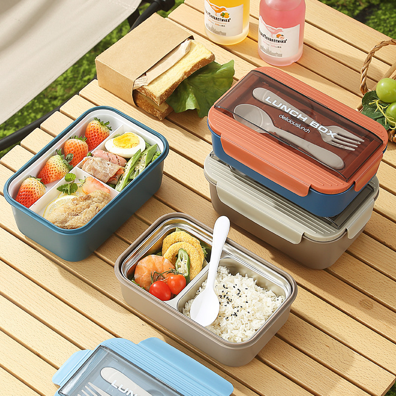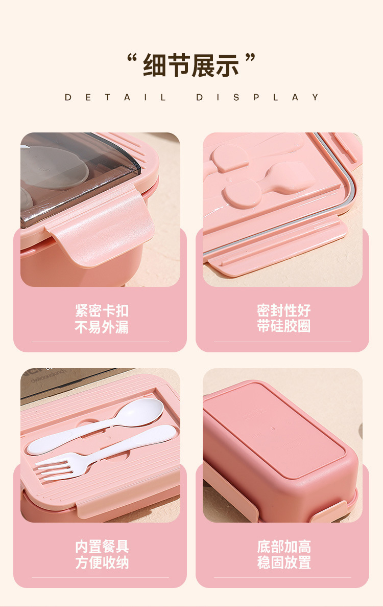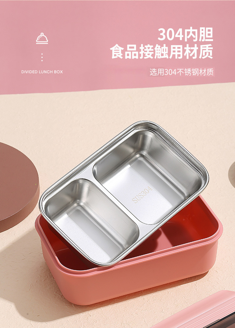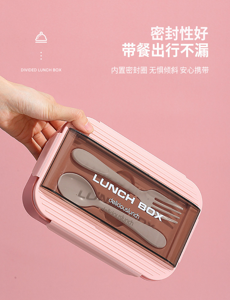 上班族单双层塑料分格饭盒 学生304不锈钢午餐便当盒带叉勺餐具