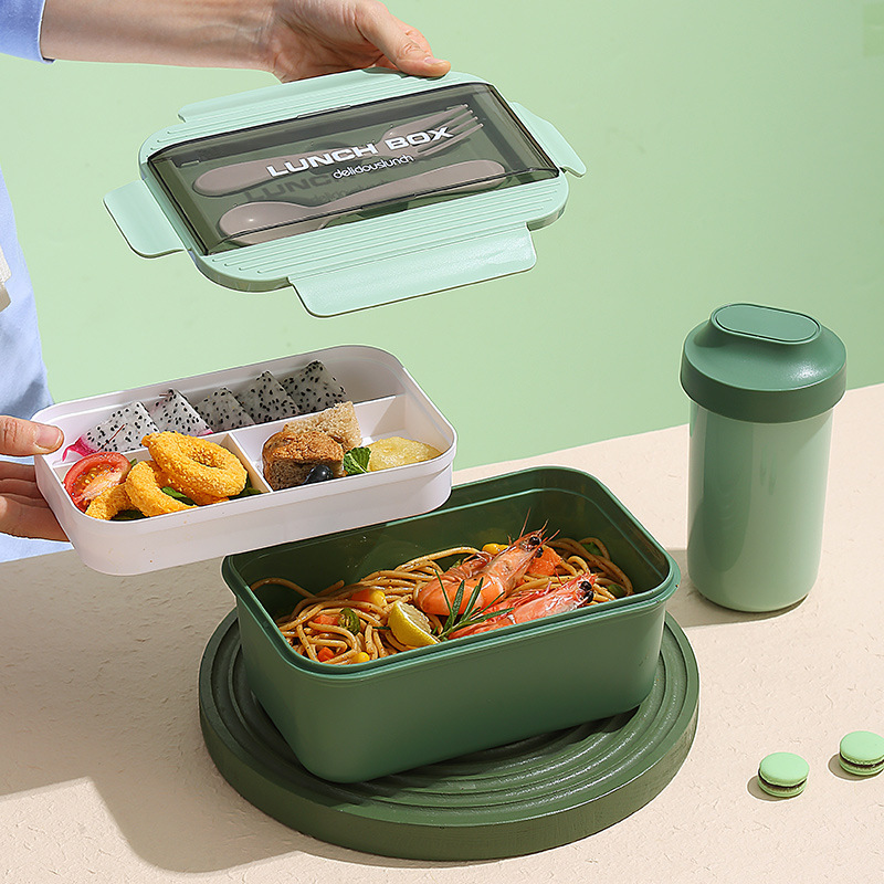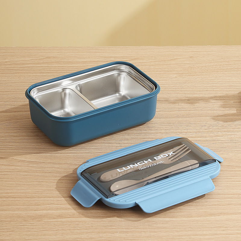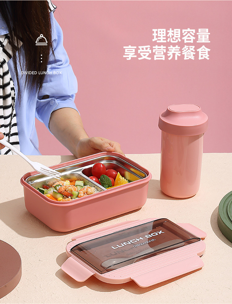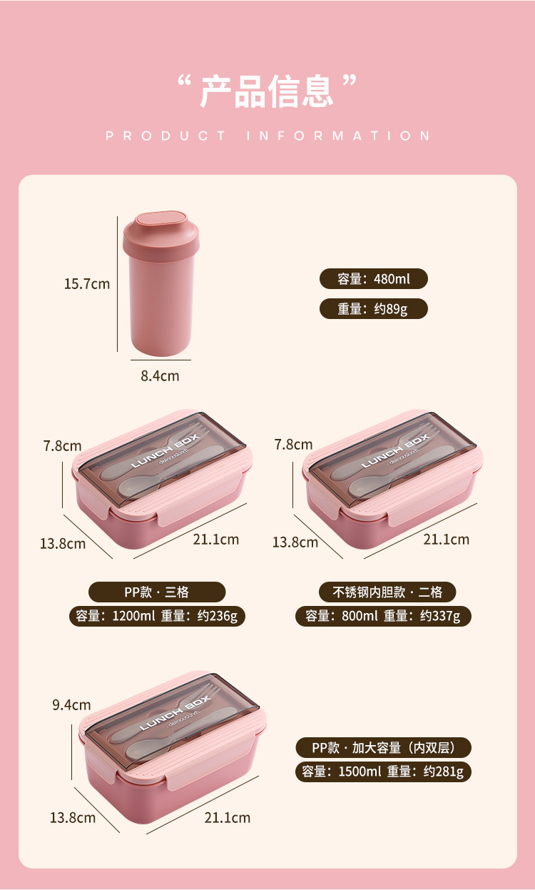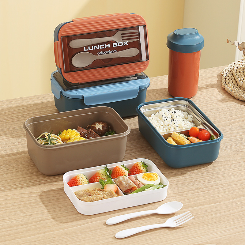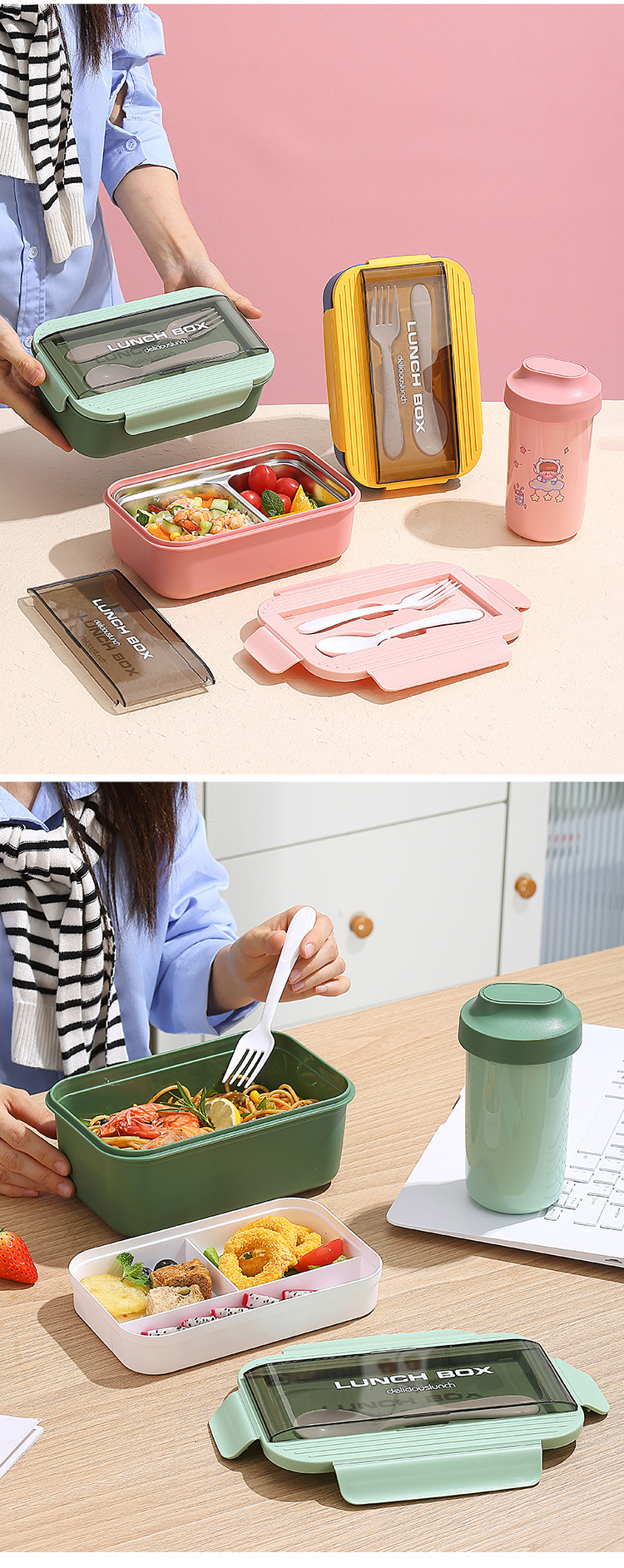 上班族单双层塑料分格饭盒 学生304不锈钢午餐便当盒带叉勺餐具