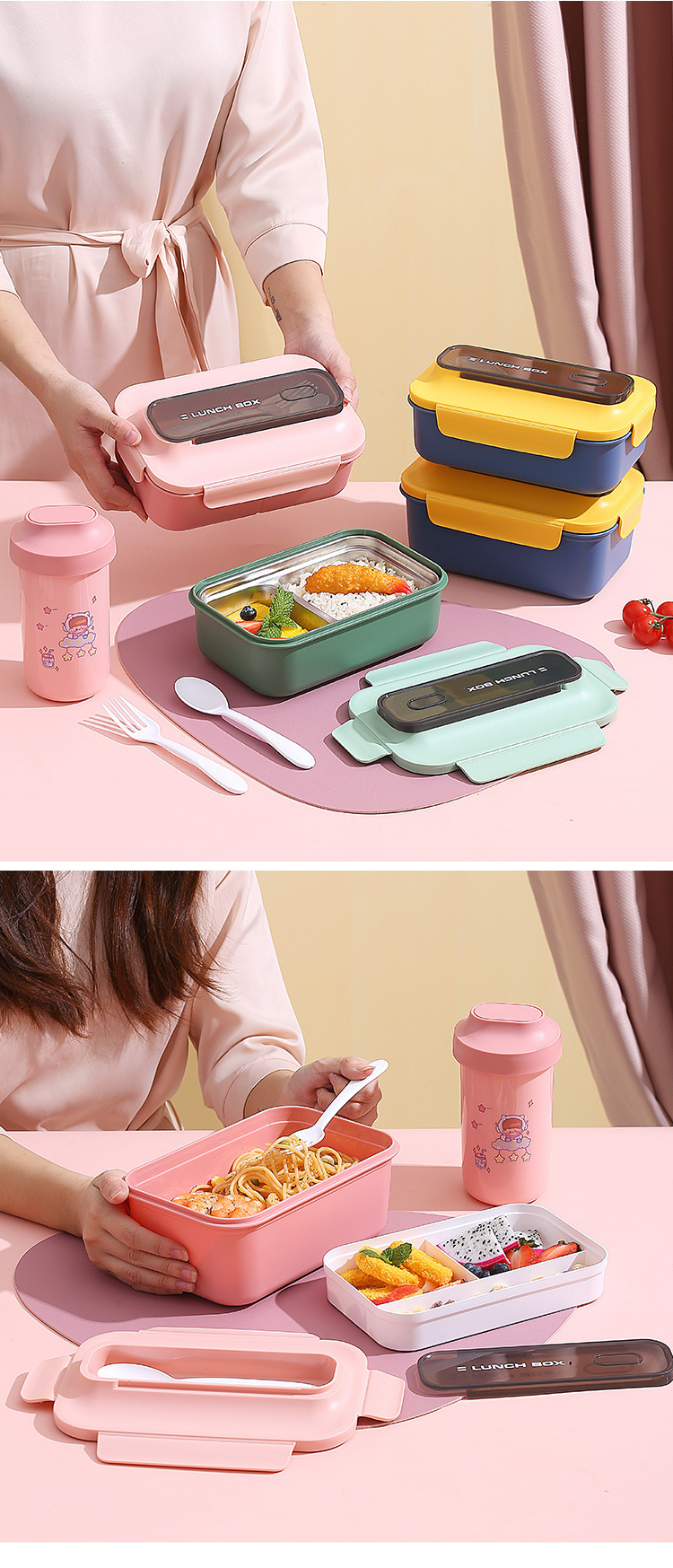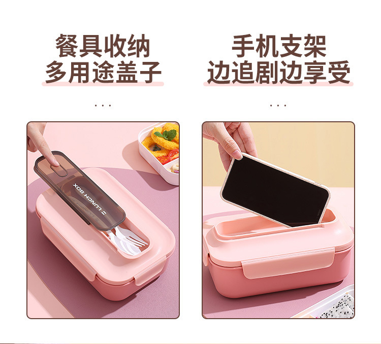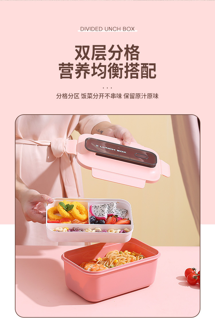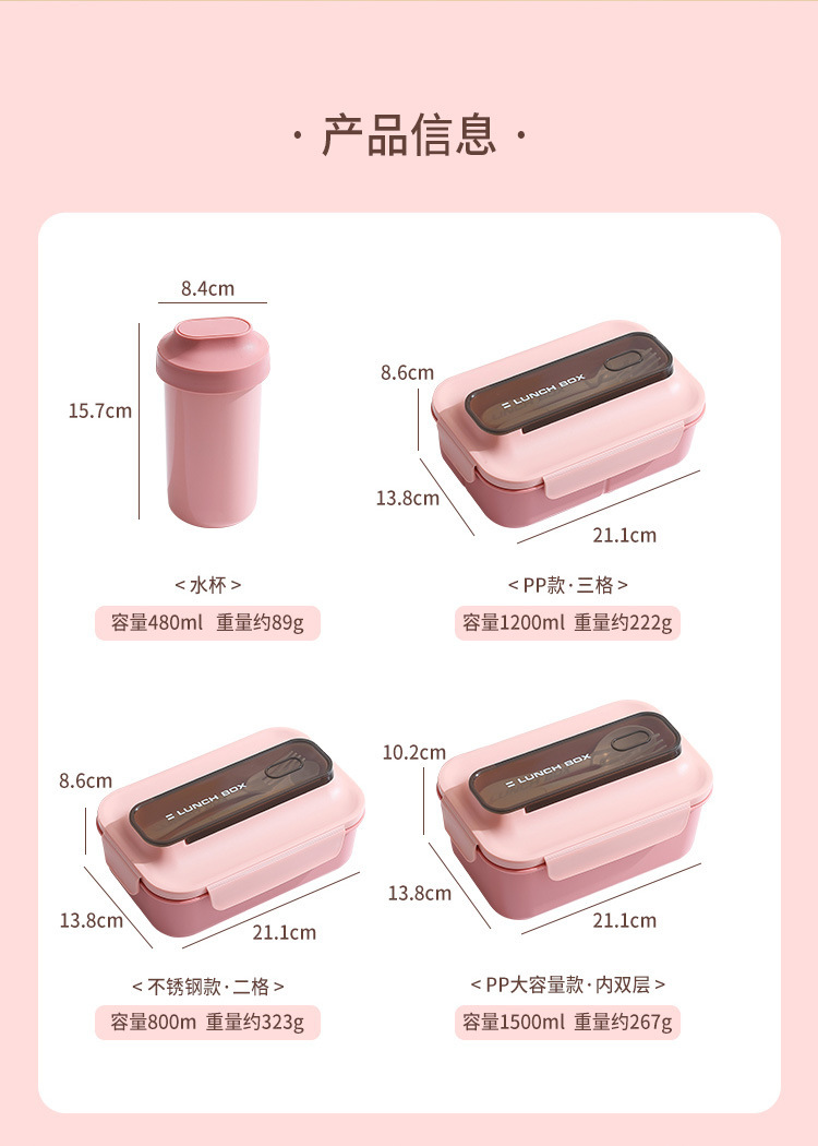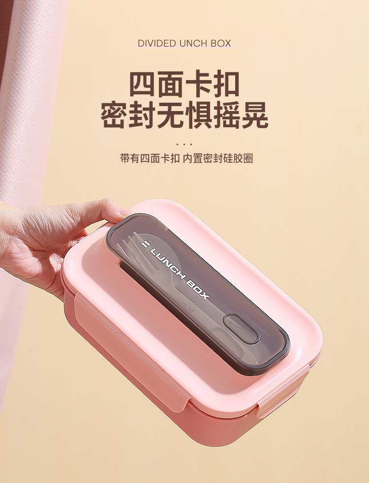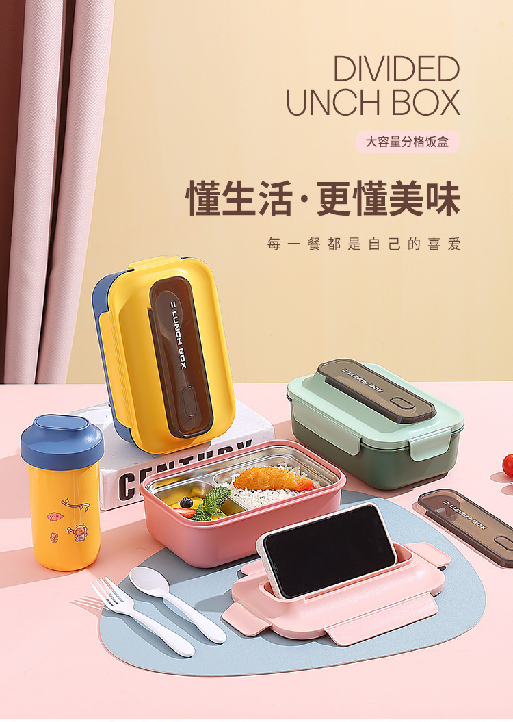 学生简约PP分格饭盒 上班族304不锈钢午餐便当盒便携水杯餐具套装