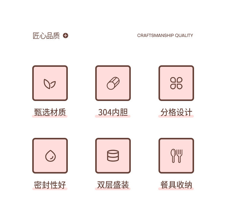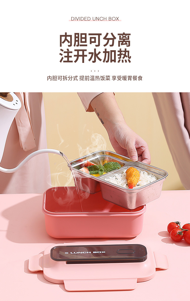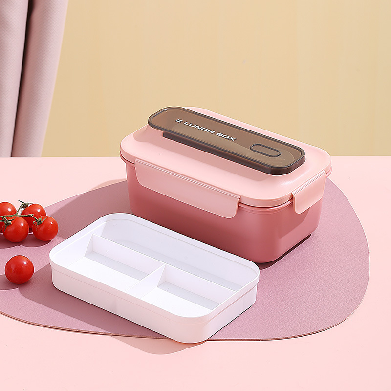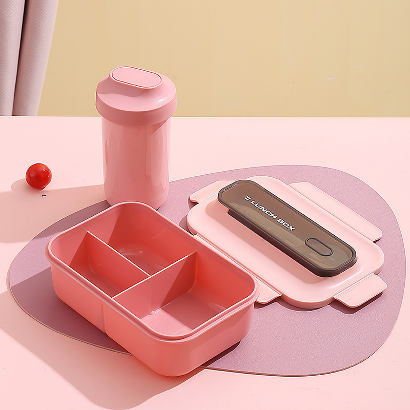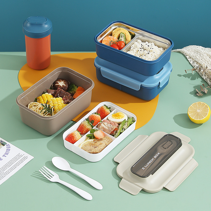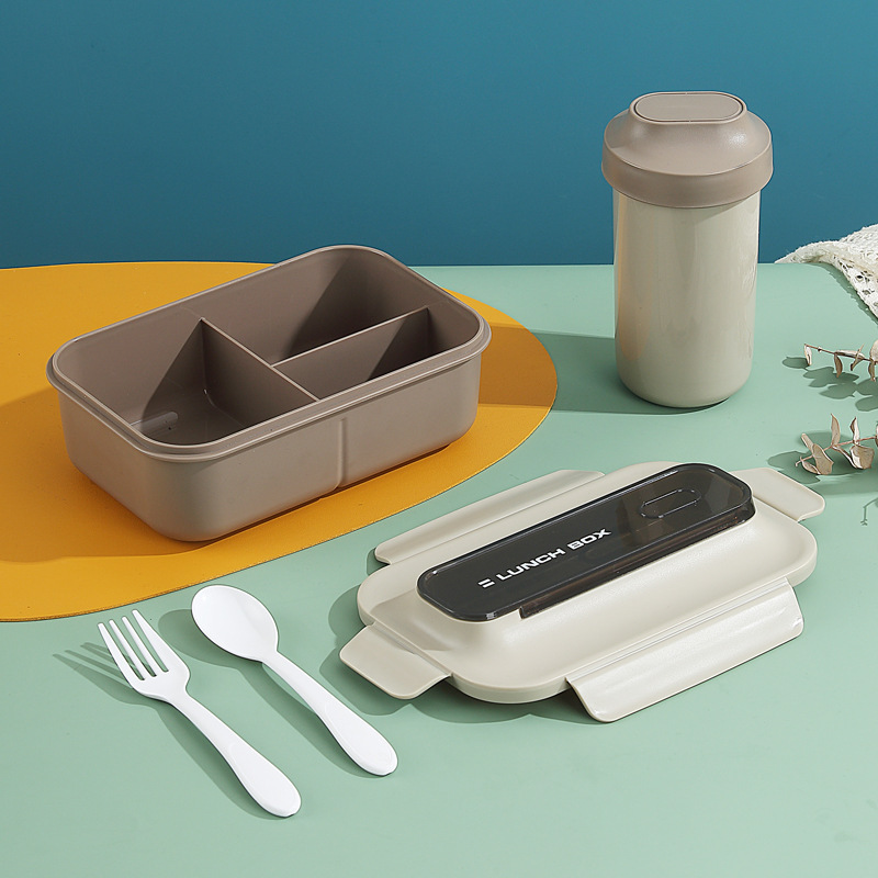 学生简约PP分格饭盒 上班族304不锈钢午餐便当盒便携水杯餐具套装