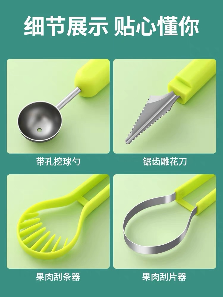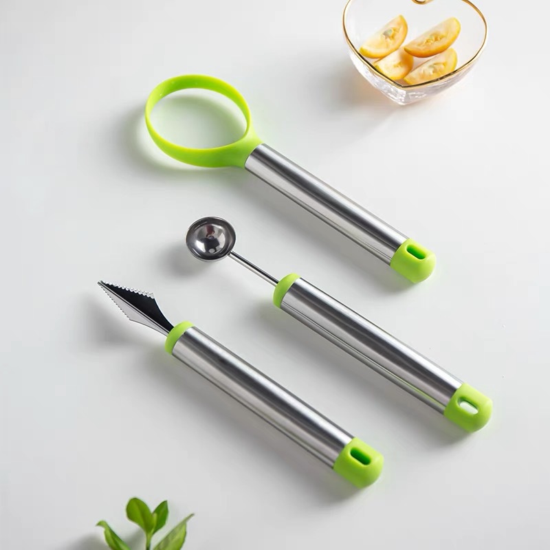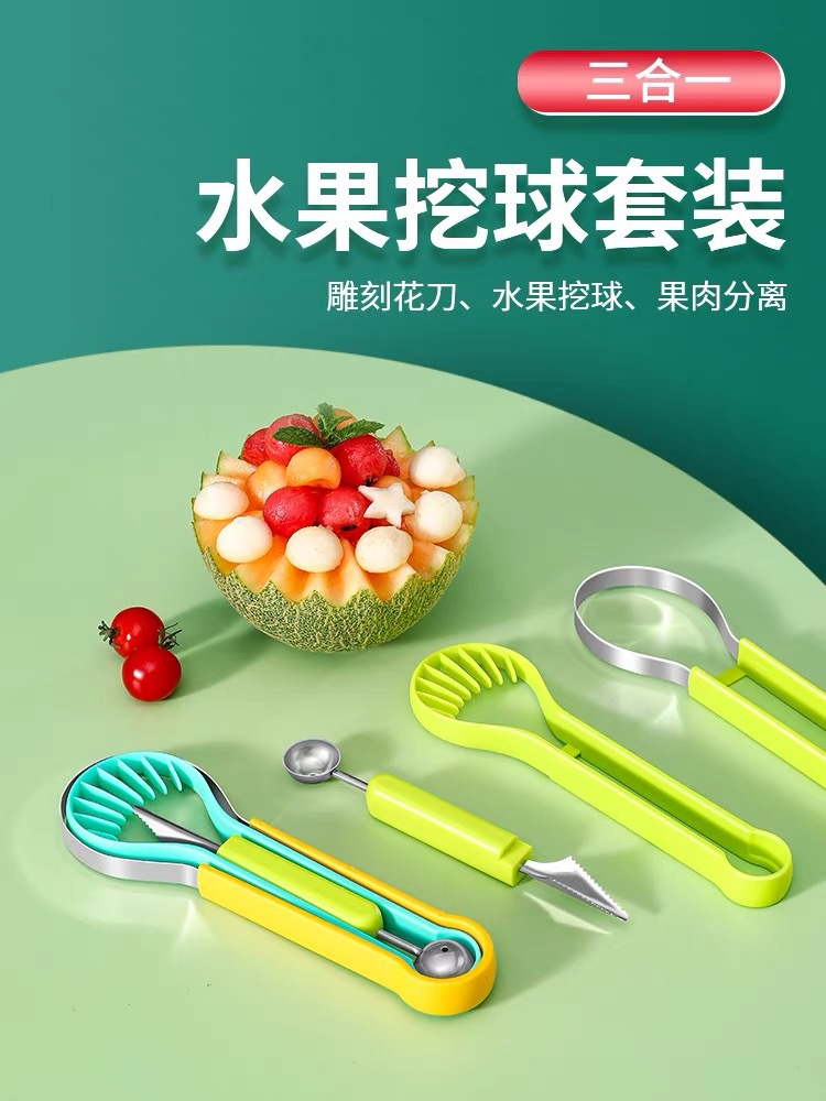 三合一水果挖球器不绣钢挖果器水果挖雕刻球器分离器厨房小工具