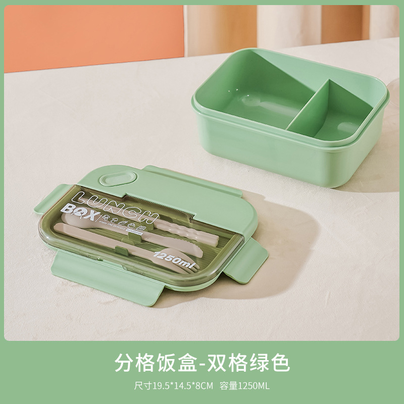 创意翻盖分格学生午餐饭盒 带叉勺筷餐具套装 上班族便当盒可微波