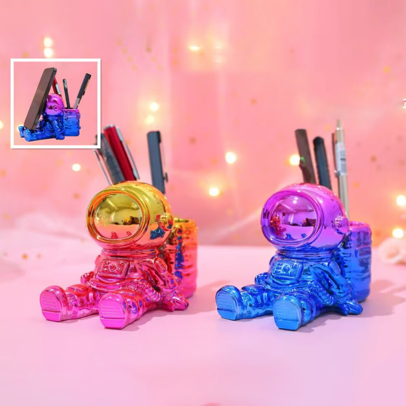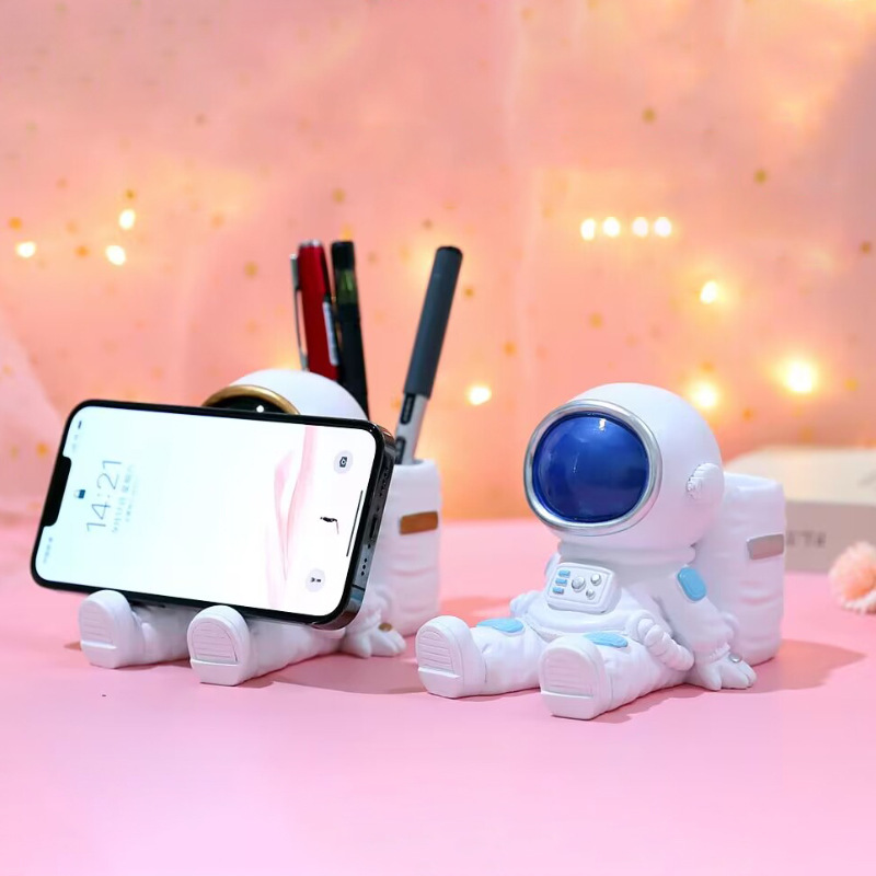 宇航员多功能笔筒桌面手机支架创意收纳桶简约风家居化妆刷收纳