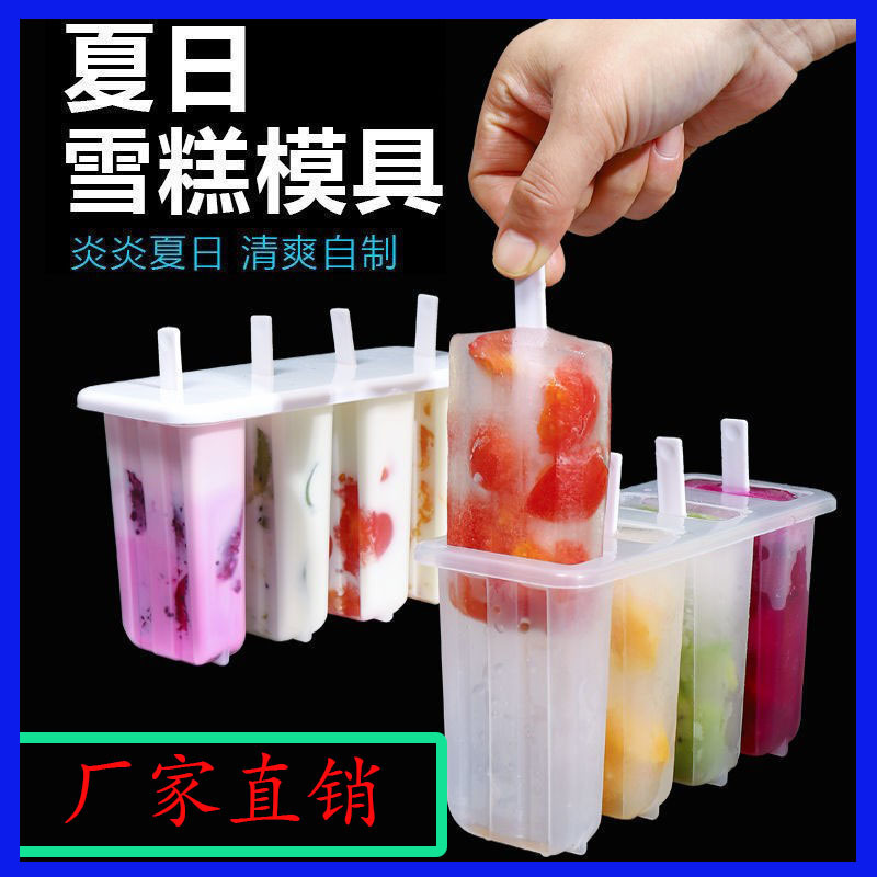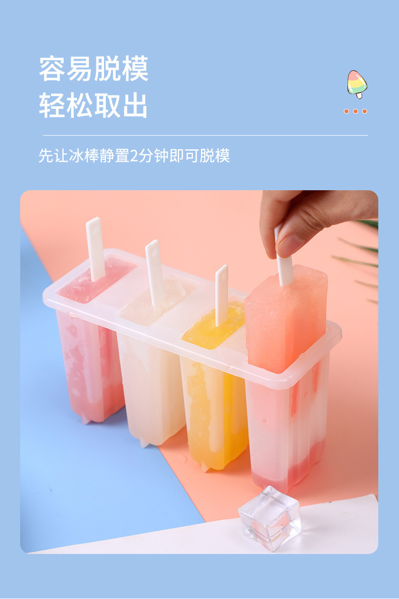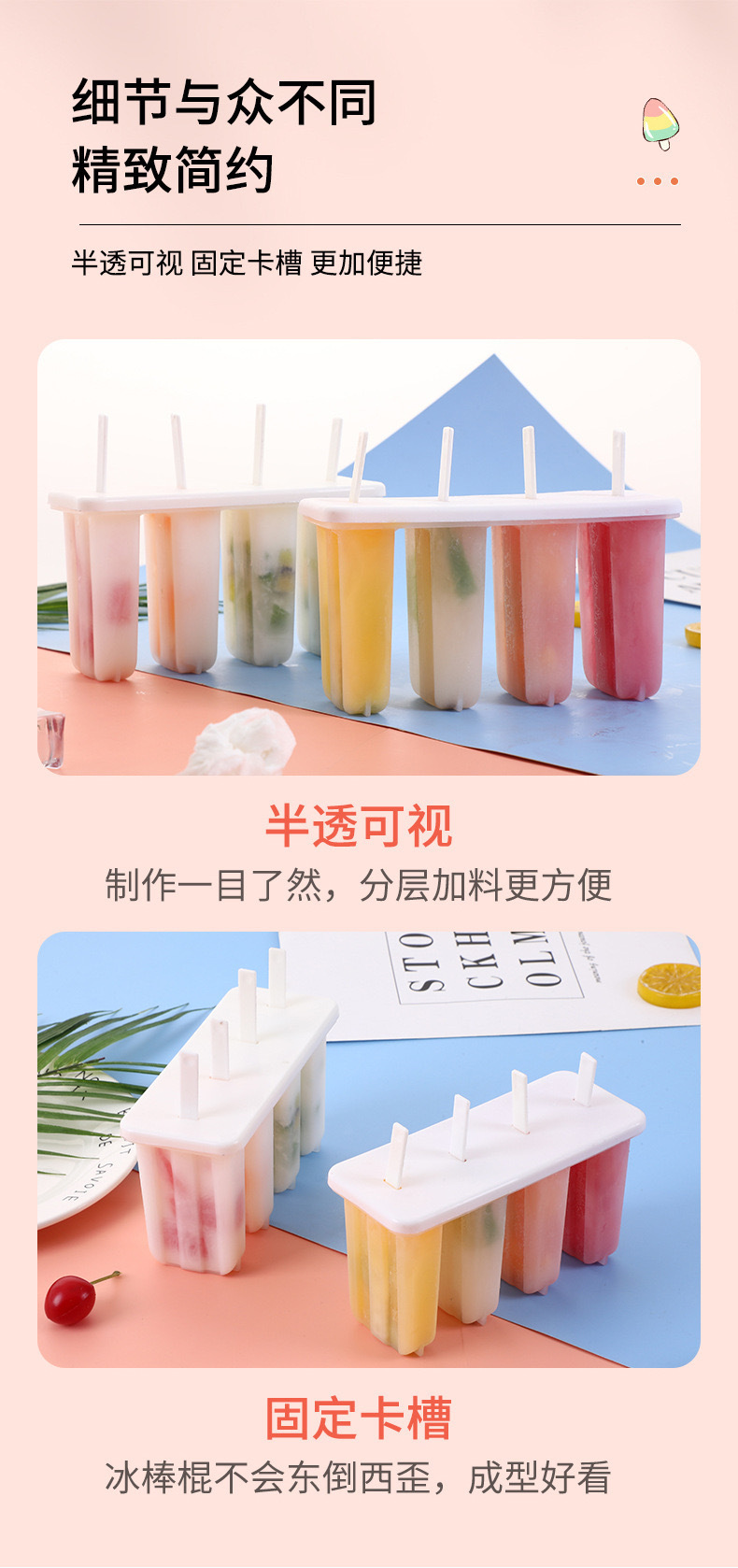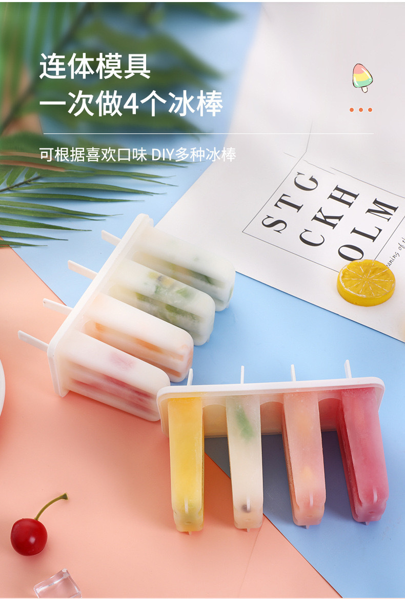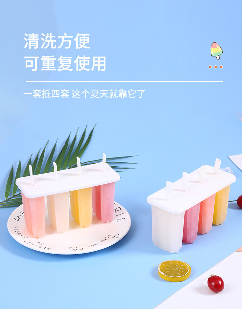 老冰棍模具家用自制绿豆冰棒模具儿童冻雪糕条工具冰淇淋4连冰格