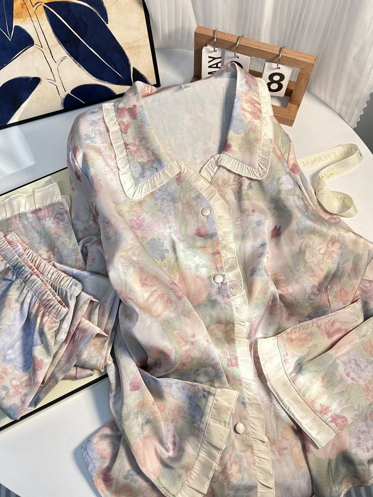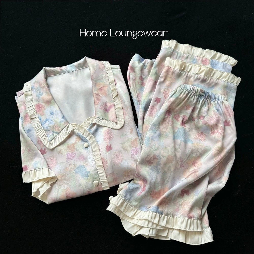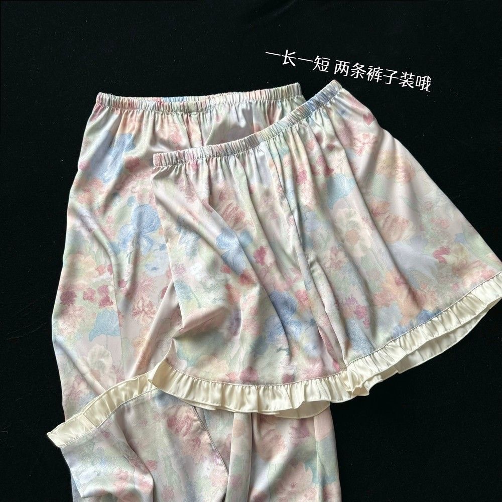 三件套睡衣女款夏天冰丝短袖自带胸垫春秋夏季2024新款大码家居服
