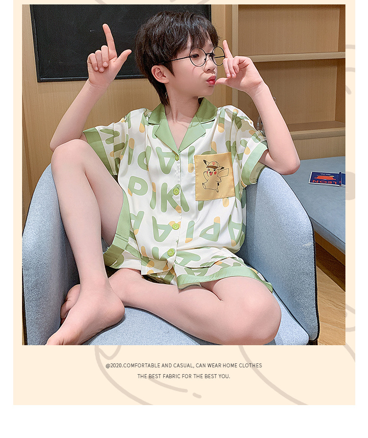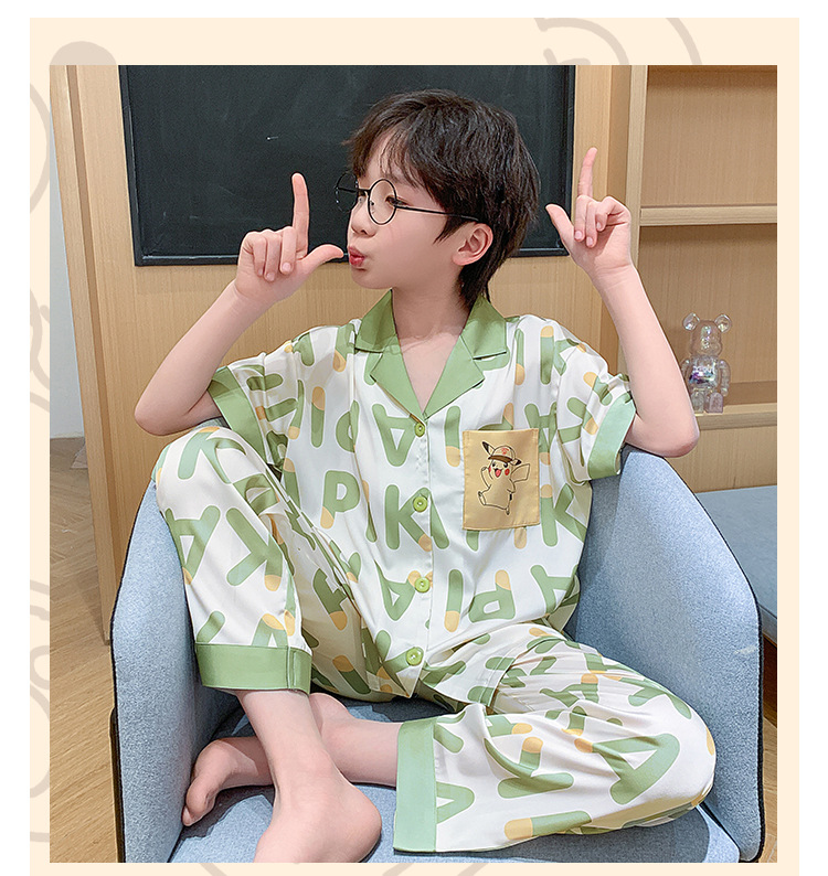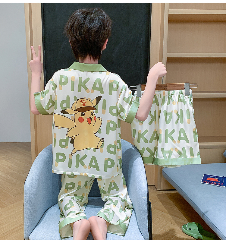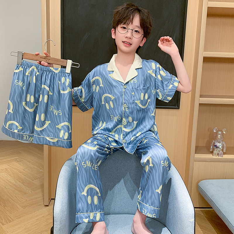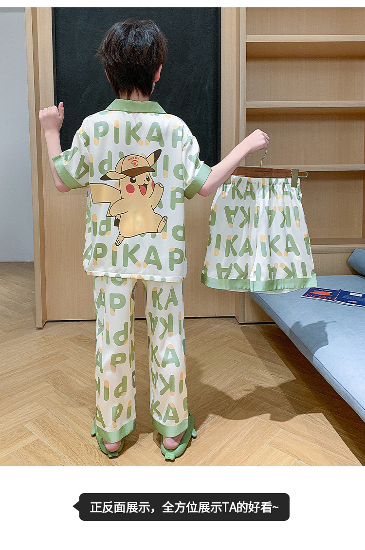 2024新款儿童睡衣男童夏季冰丝短袖三件套装中大童男孩家居服夏款