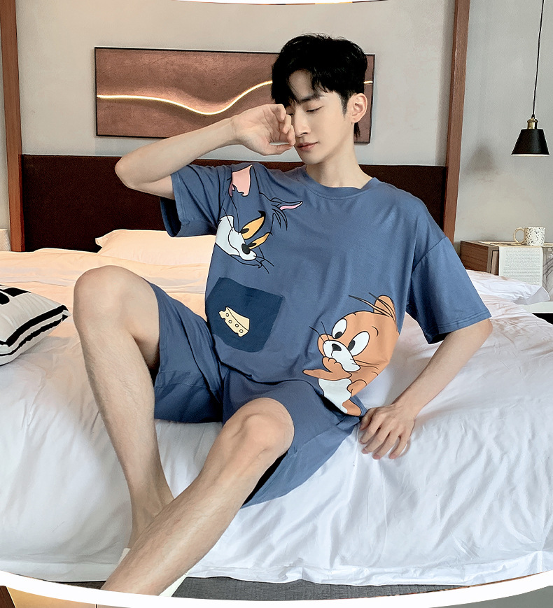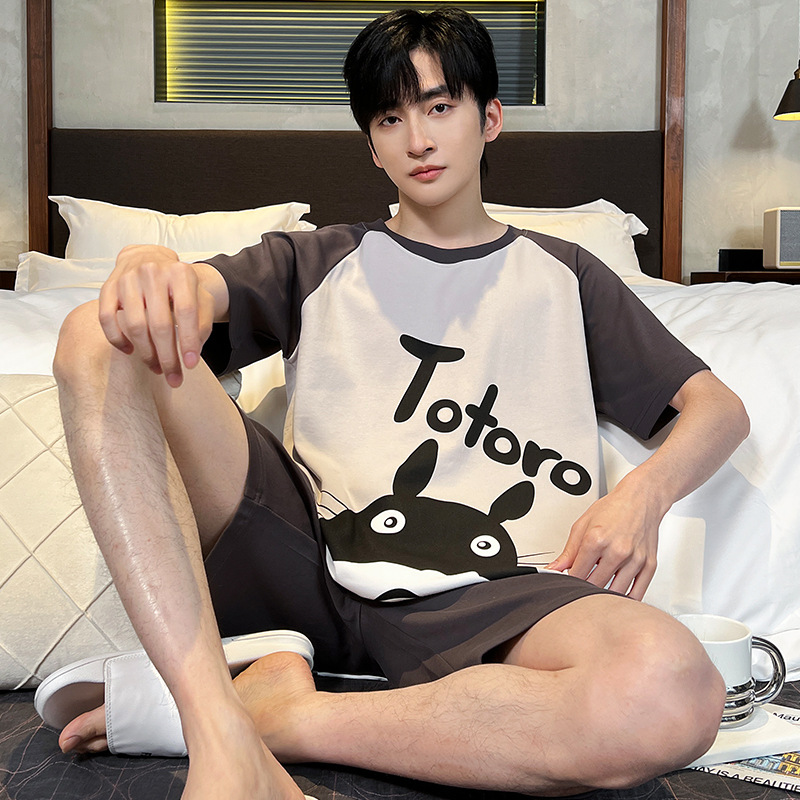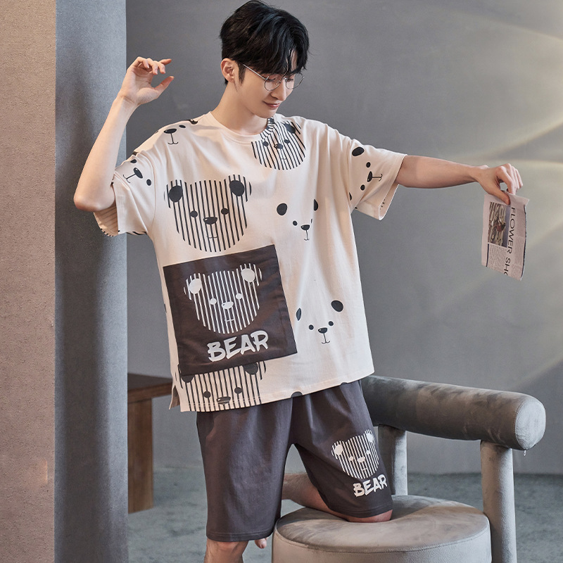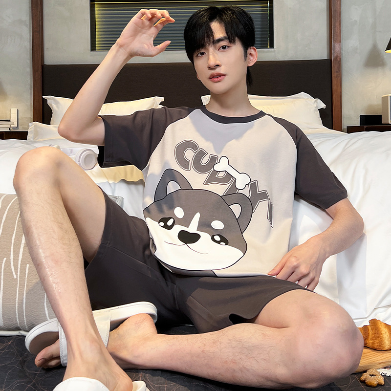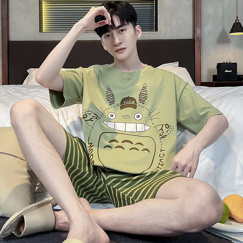 夏季棉质男士睡衣短袖2024年新款卡通男生夏天可外穿家居服套装