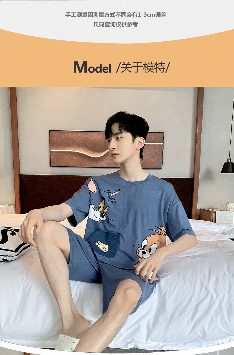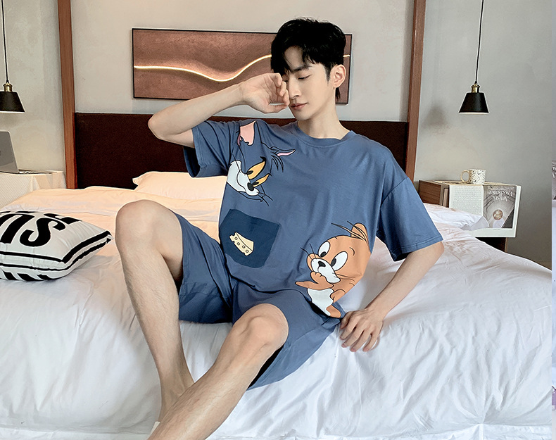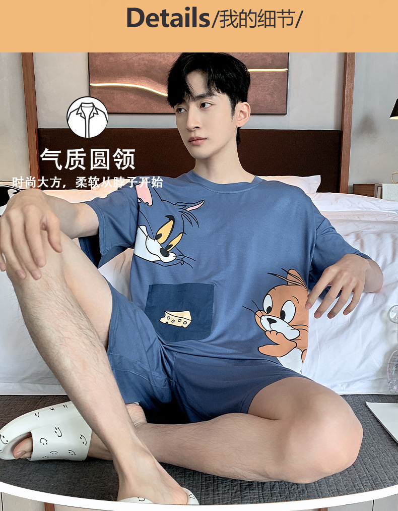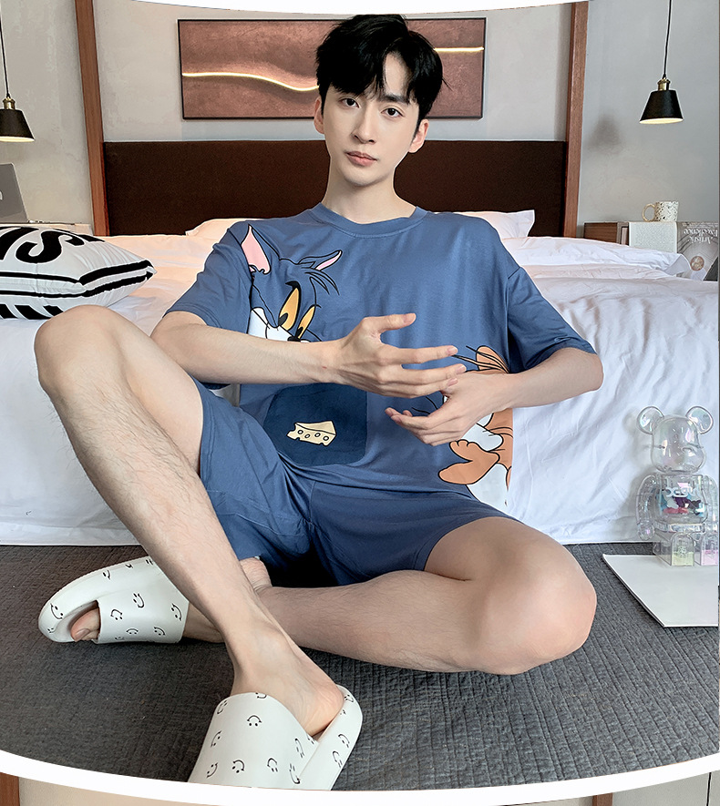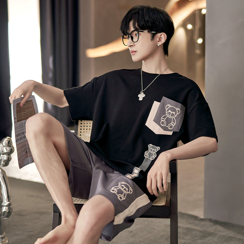 夏季棉质男士睡衣短袖2024年新款卡通男生夏天可外穿家居服套装