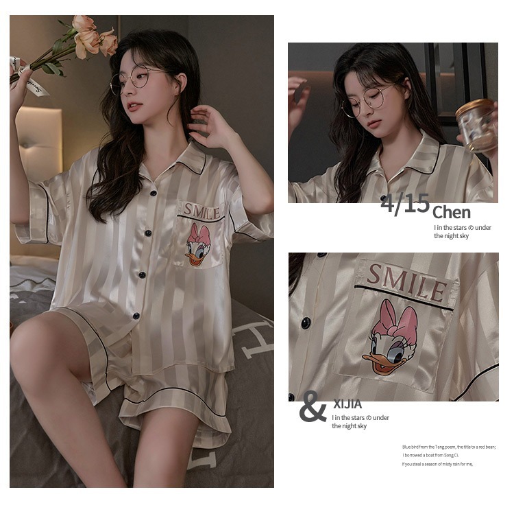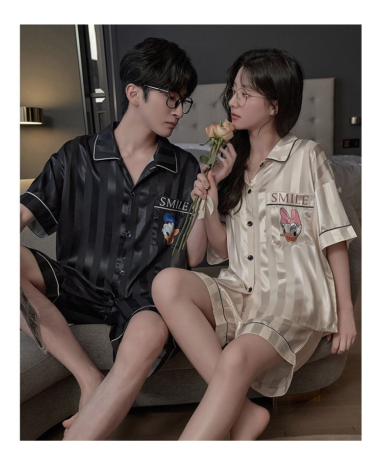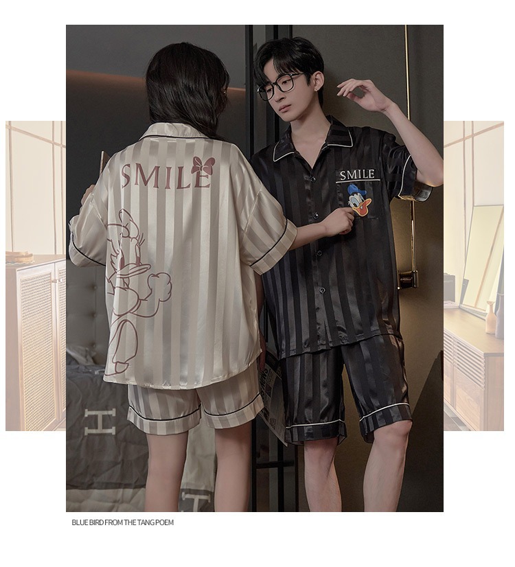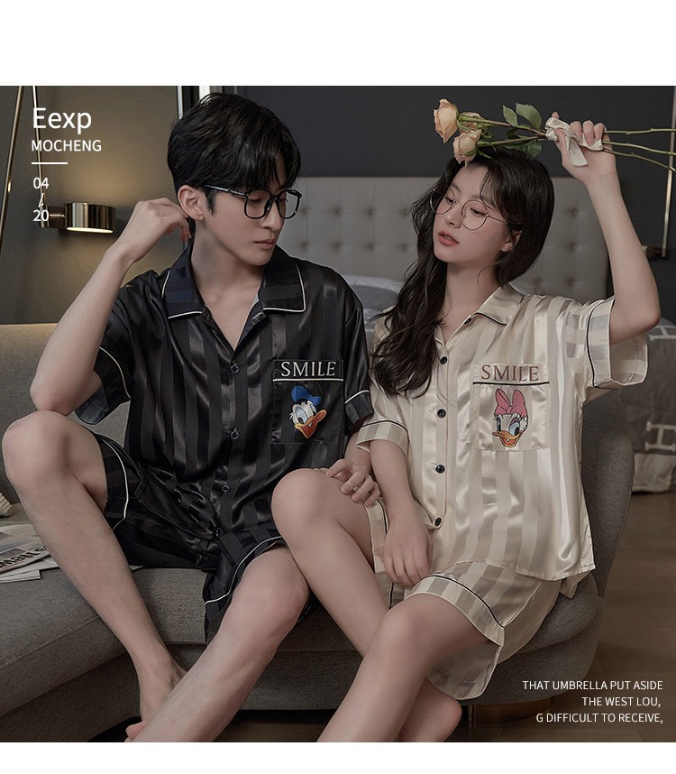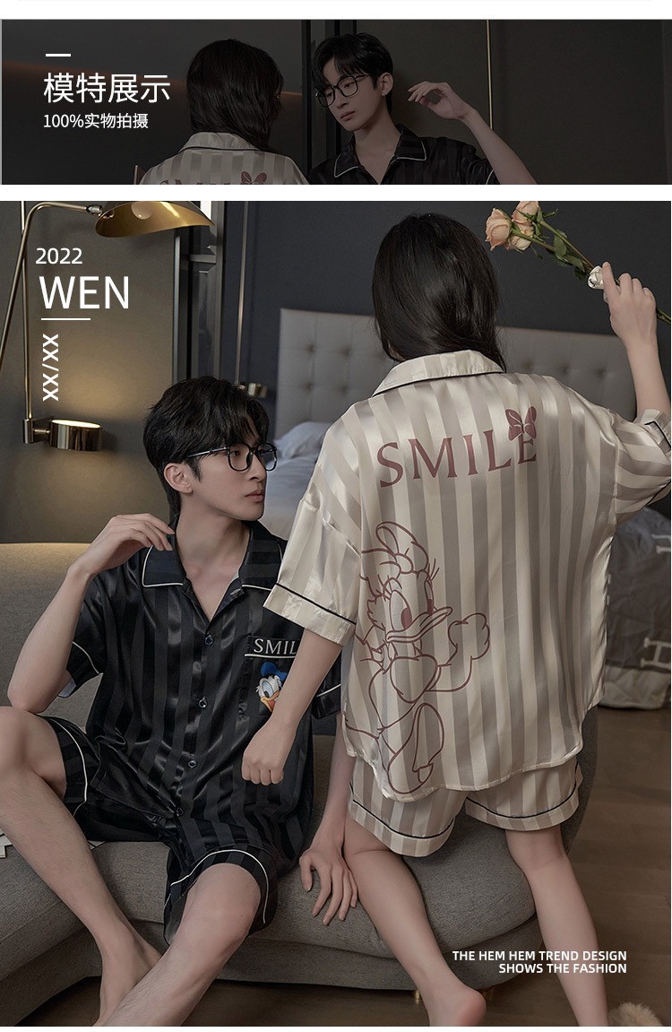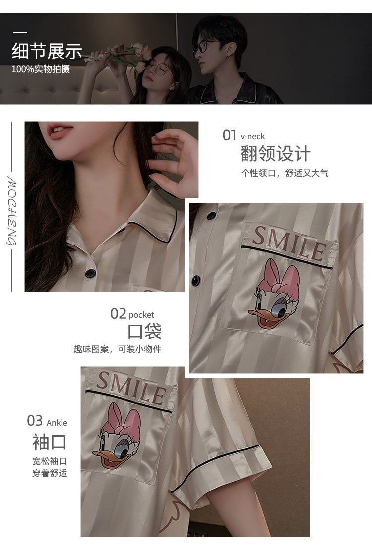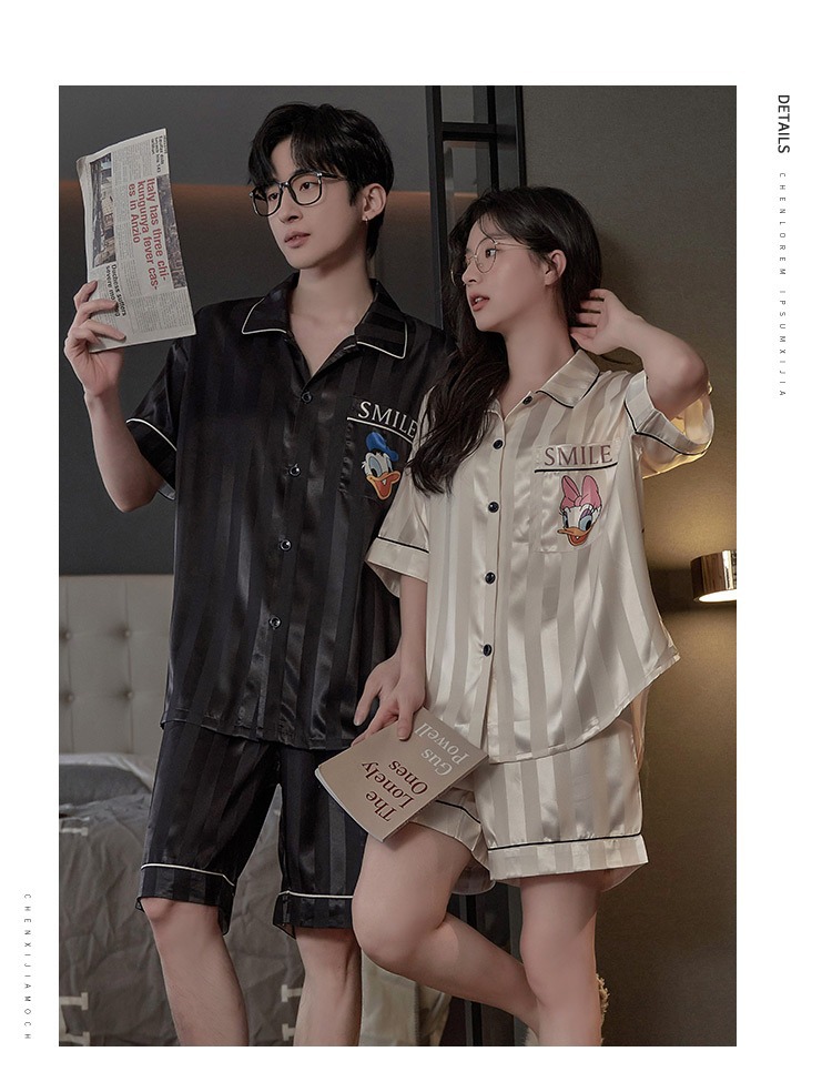 情侣睡衣女夏季一男一女短袖冰丝薄款2024新款夏天卡通家居服套装