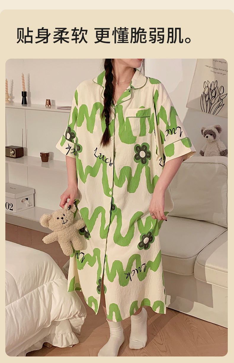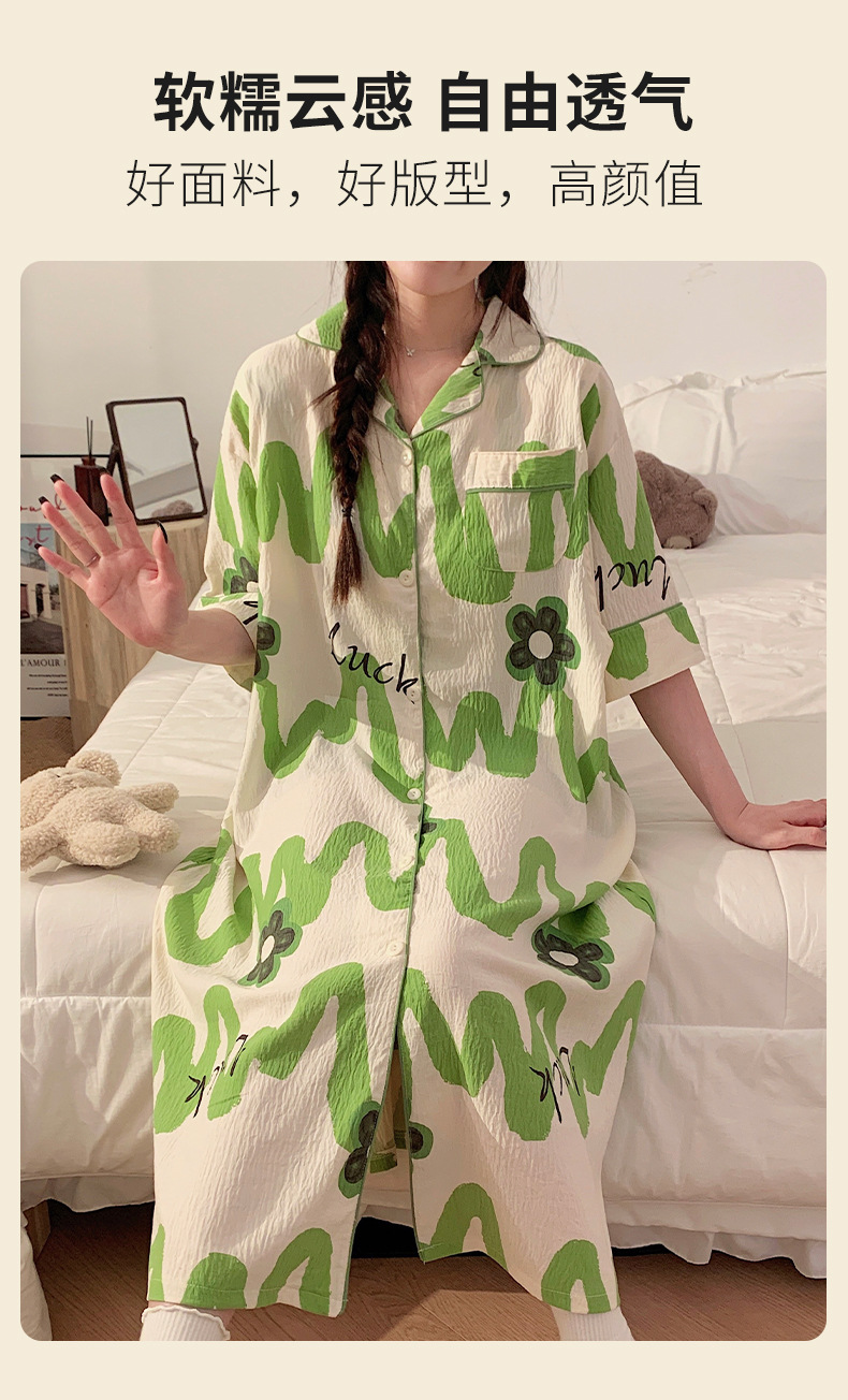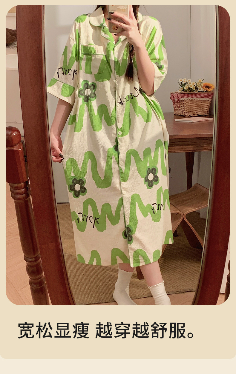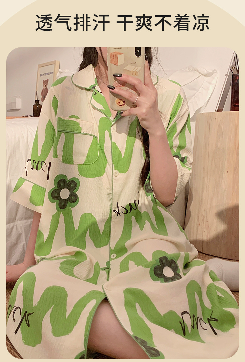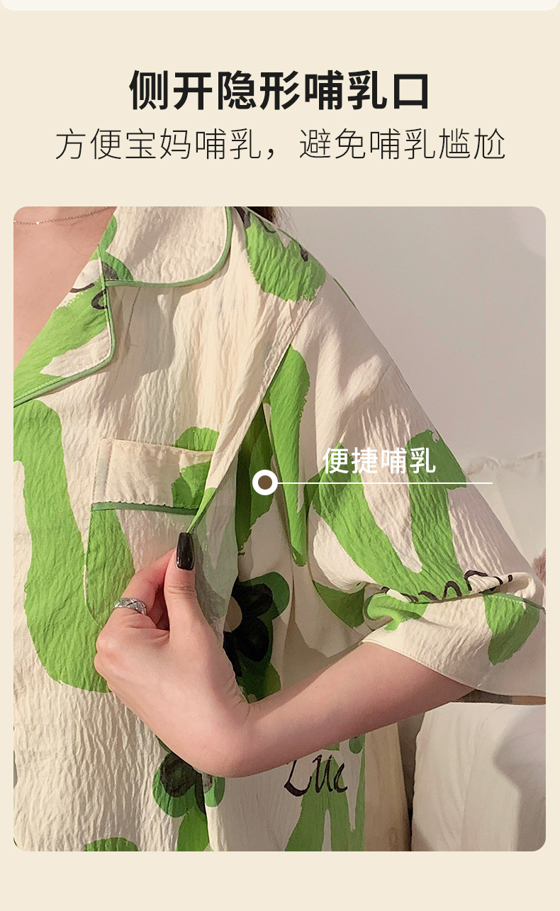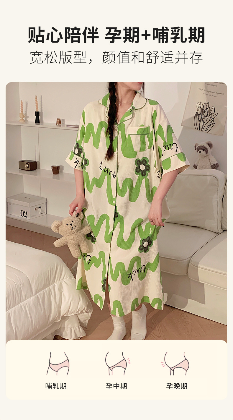 带胸垫月子服睡裙女士夏季天短袖宽松待产孕妇睡衣哺乳喂奶家居服