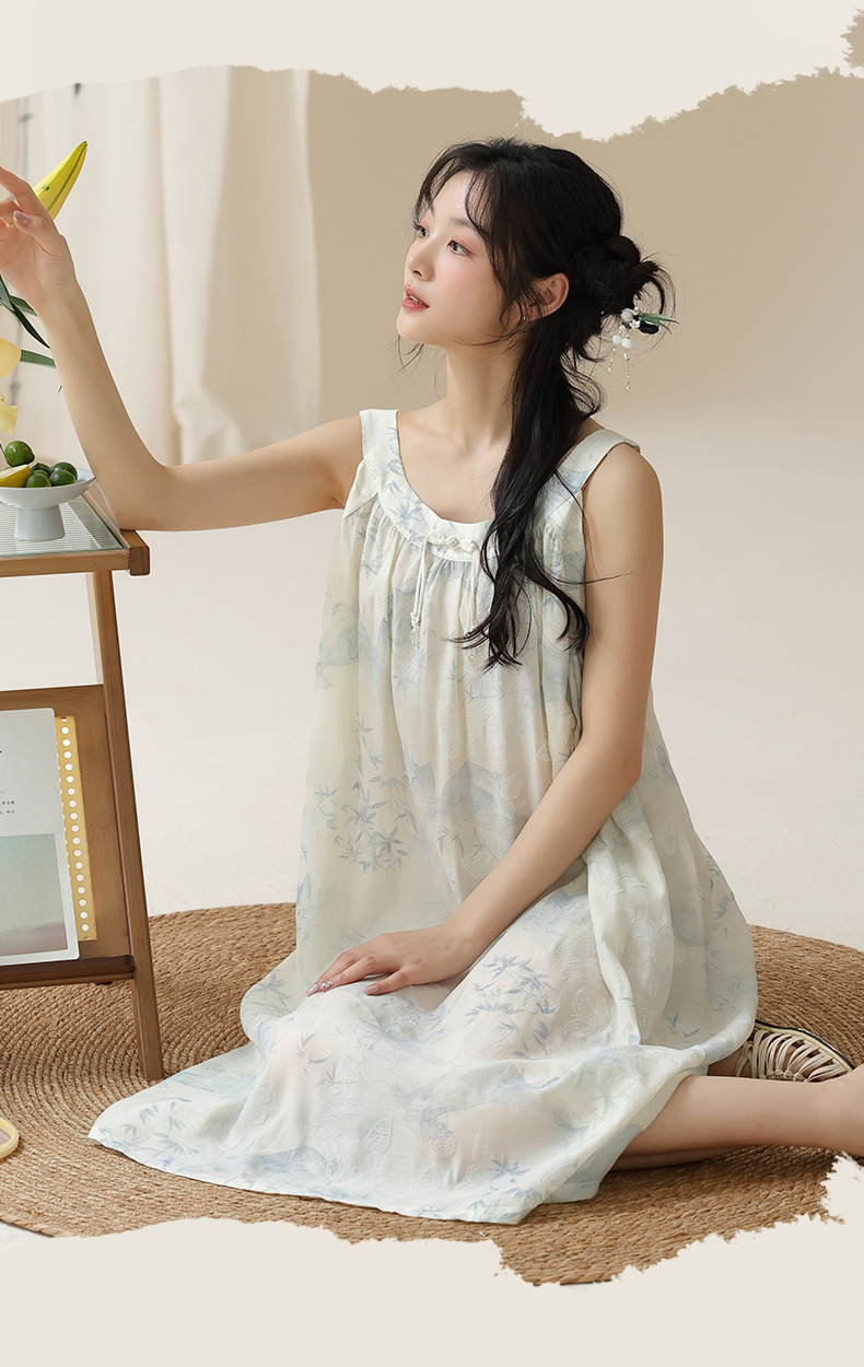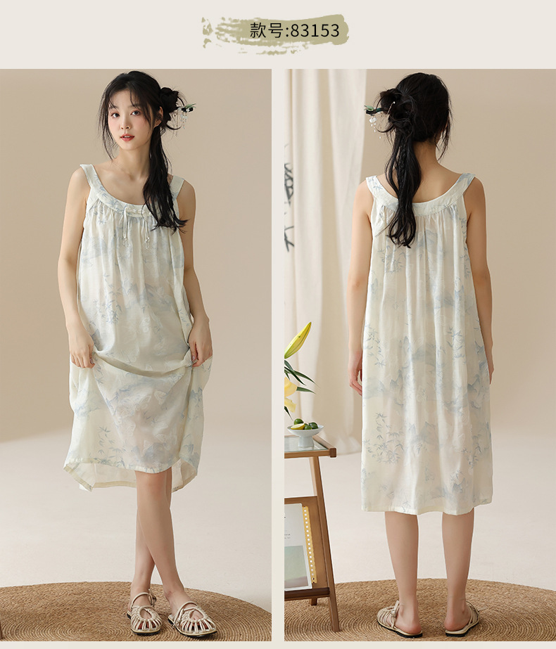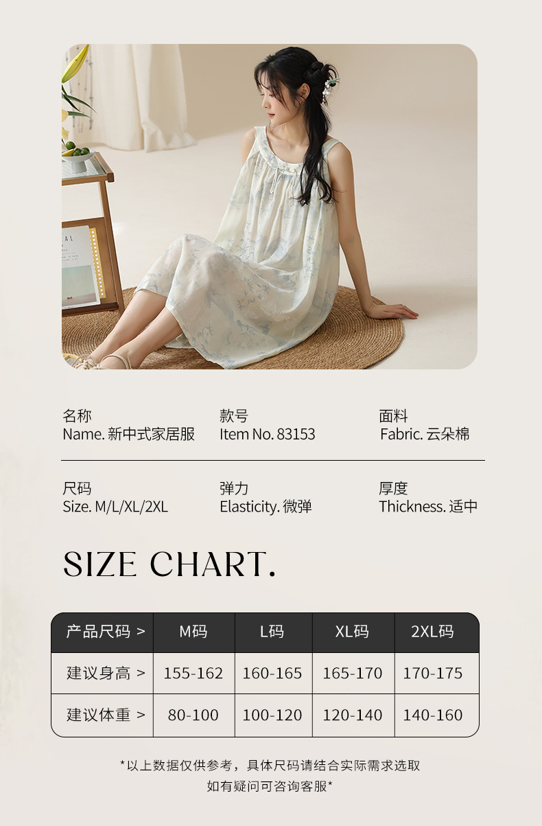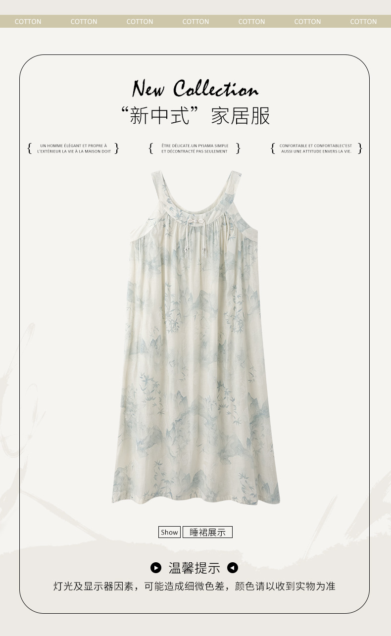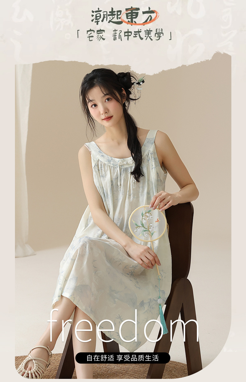 睡衣女款夏季云朵棉绸吊带无袖新中式国风性感背心睡裙夏天家居服