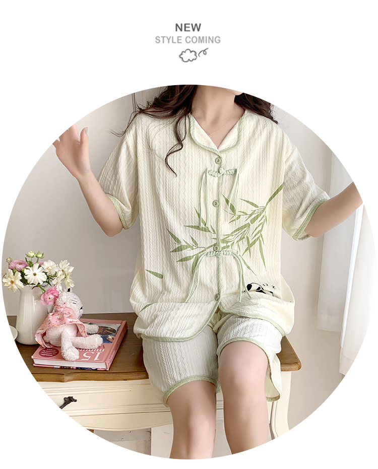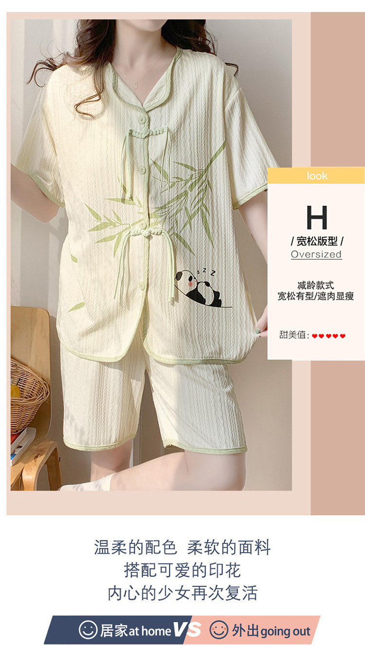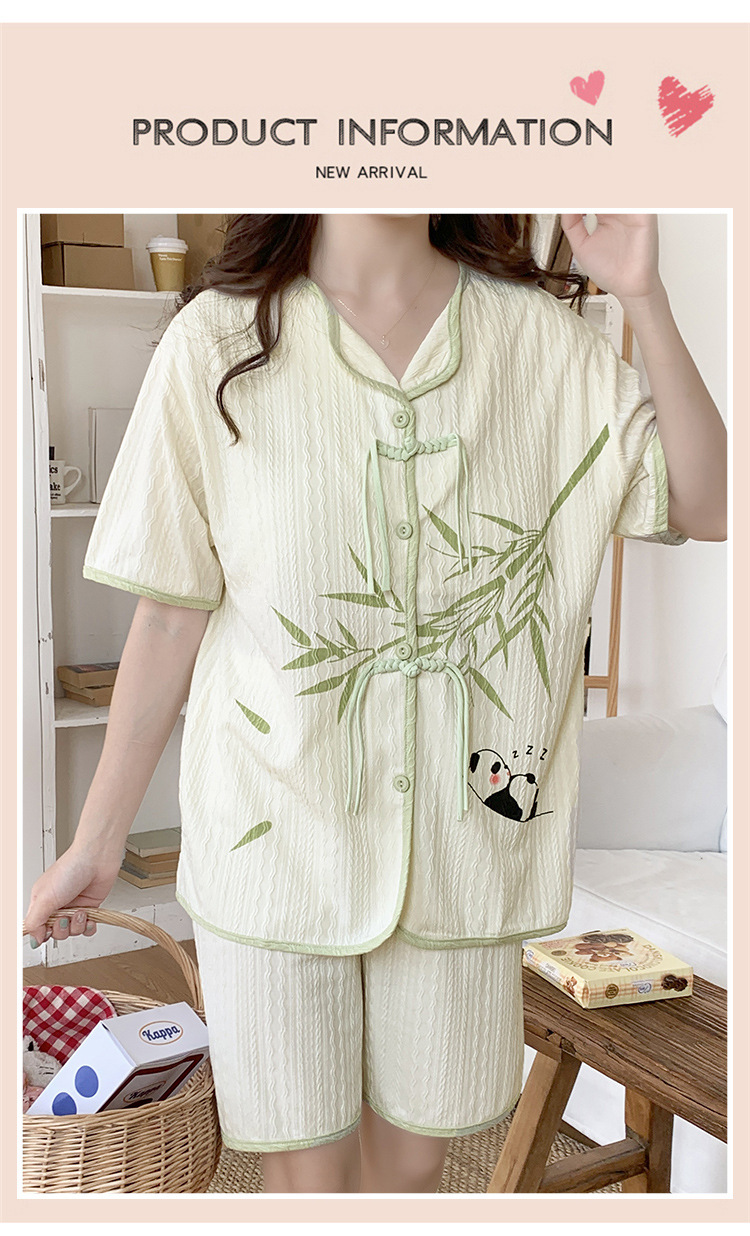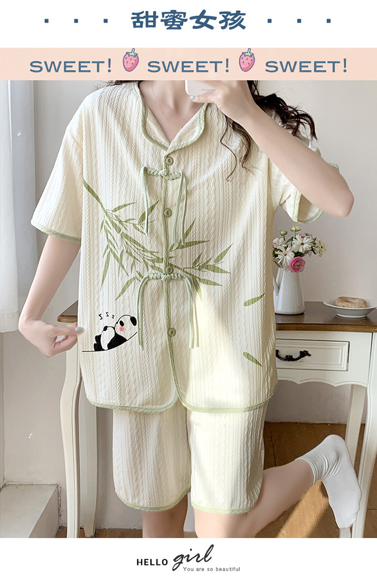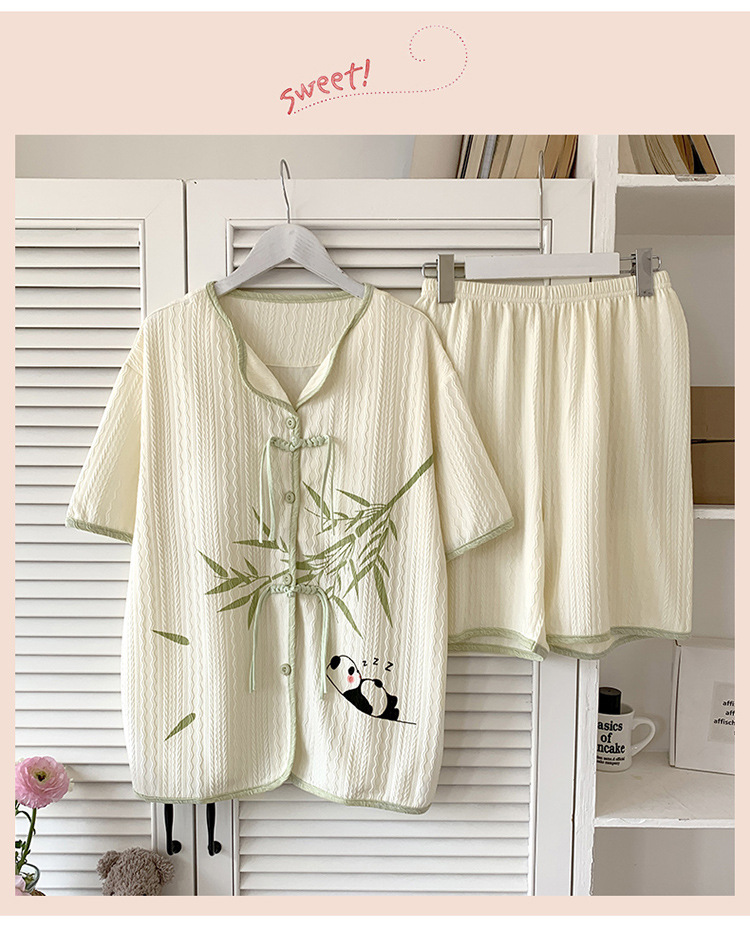 竹子熊猫可爱睡衣女夏季新款短袖中式国风带胸垫可外穿家居服套装