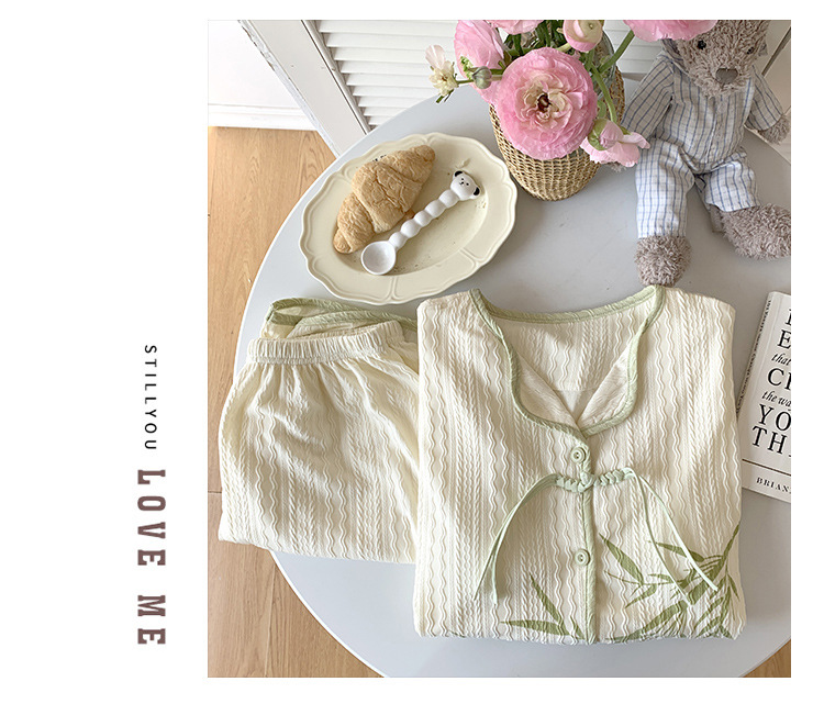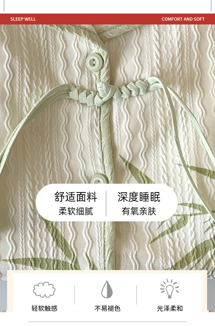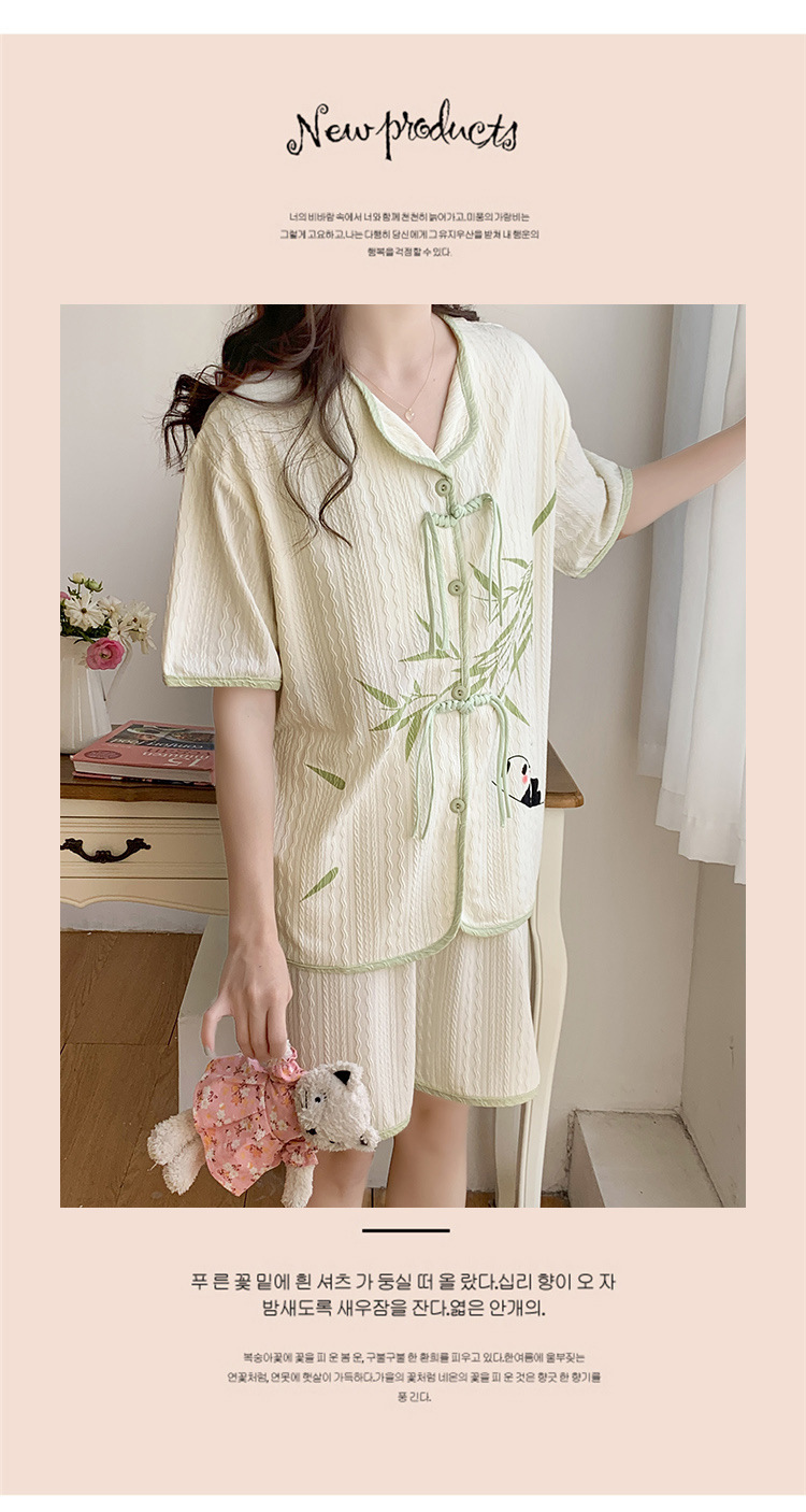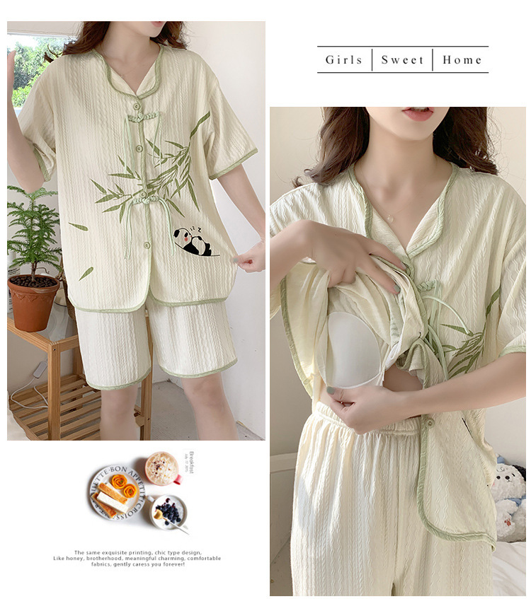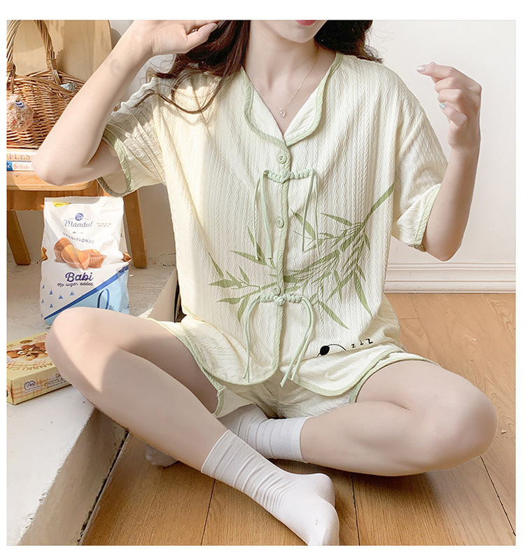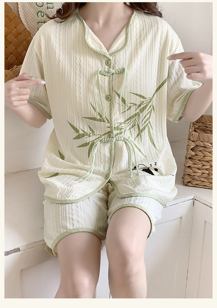 竹子熊猫可爱睡衣女夏季新款短袖中式国风带胸垫可外穿家居服套装