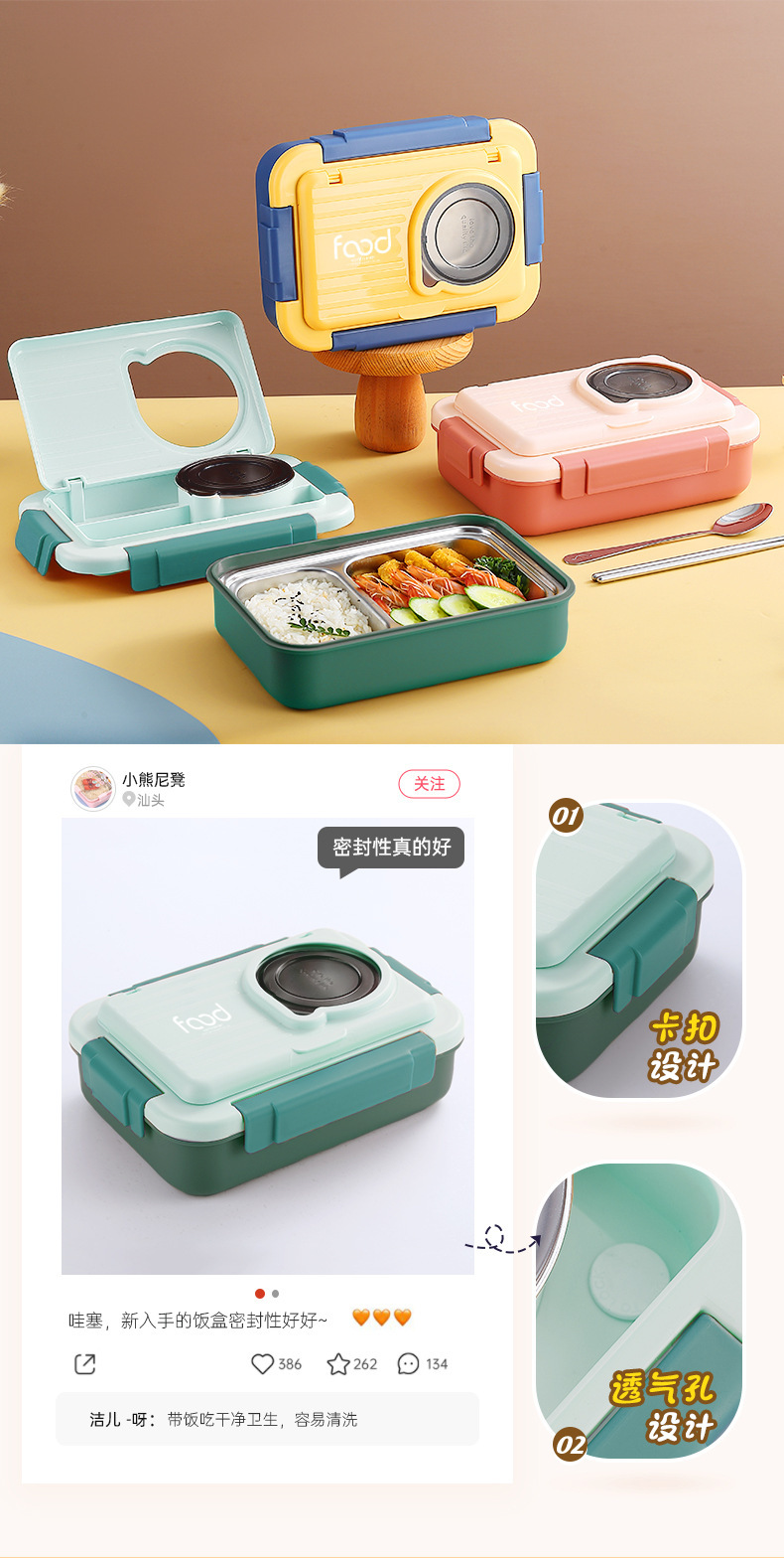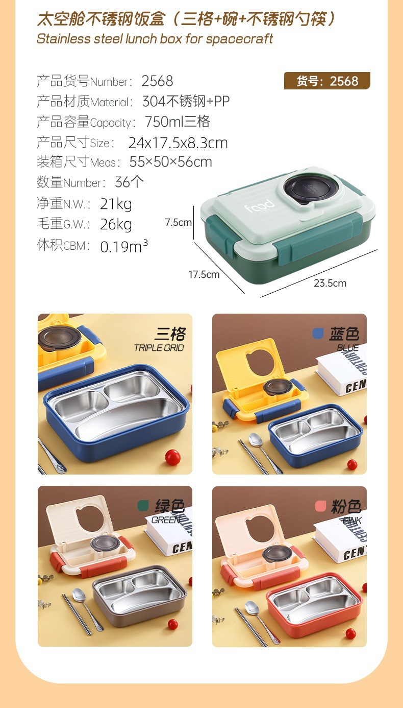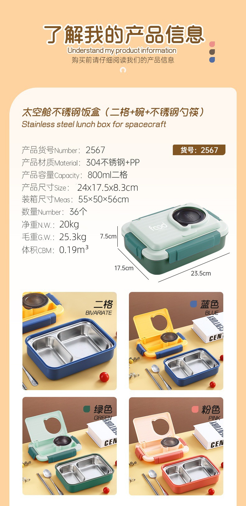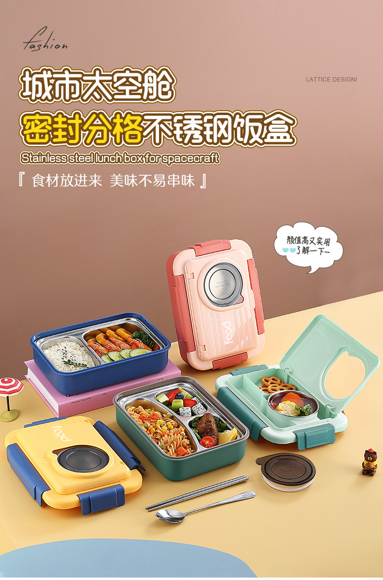 立升 太空舱不锈钢饭盒多规格学生餐盒带餐具饭盒上班族午餐饭盒