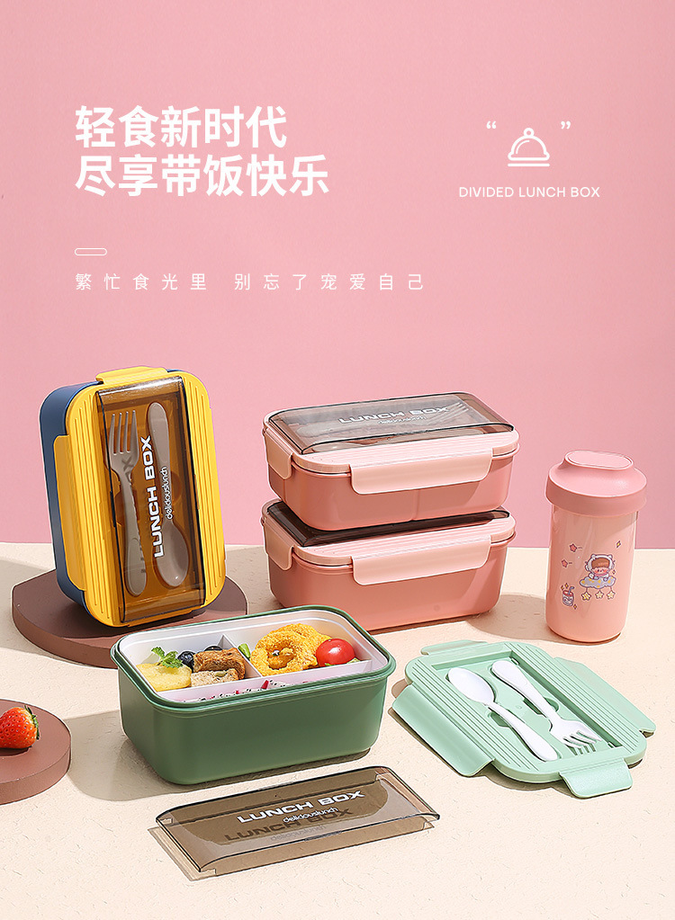 塑料便当饭盒学生食堂分格保鲜餐盒三格分装上班族午餐手提便当盒