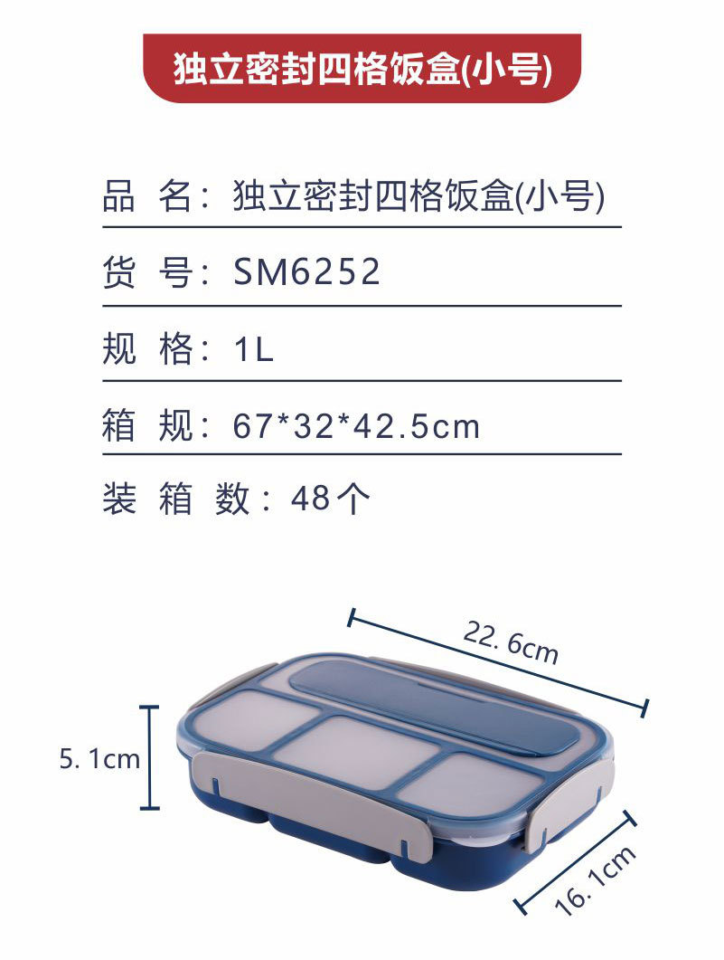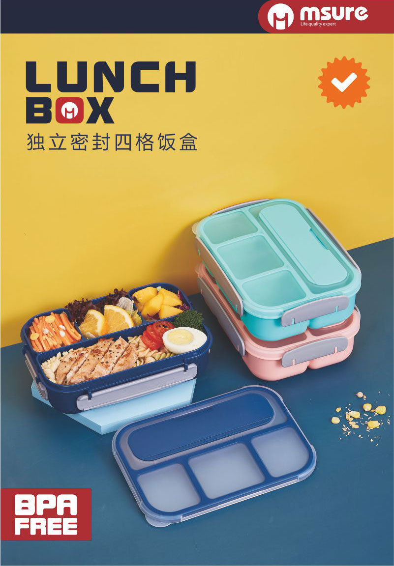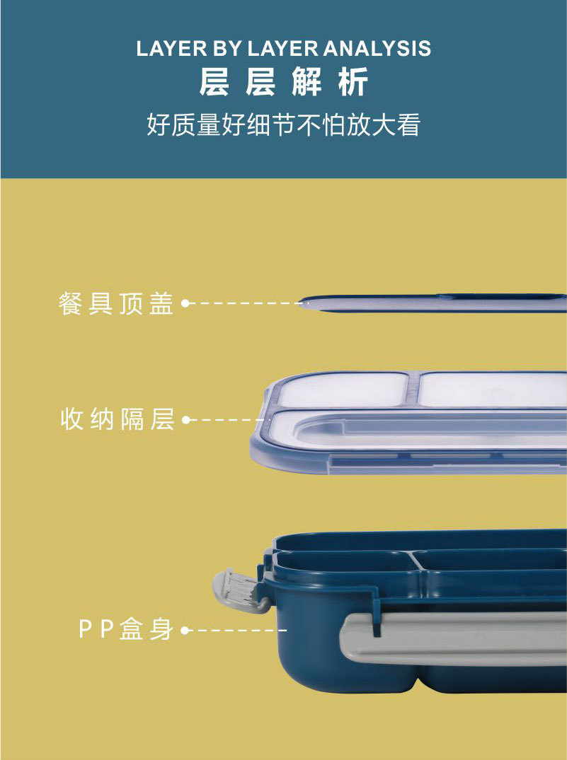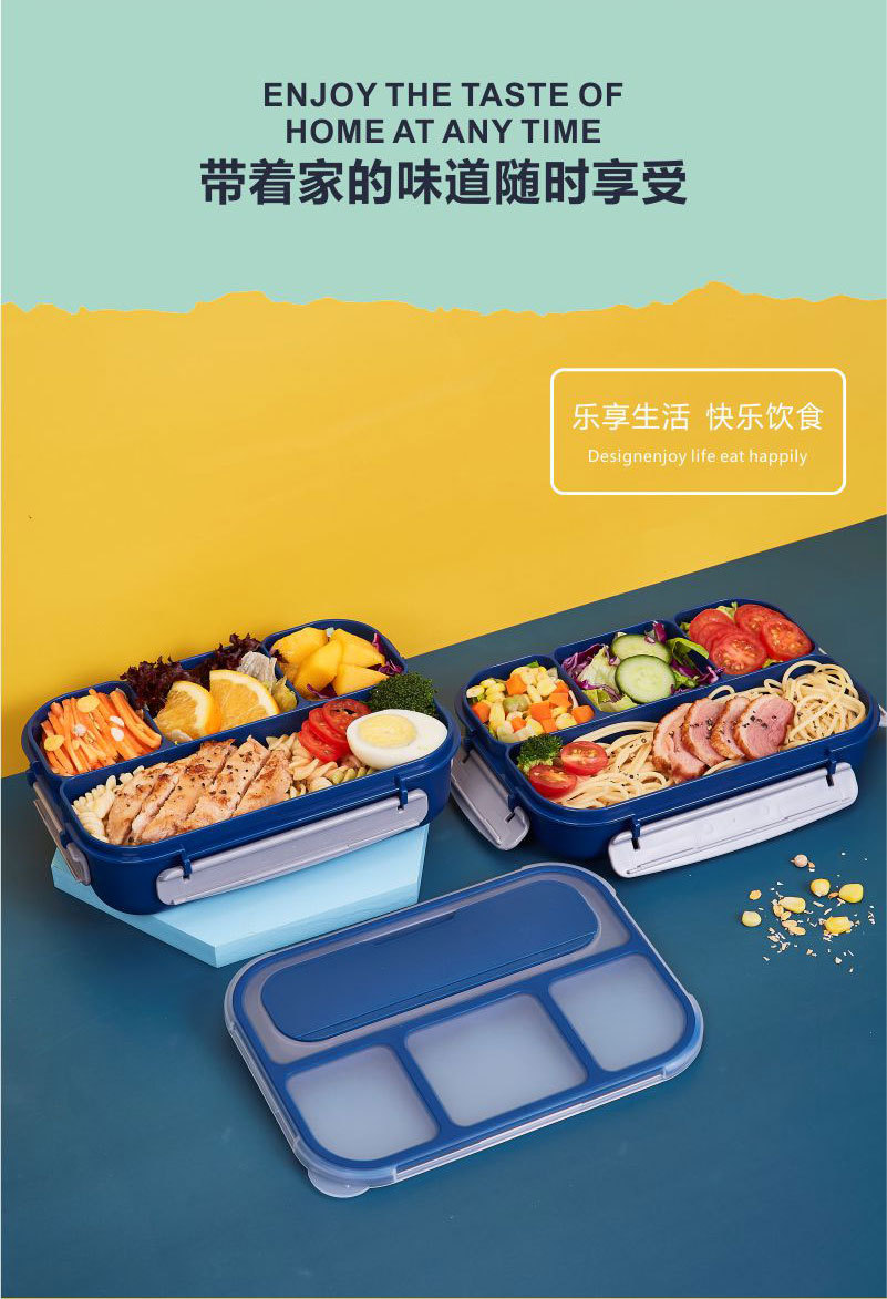 亚马逊四格保温便当盒微波炉学生简约日式风餐盒长方形塑料饭盒