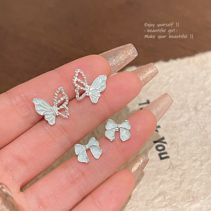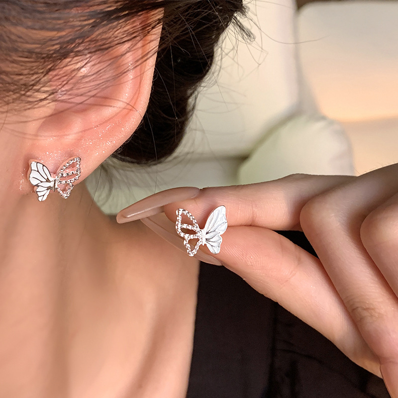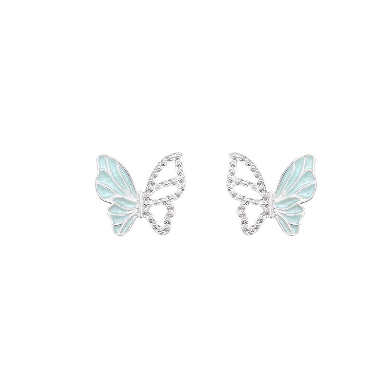 饰品S925银针小众百搭超仙气质耳环镂空蝴蝶耳饰薄荷曼波蝴蝶耳钉