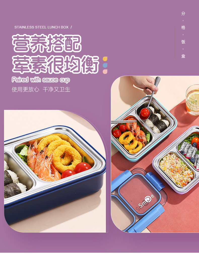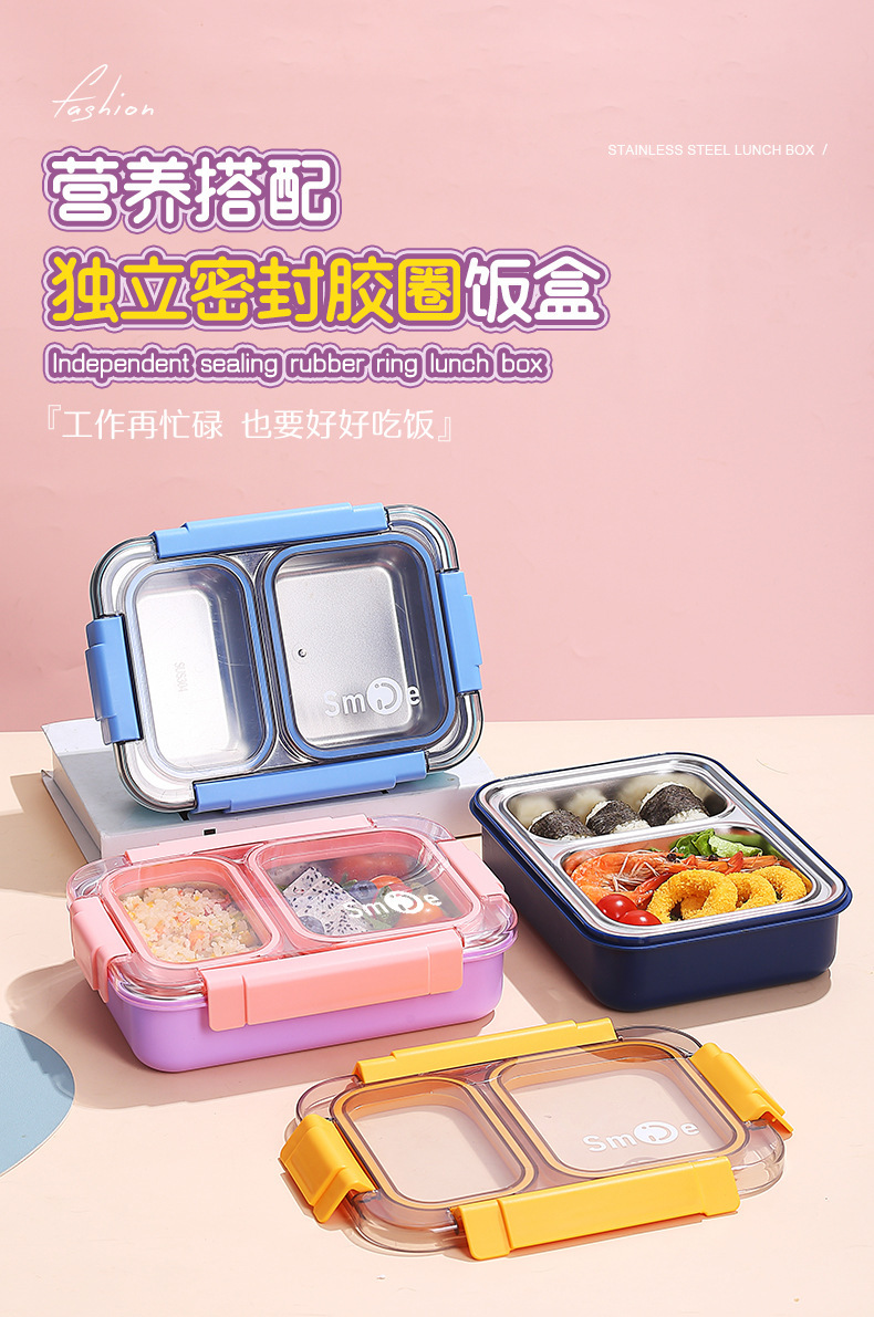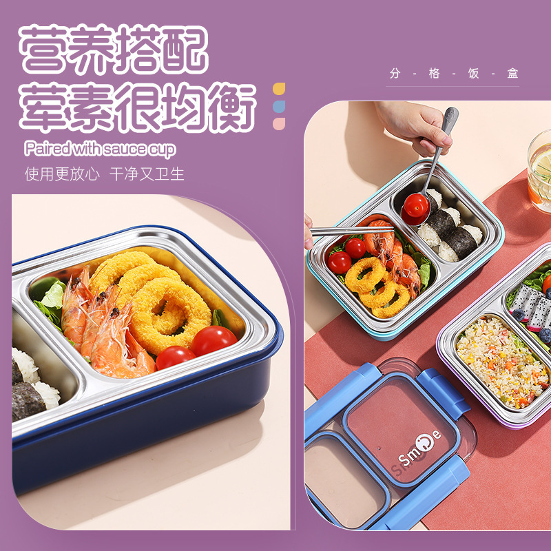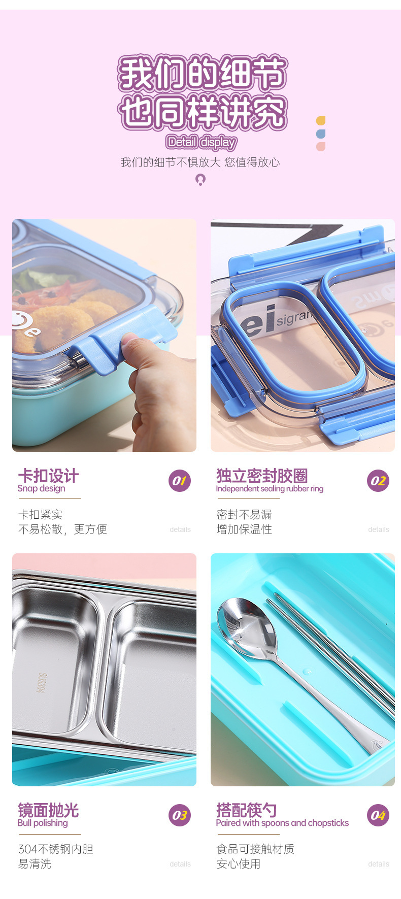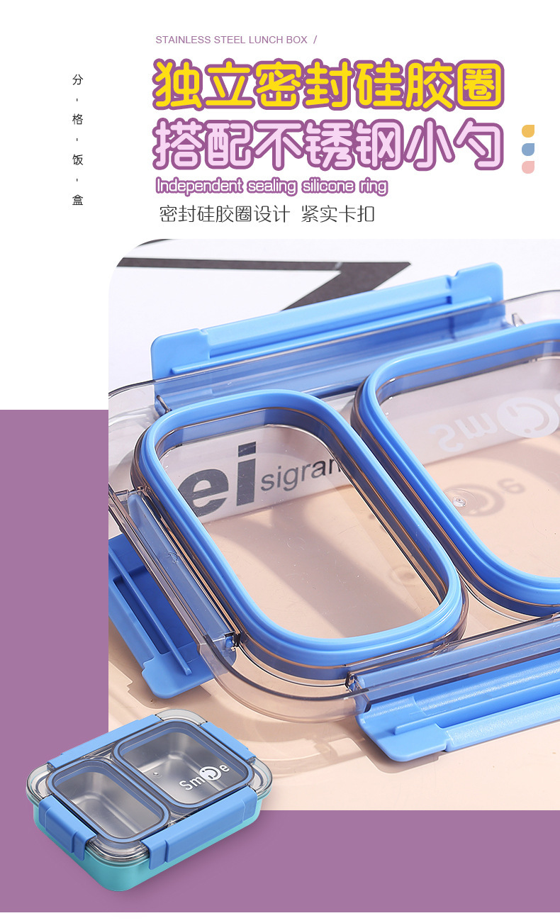 立升 简约撞色304不锈钢密封便当盒可加热便携式学生上班族餐盒