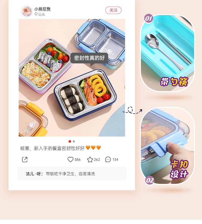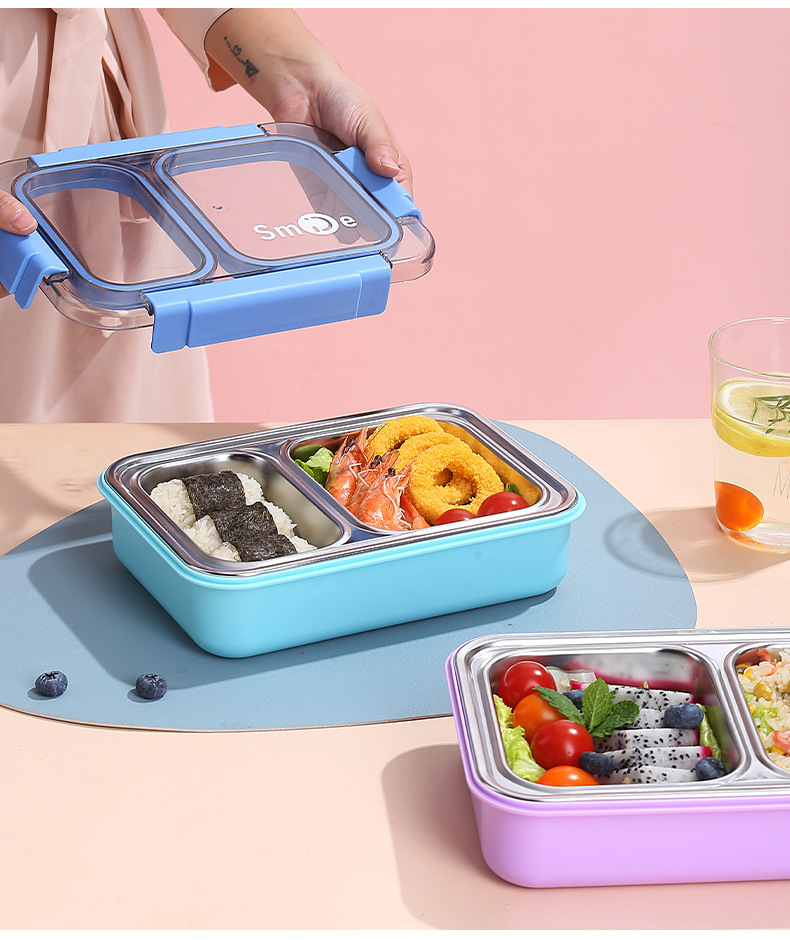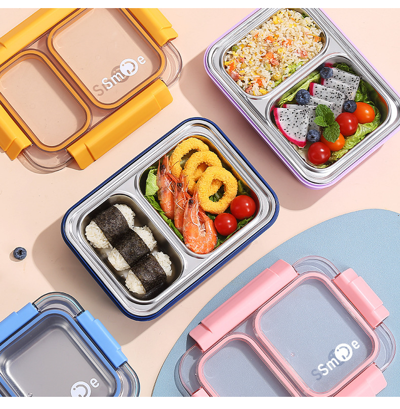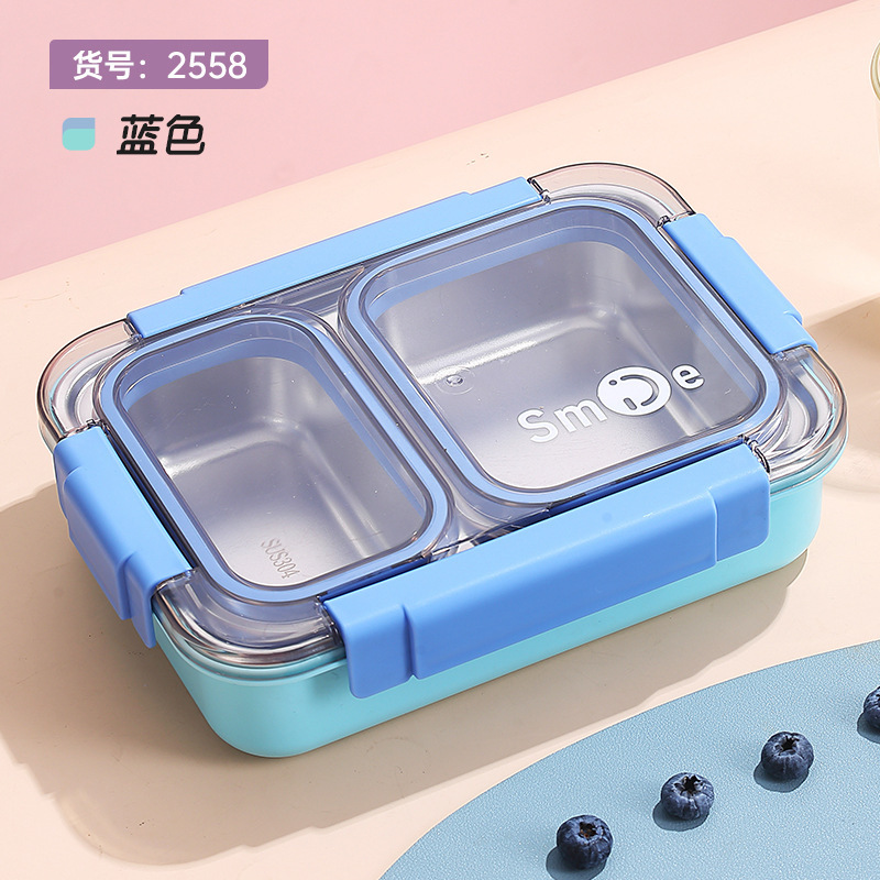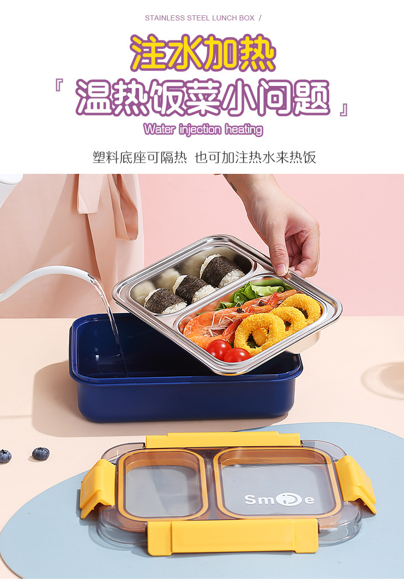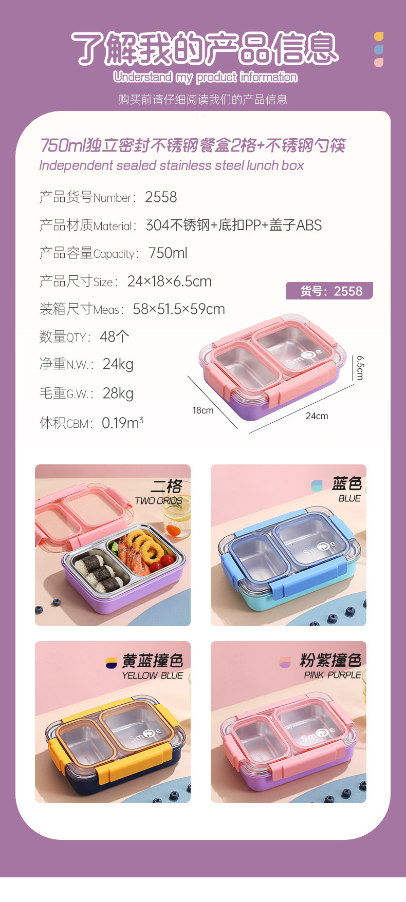 立升 简约撞色304不锈钢密封便当盒可加热便携式学生上班族餐盒