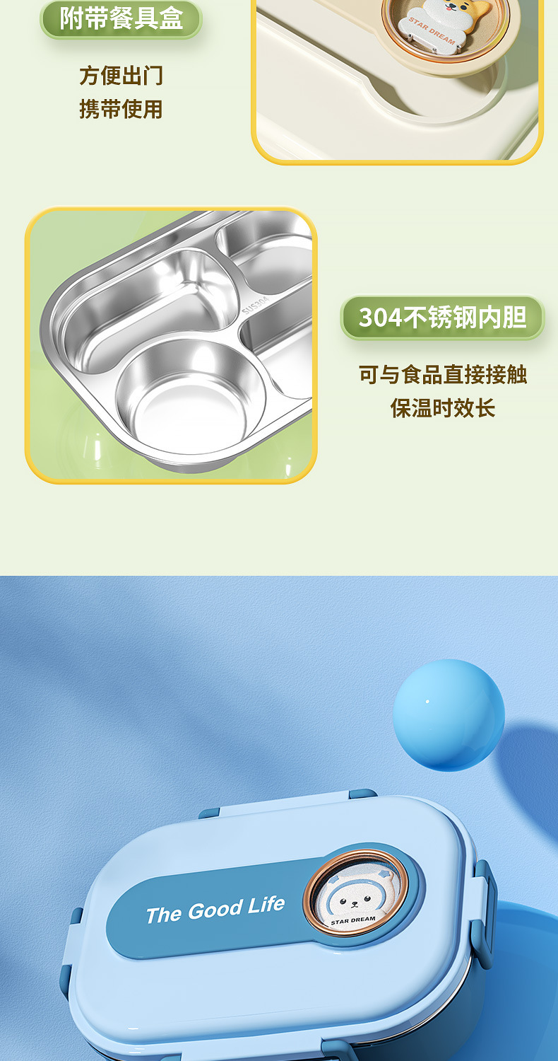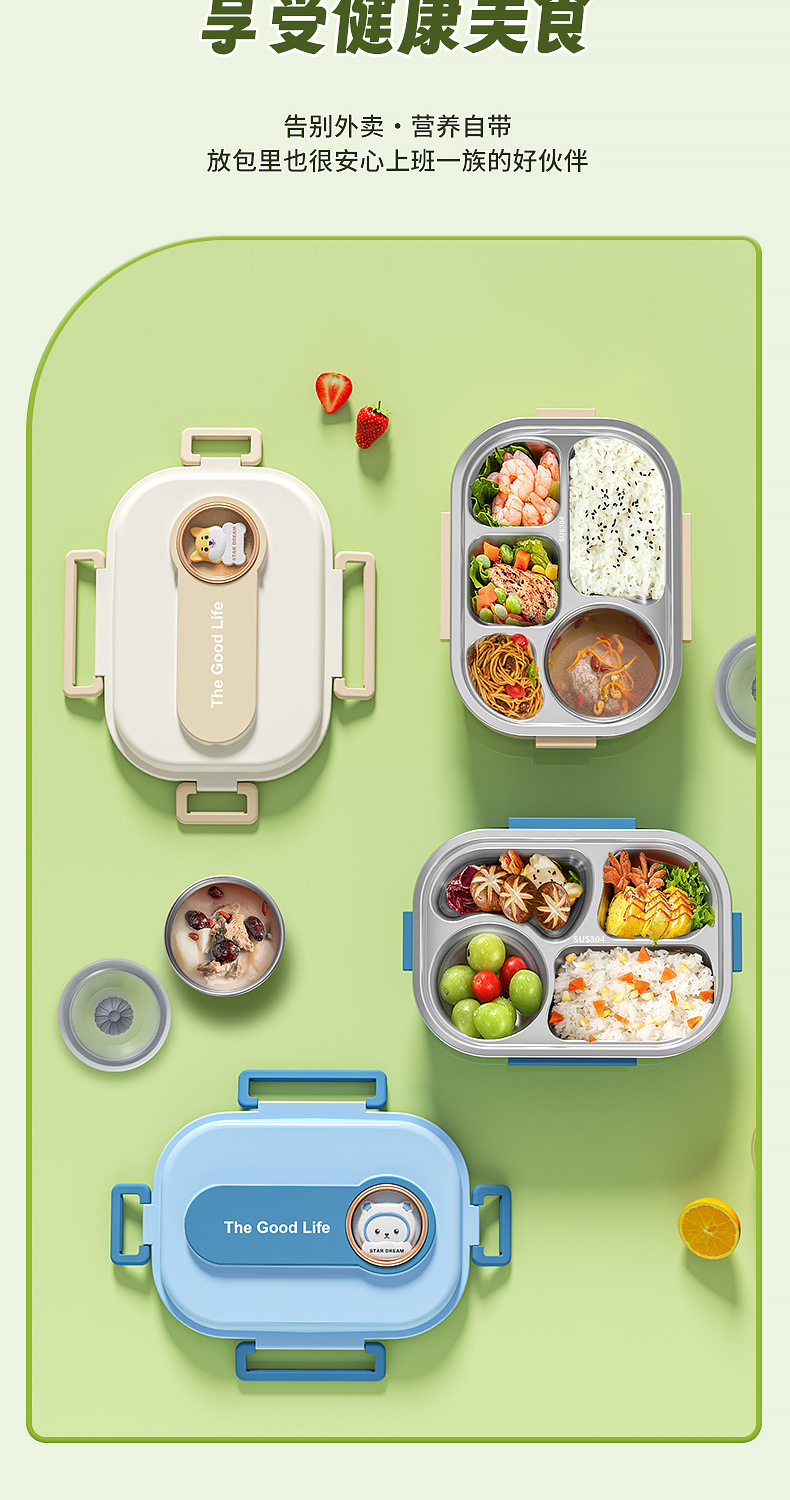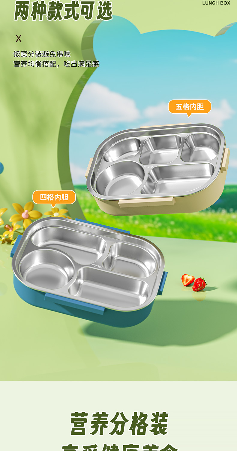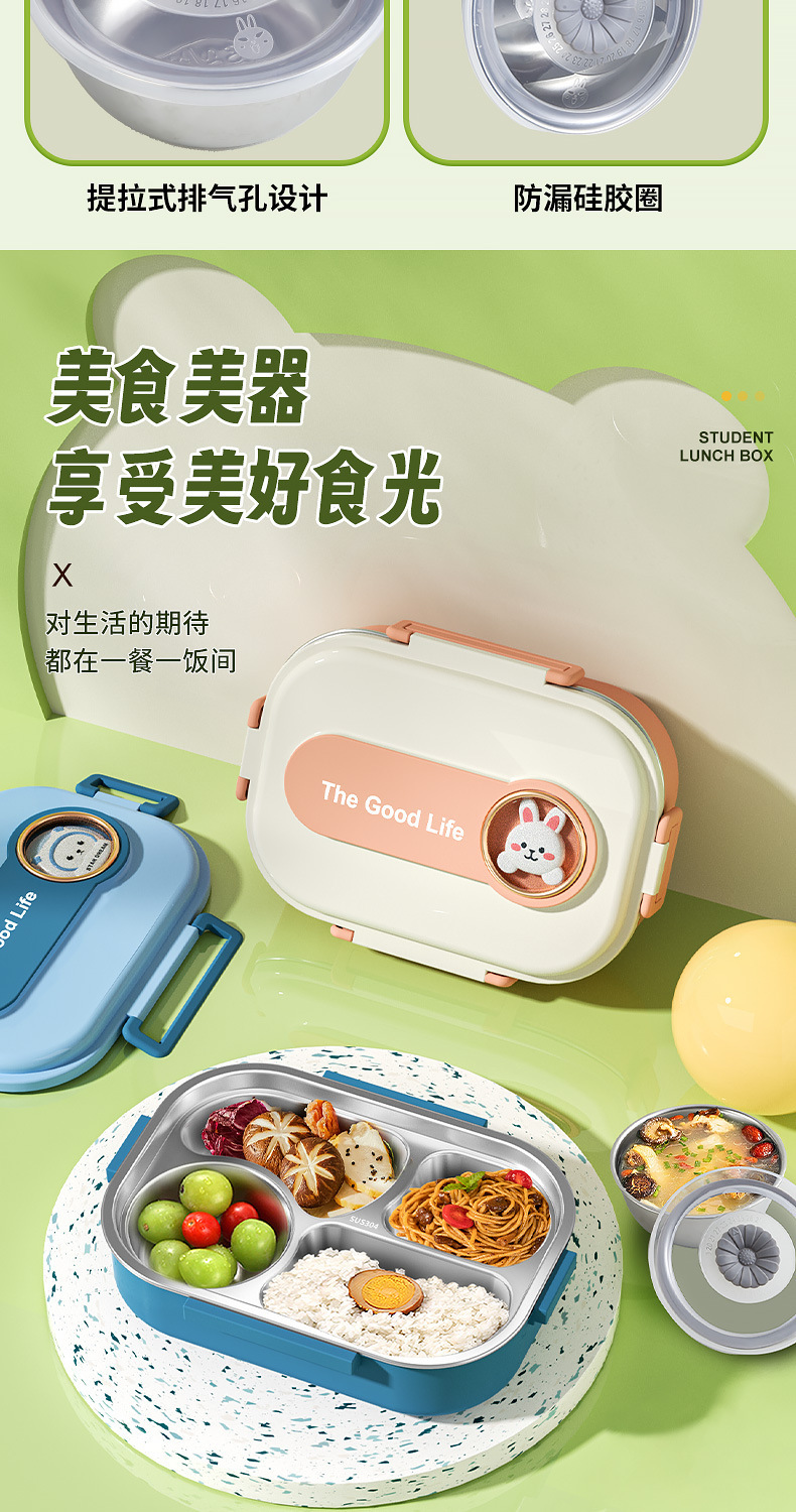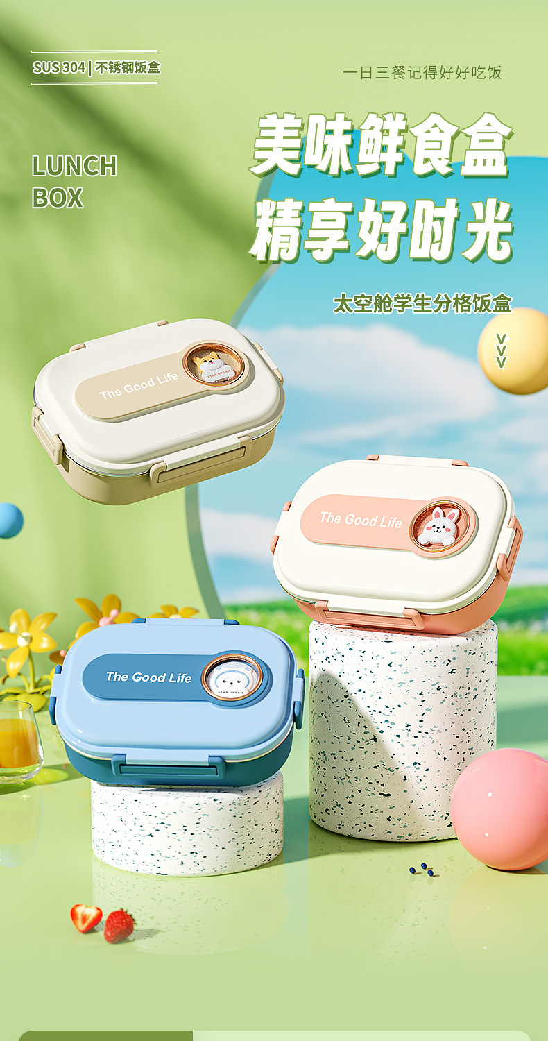 304不锈钢饭盒学生食堂上班族可微波炉冰箱保鲜卡通可爱便携餐盒