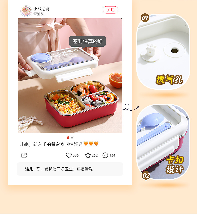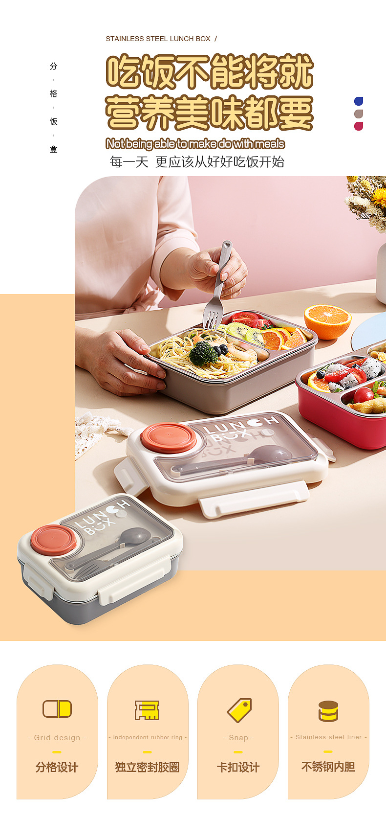 饭盒上班族可微波炉加热304不锈钢学生饭盒分格饭盒食堂打饭饭盒