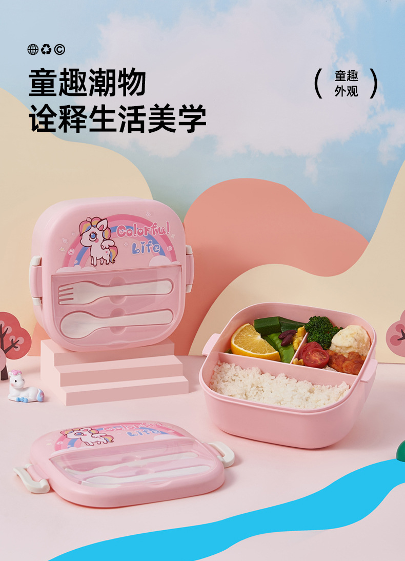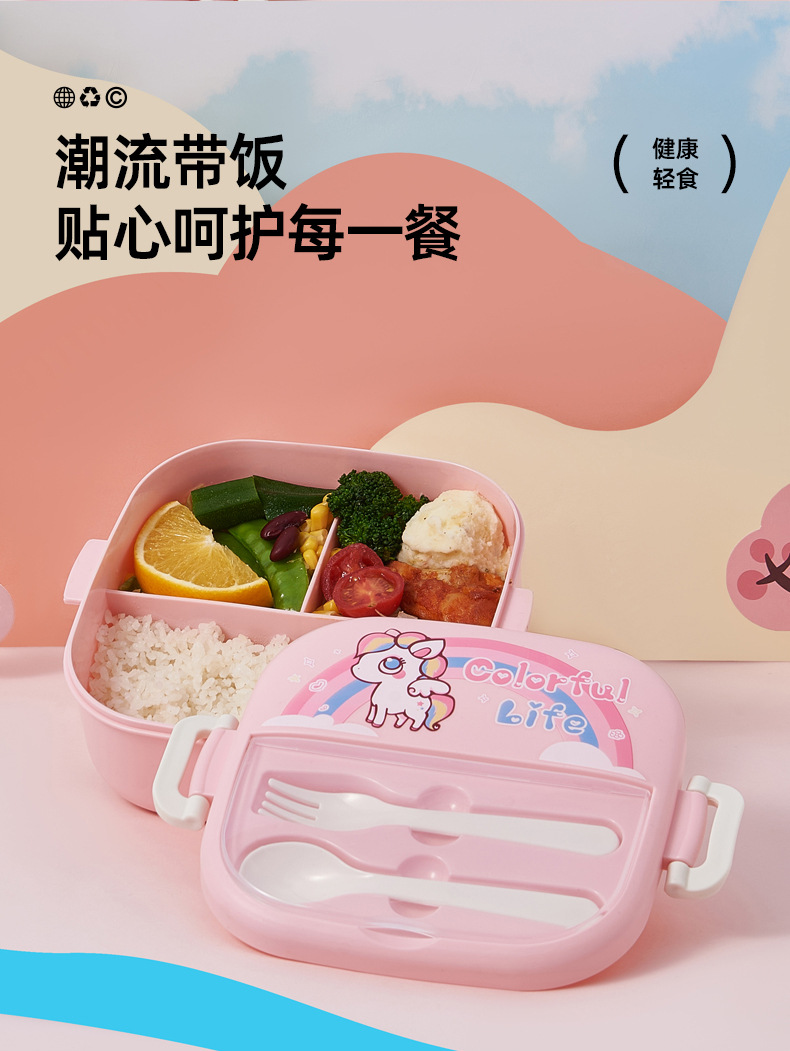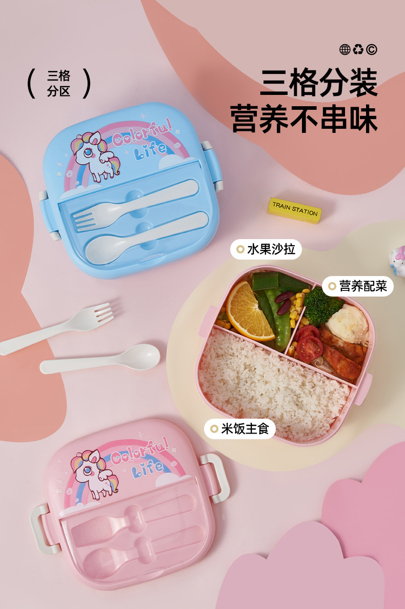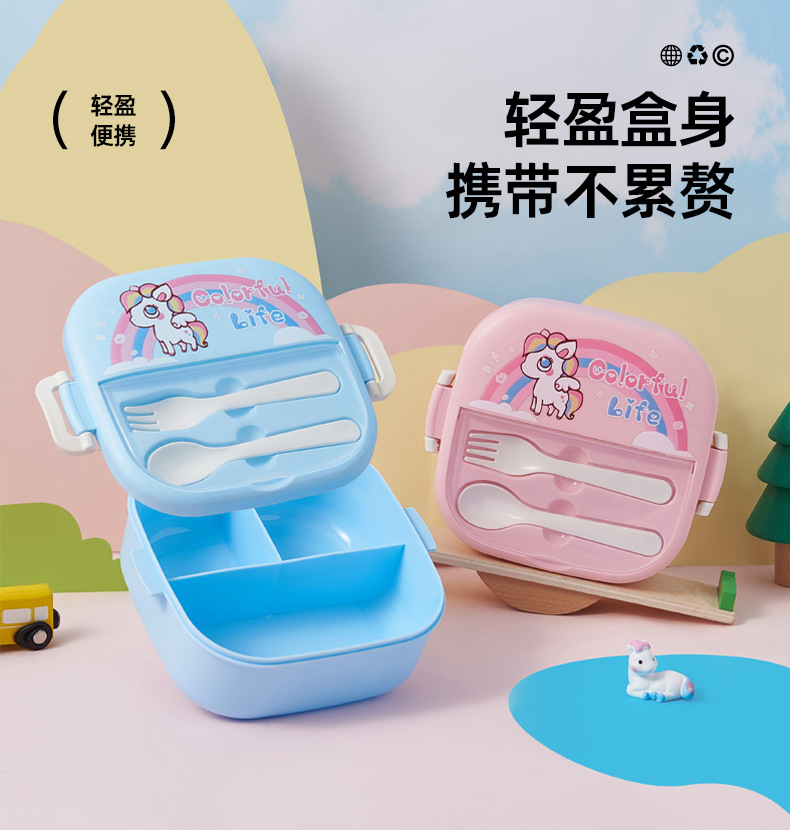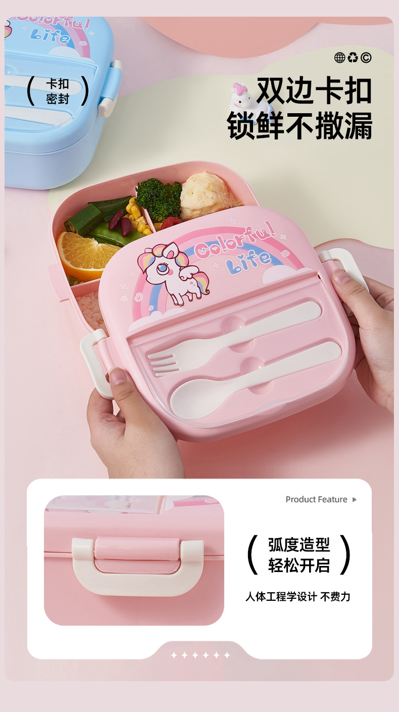 卡通塑料饭盒上班族微波炉加热饭盒带盖保鲜盒水果便当盒