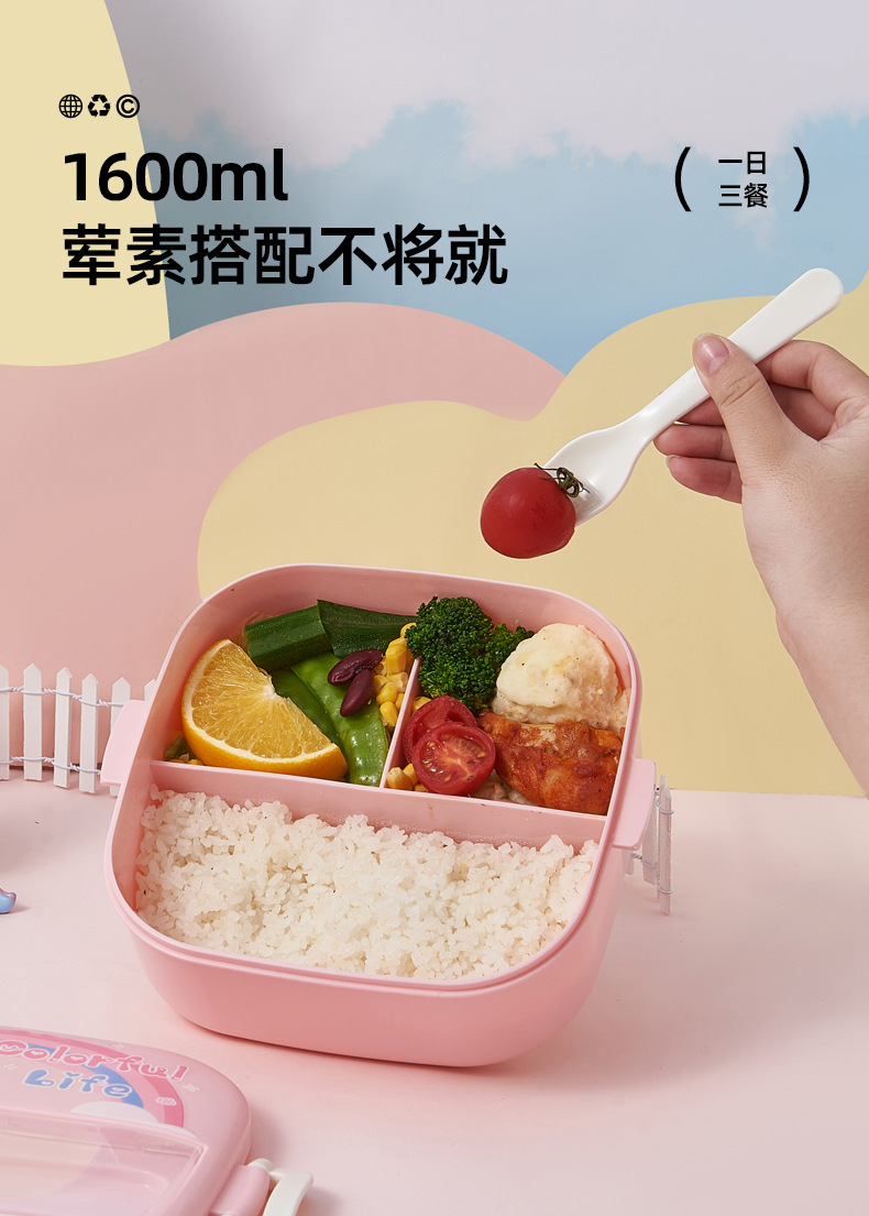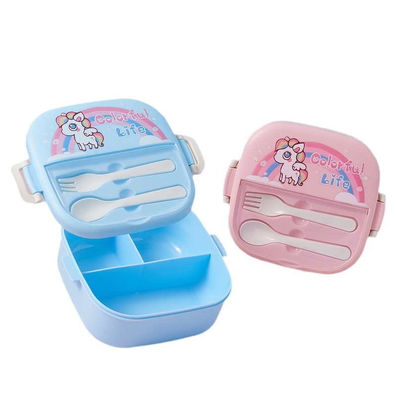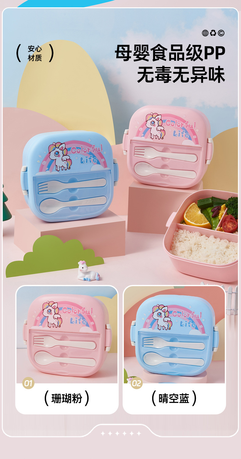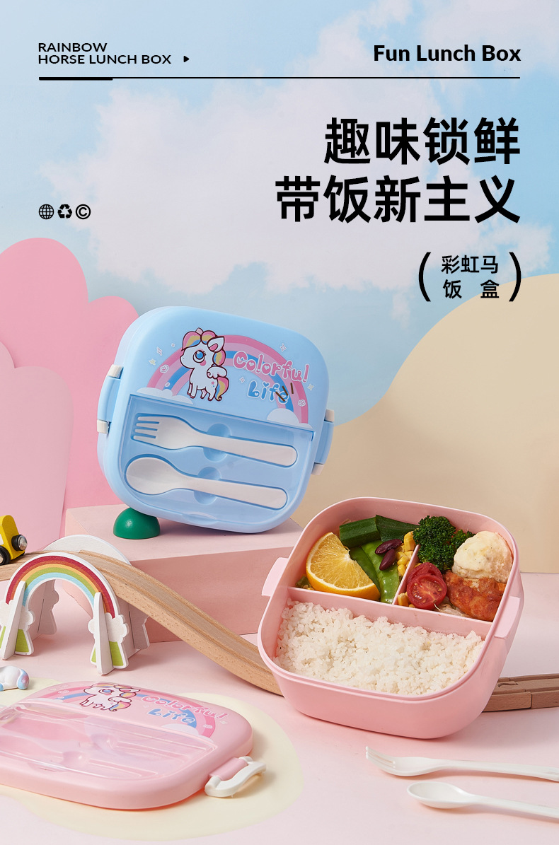 卡通塑料饭盒上班族微波炉加热饭盒带盖保鲜盒水果便当盒