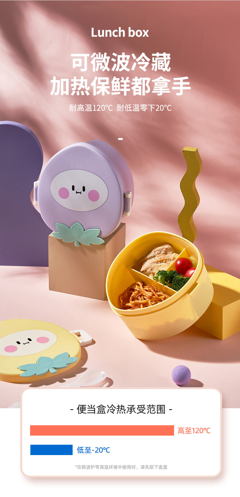 塑料饭盒卡通水果形分格学生餐盒便携大容量可微波炉便当盒批发