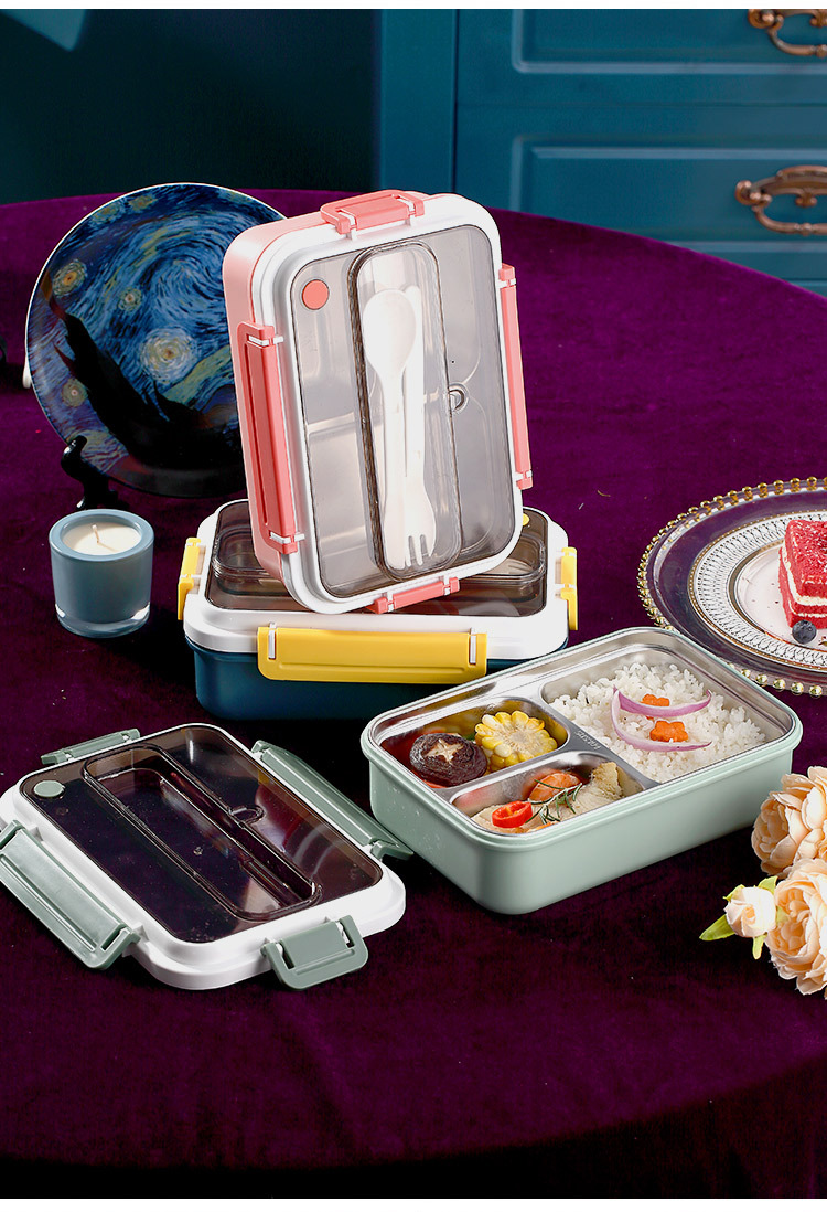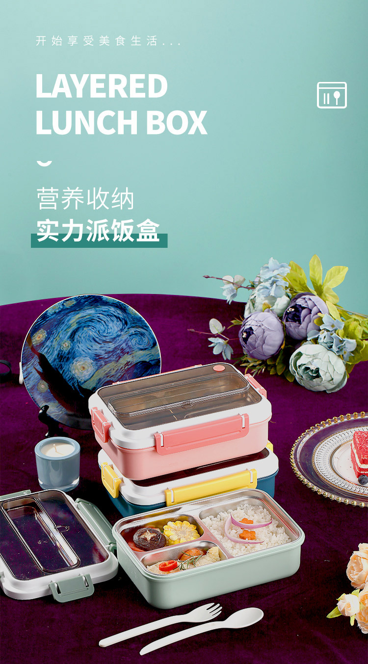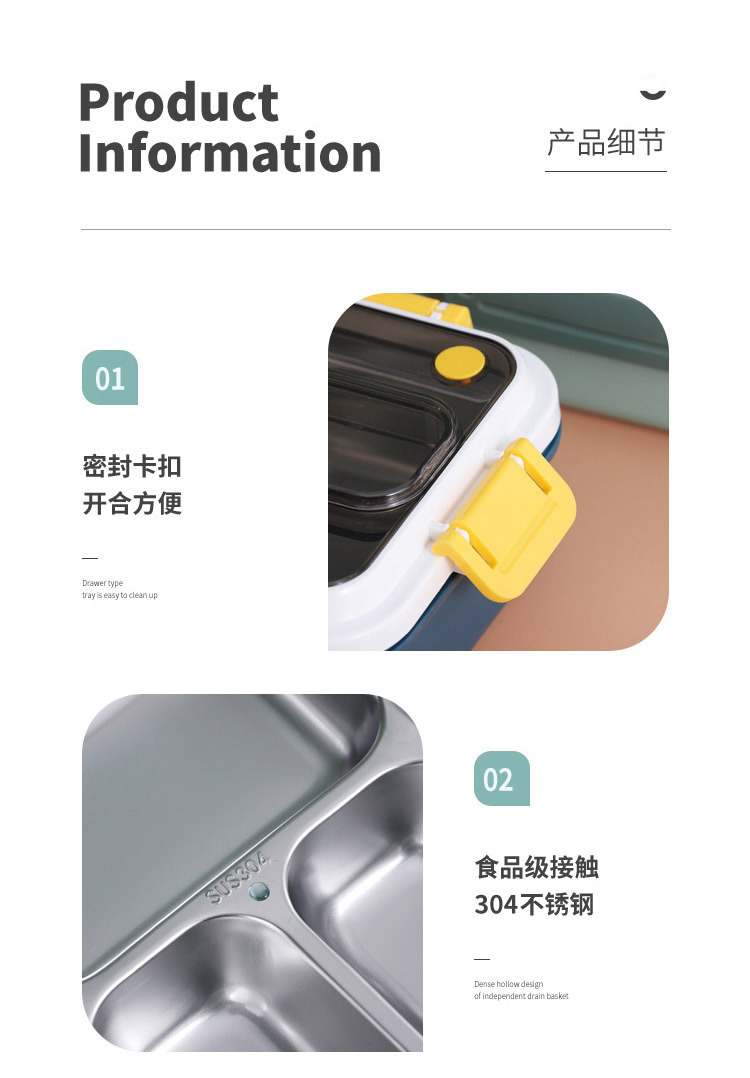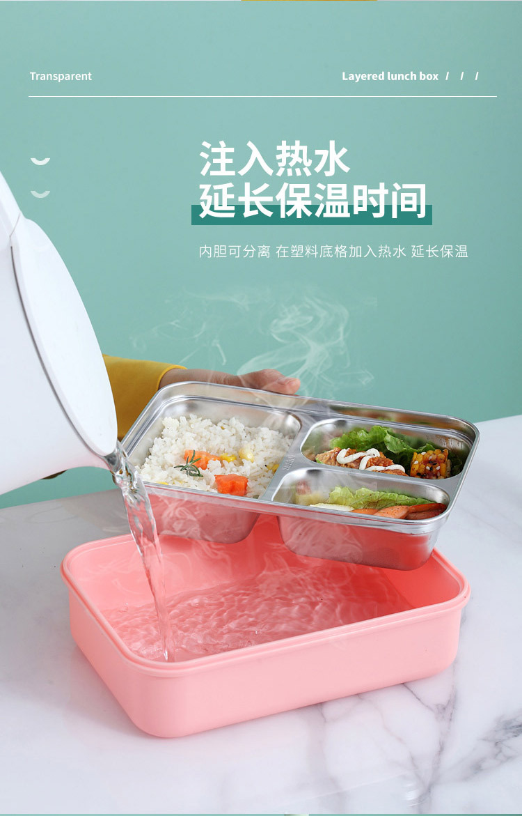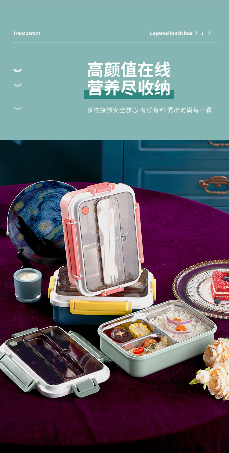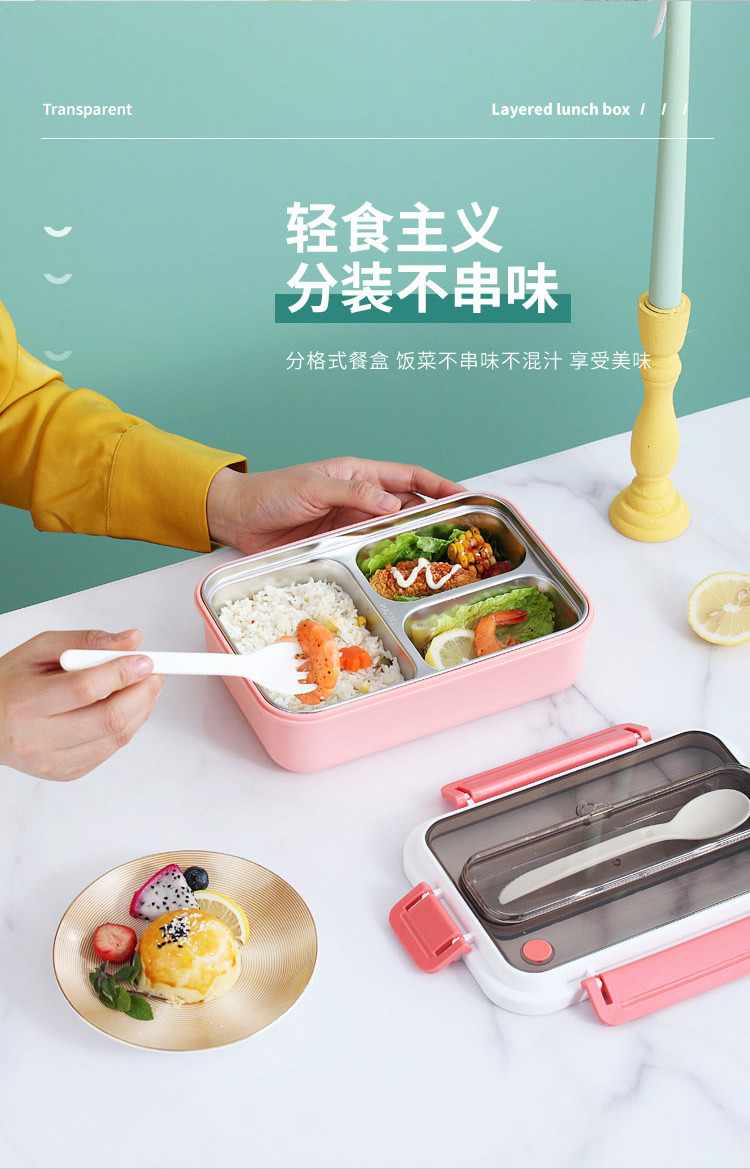 新款饭盒304不锈钢分格便当盒加厚保温加热快餐盒学生上班族餐盒