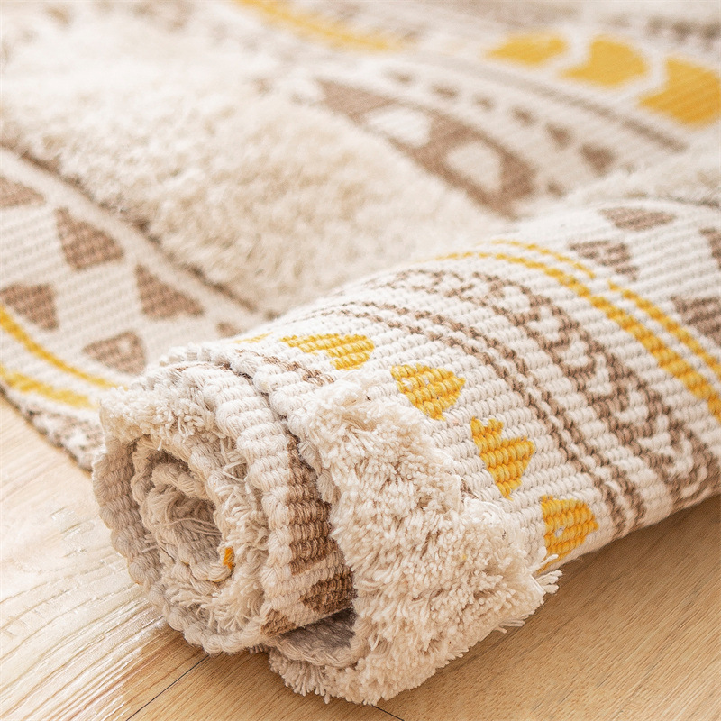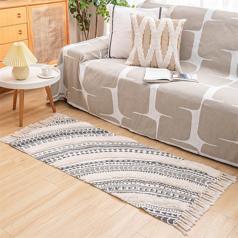 外贸跨境北欧卧室床边地垫家用房间客厅地垫网红简约几何棉线编织