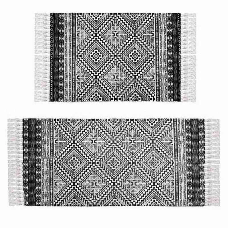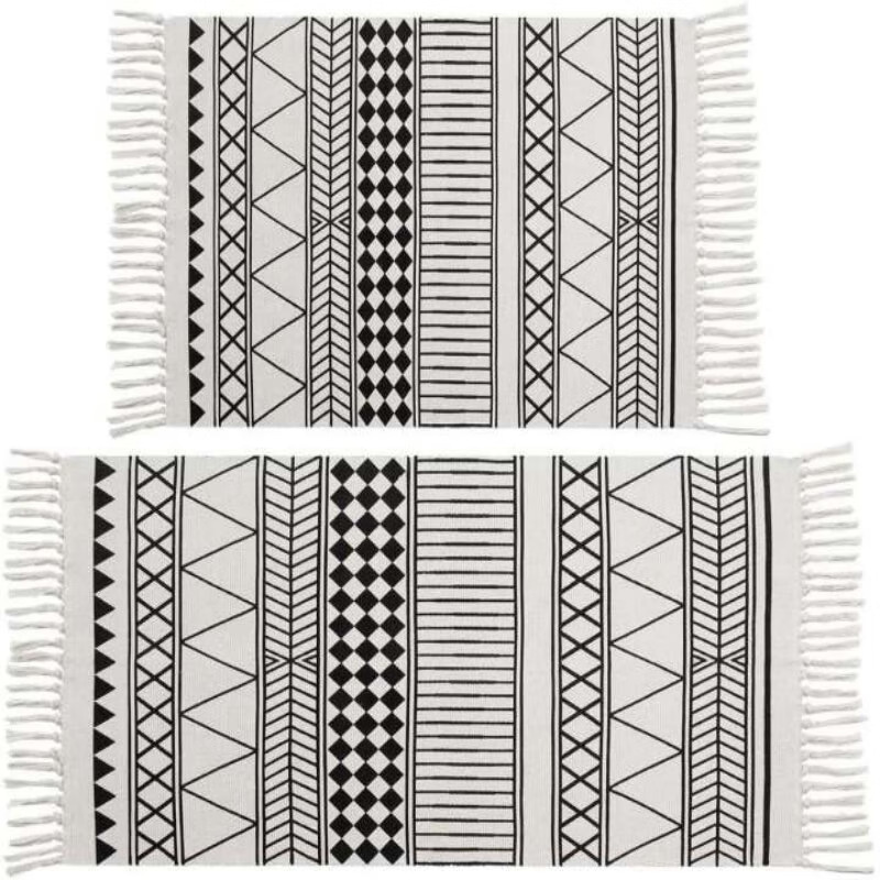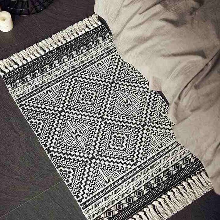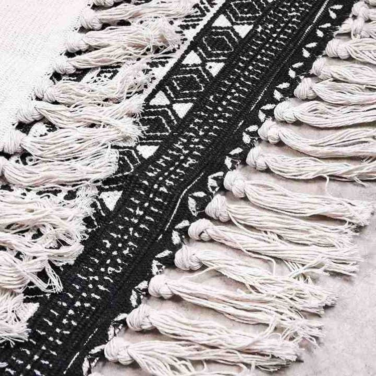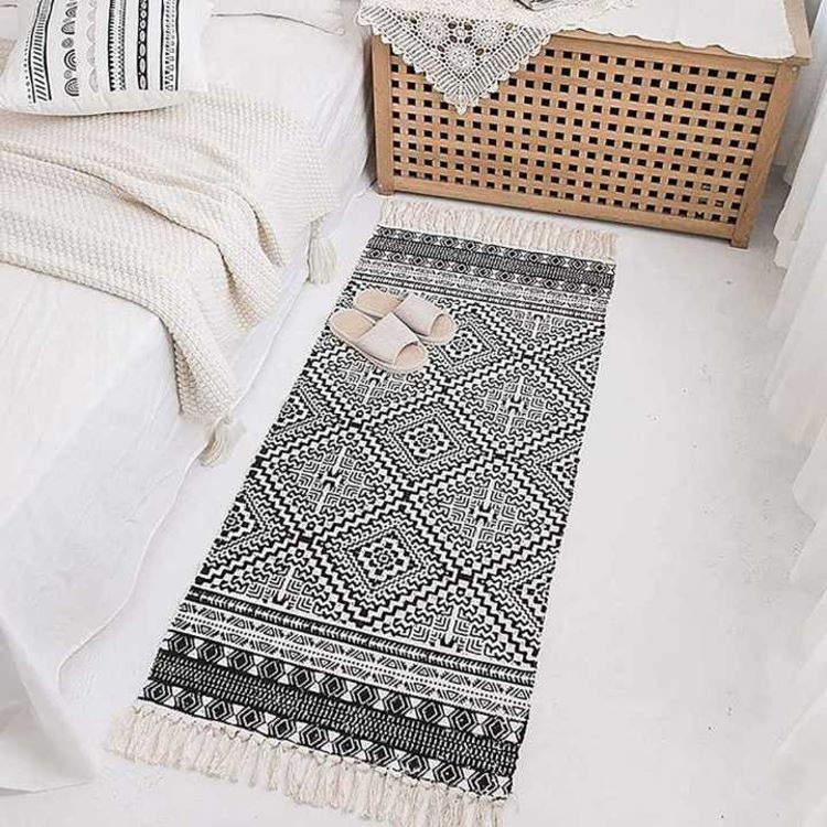 聚家北欧复古棉麻流苏地垫卧室床边毯客厅茶几地垫家用入户门门