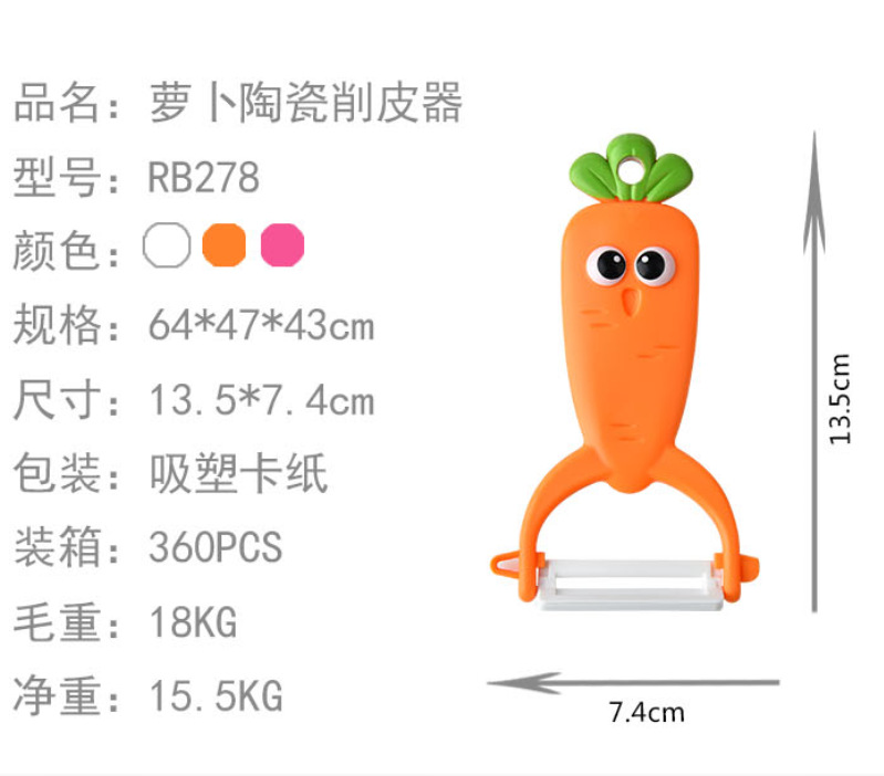 RB278红萝卜陶瓷削皮器 卡通削皮刀 创意多功能陶瓷削皮器 新款