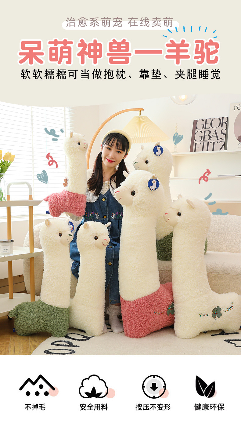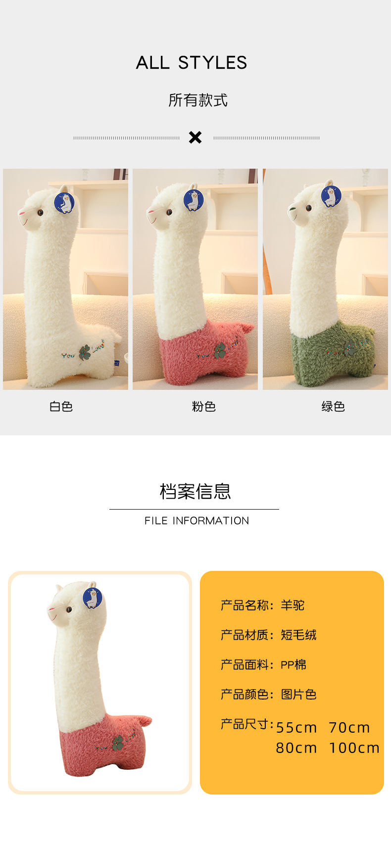 跨境新款羊驼抱枕毛绒玩具大号呆萌羊睡觉床上抱公仔女孩生日礼物