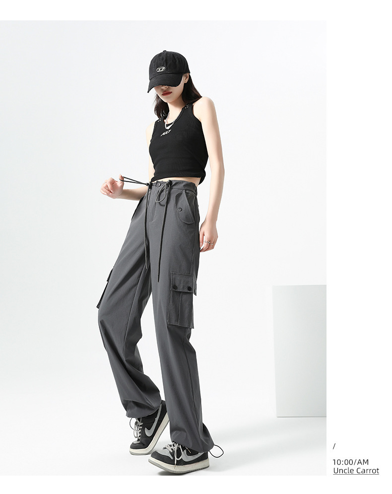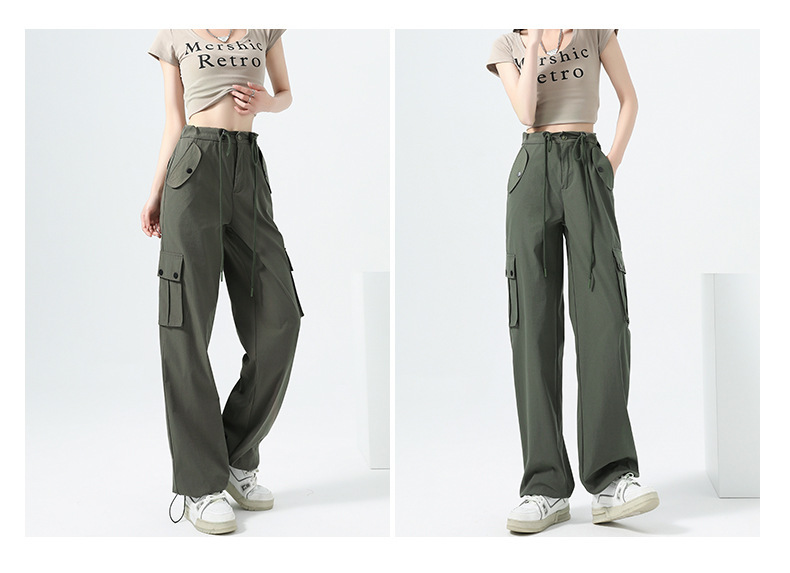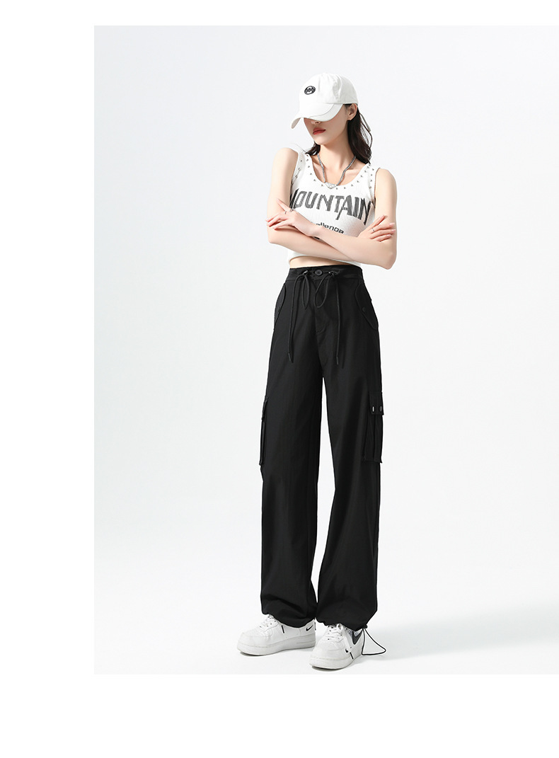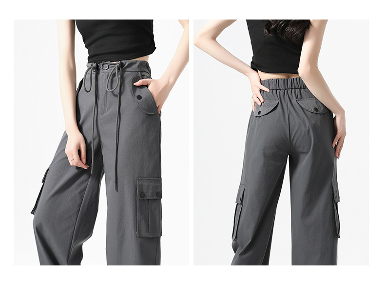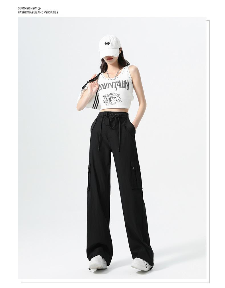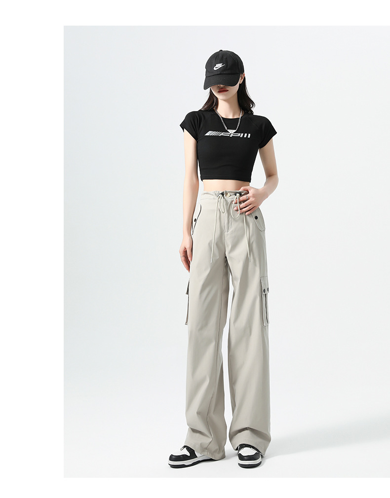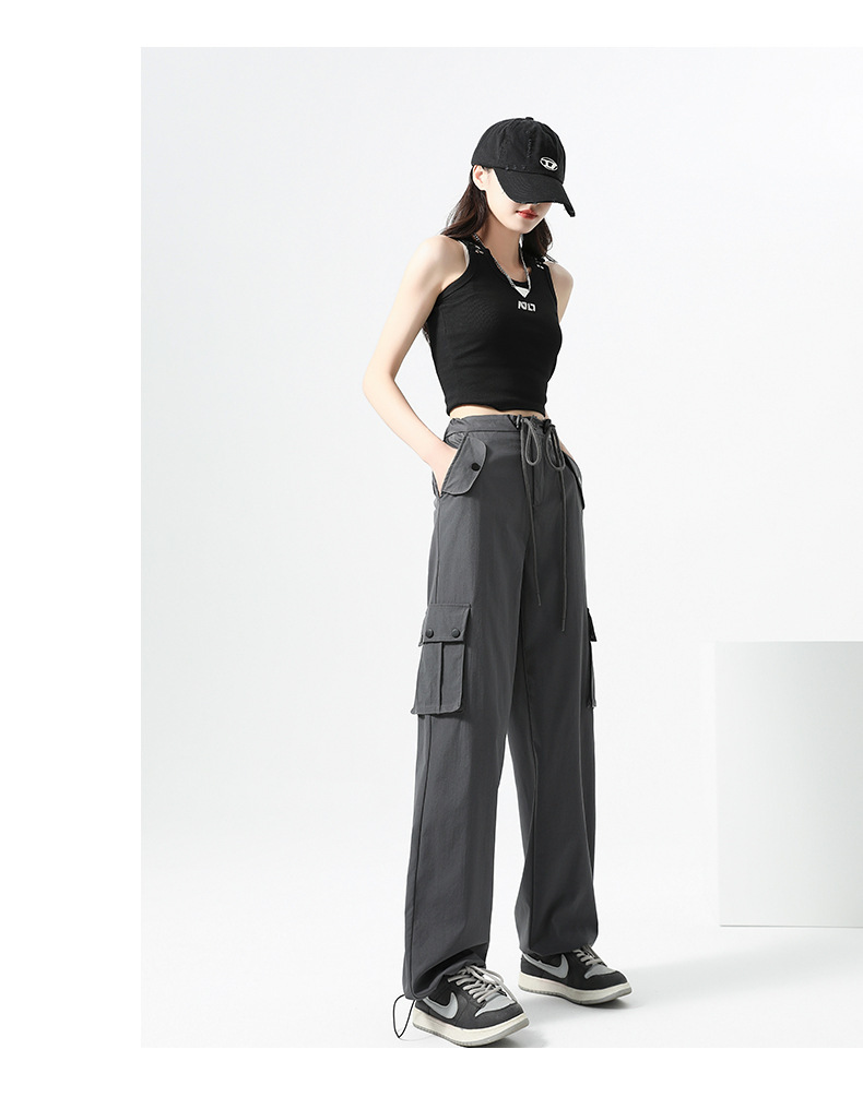 速干工装裤女2024夏季新款小个子束脚裤高腰阔腿美式休闲运动裤子