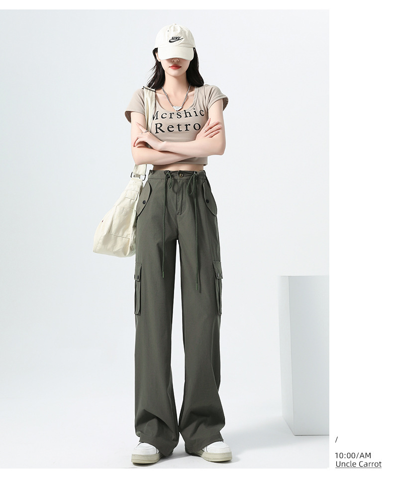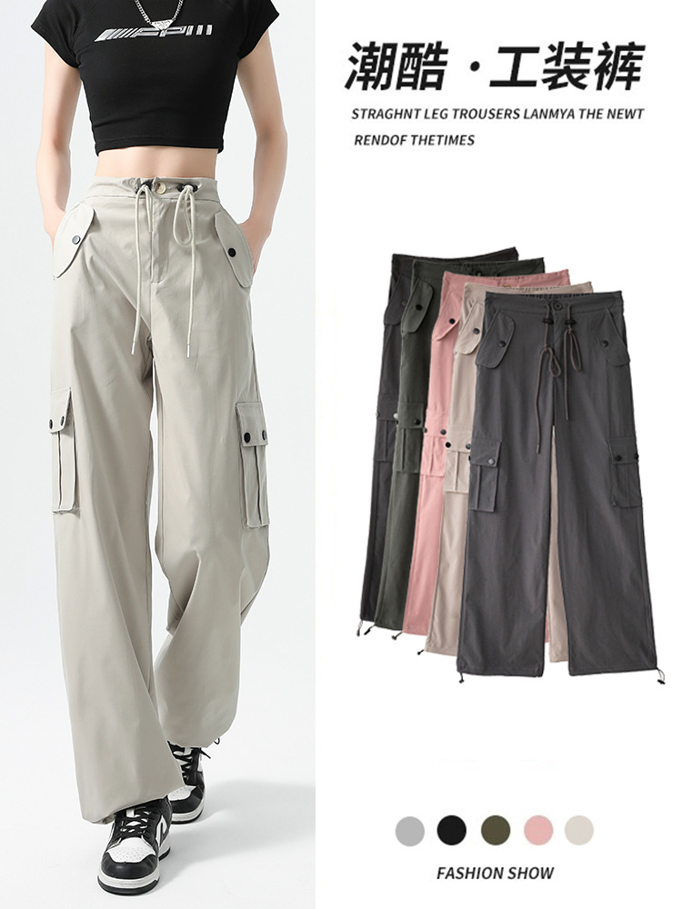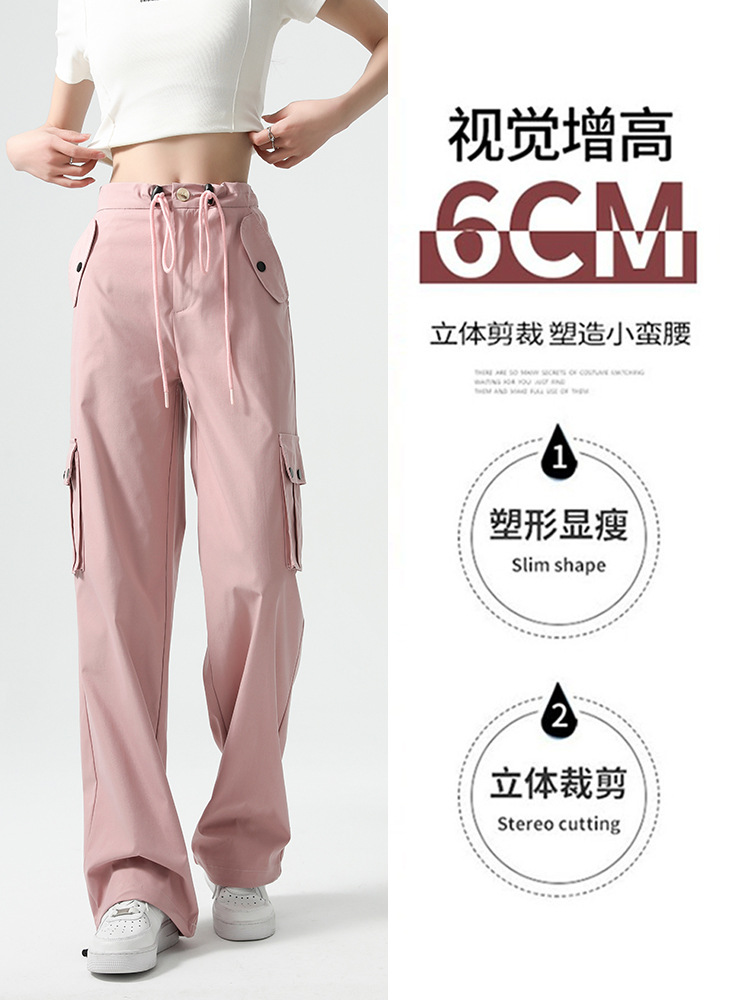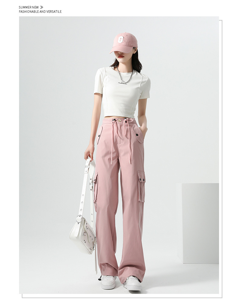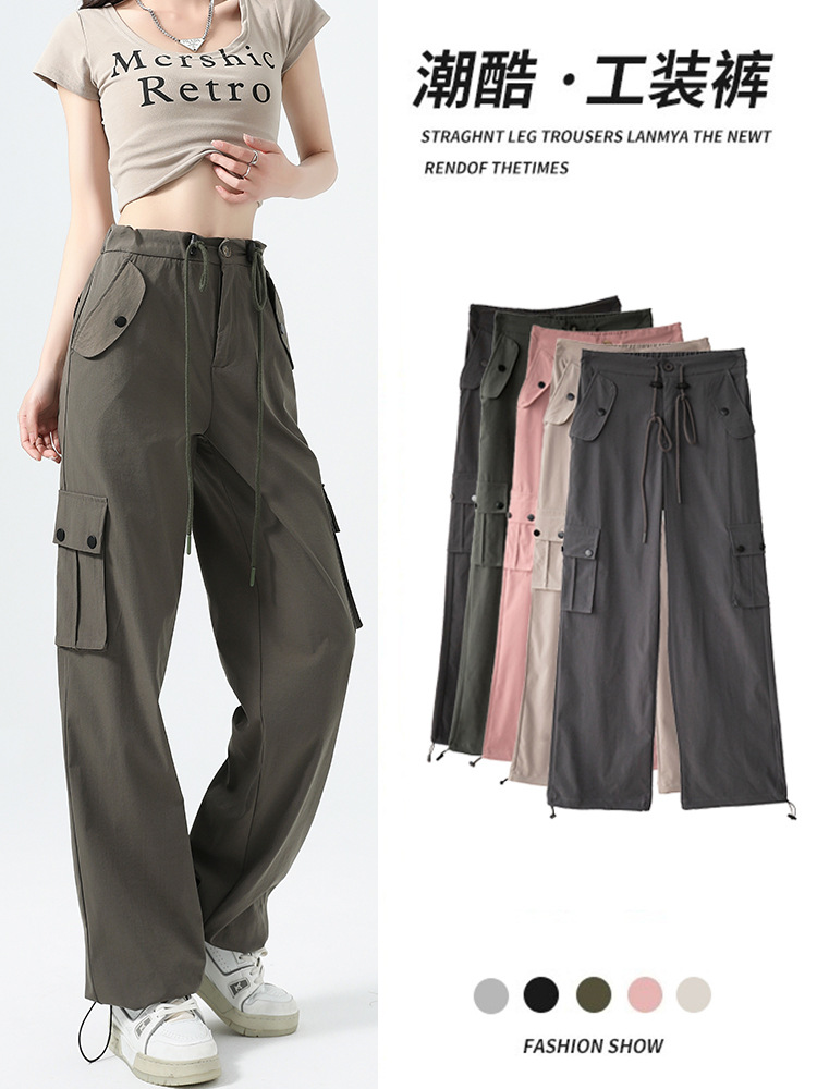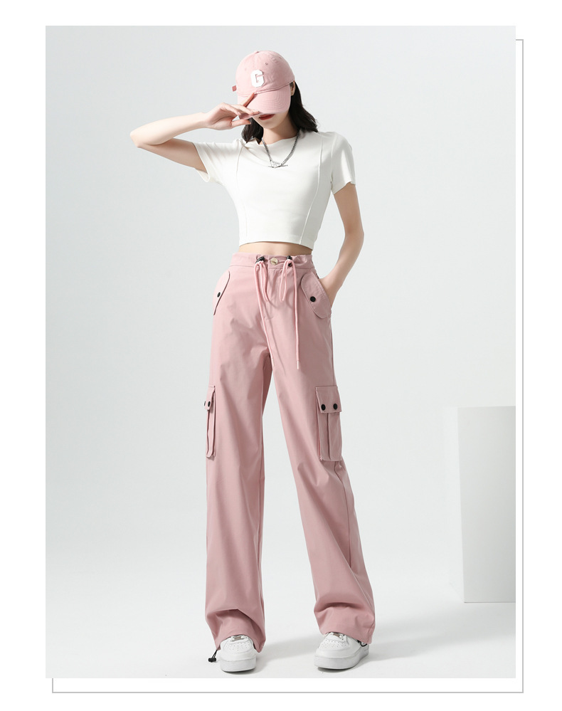 速干工装裤女2024夏季新款小个子束脚裤高腰阔腿美式休闲运动裤子