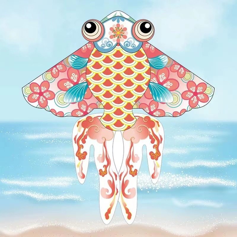 潍坊风筝国潮金鱼风筝批发传统金鱼风筝微风易飞女孩款长尾风筝