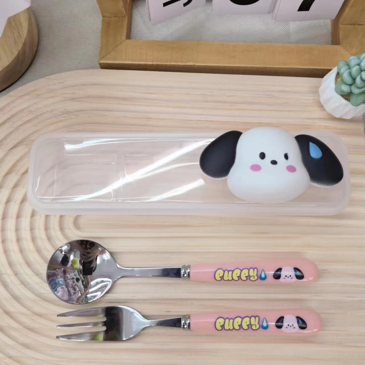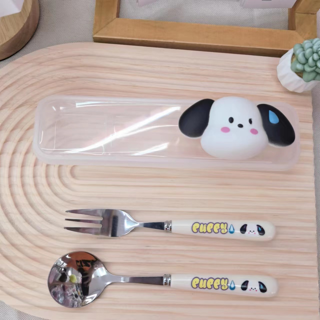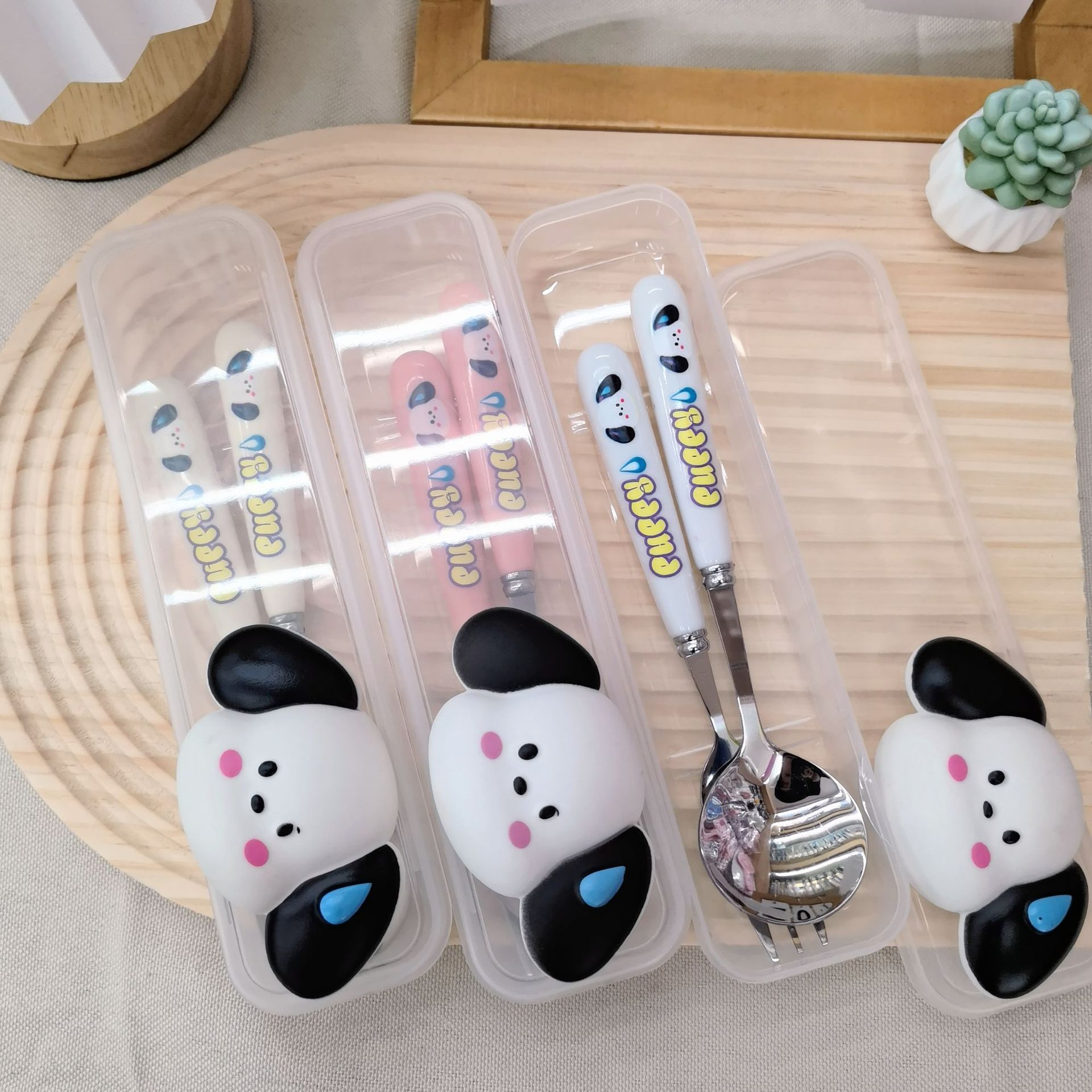 创意可爱帕恰狗Pochacco便携餐具叉勺二件套装帕恰卡通餐具组合装