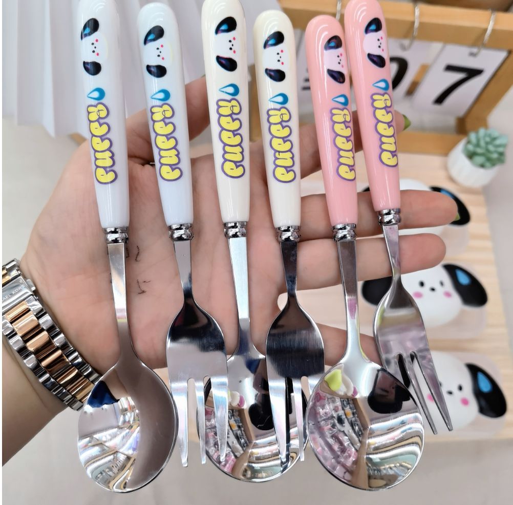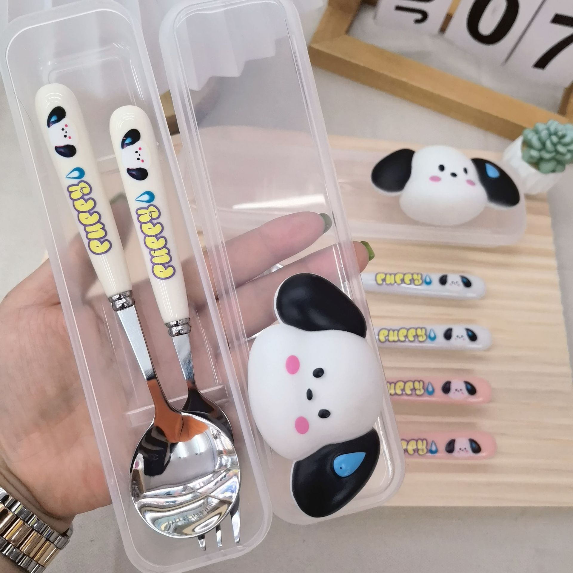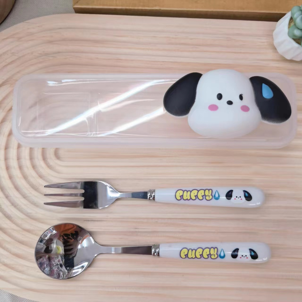 创意可爱帕恰狗Pochacco便携餐具叉勺二件套装帕恰卡通餐具组合装