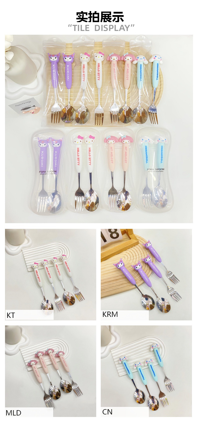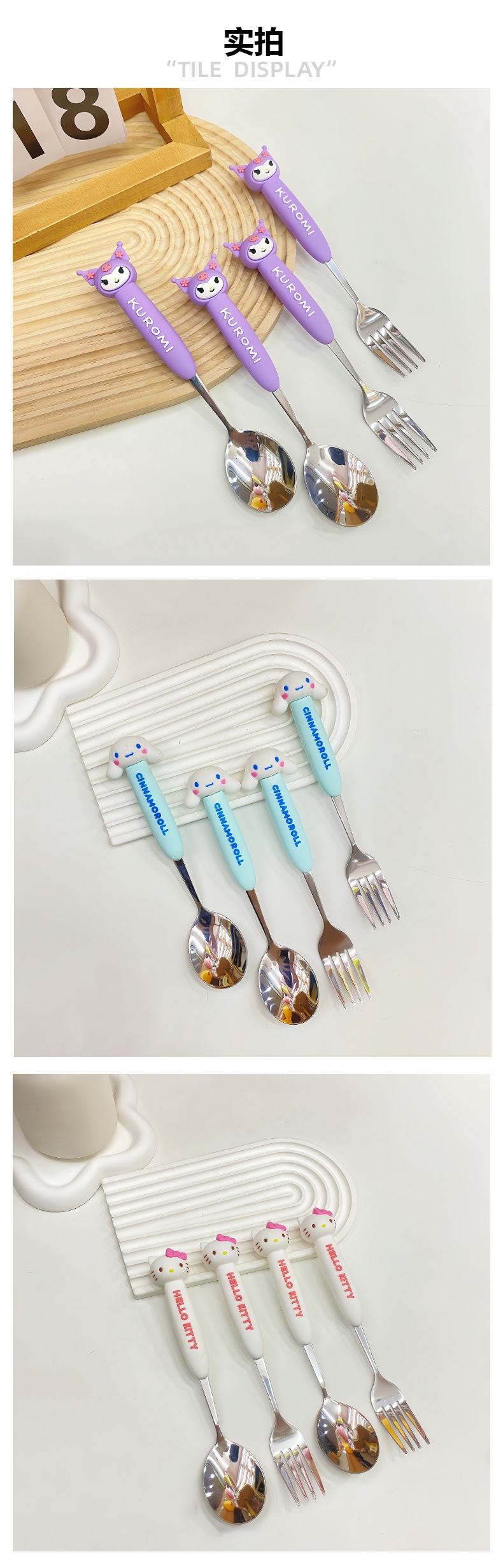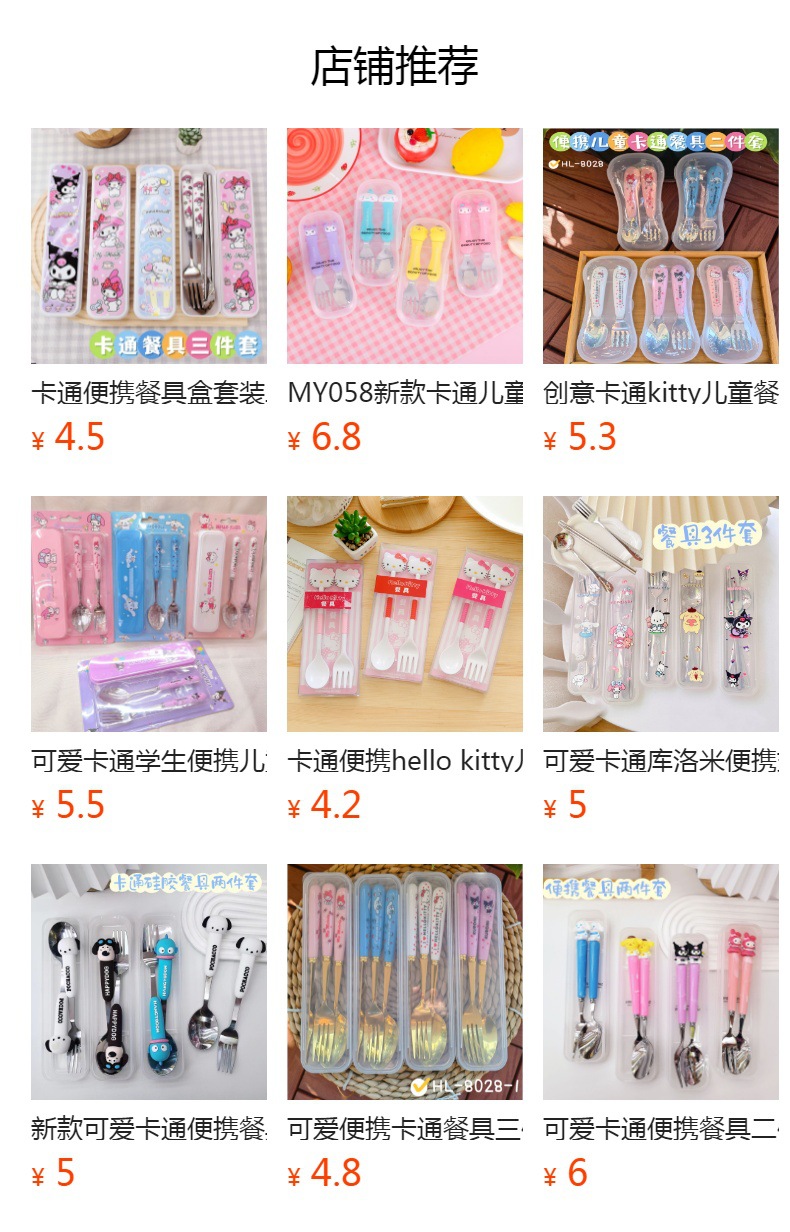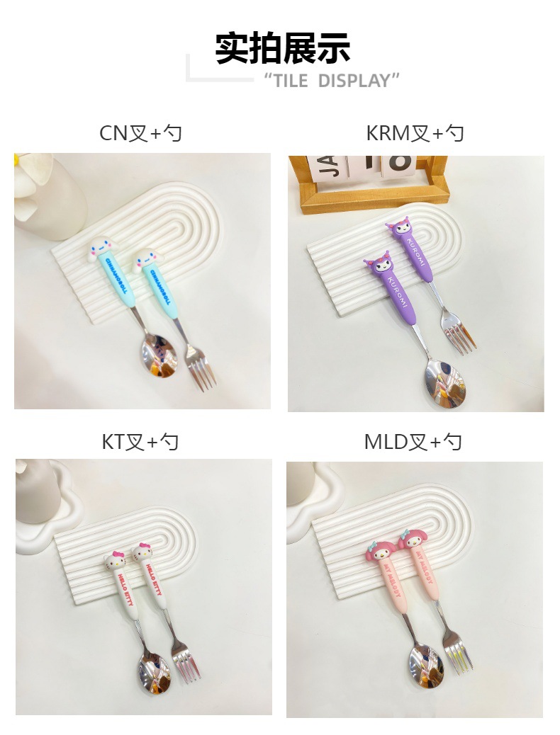 网红创意卡通三丽欧餐具叉勺套装学生便携304不锈钢吃饭叉子勺子