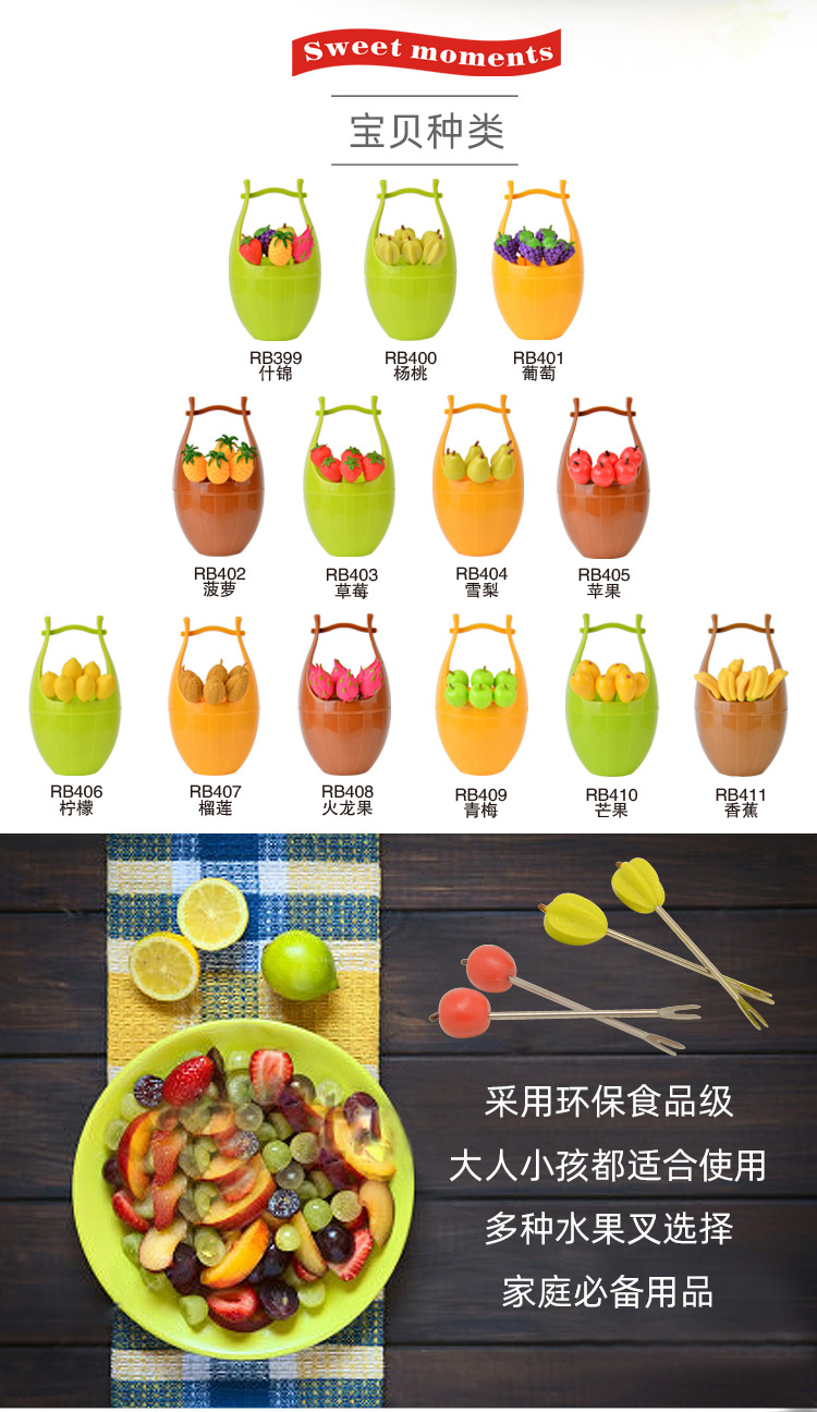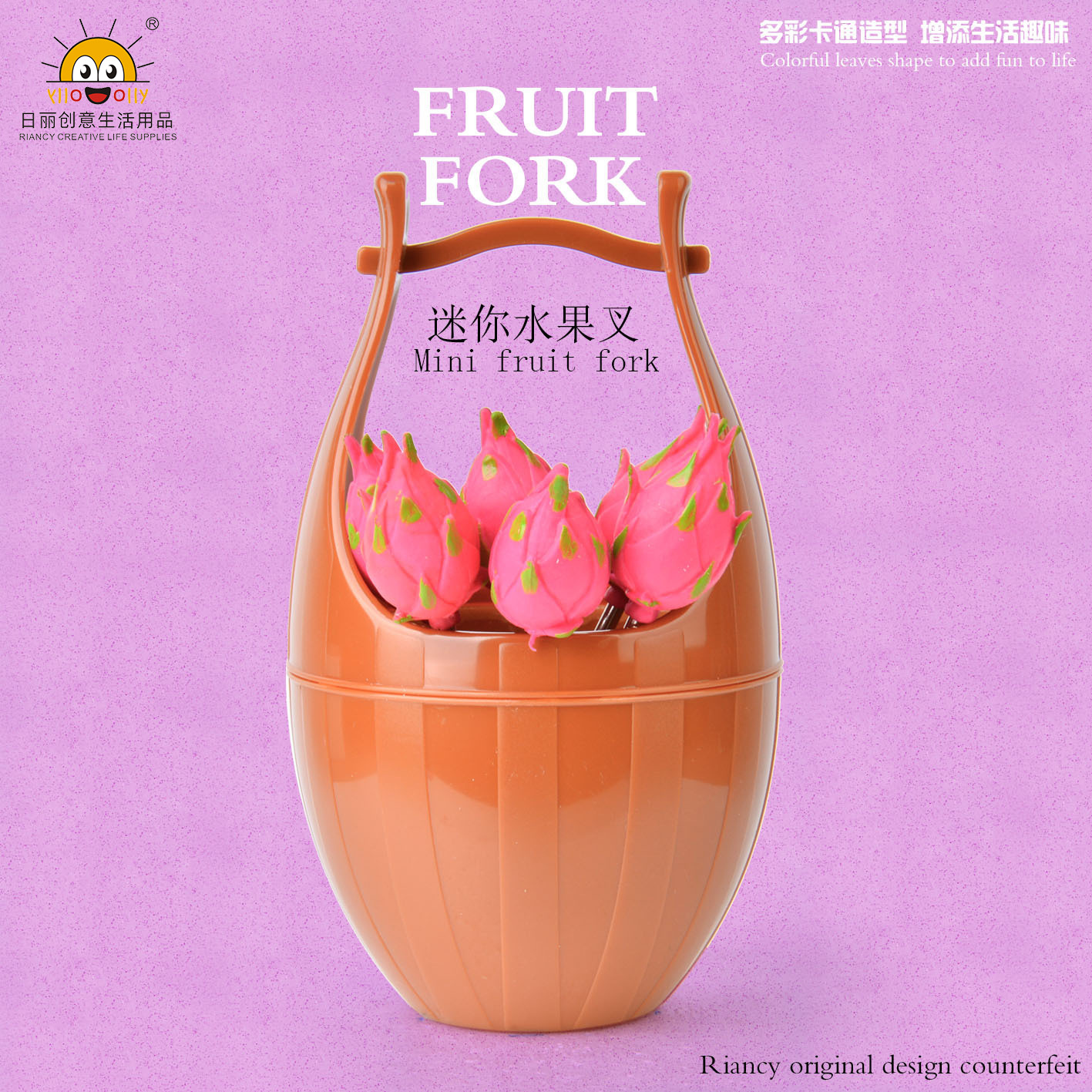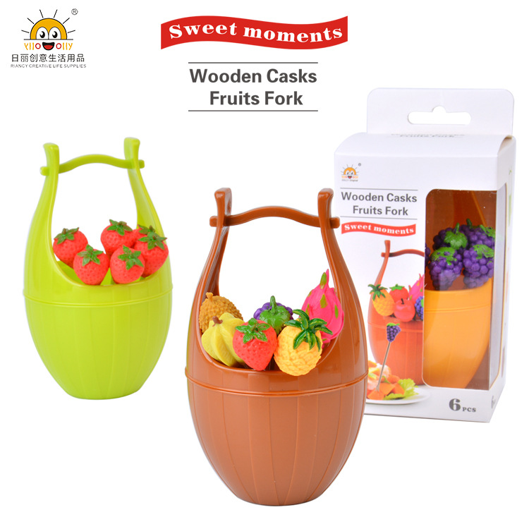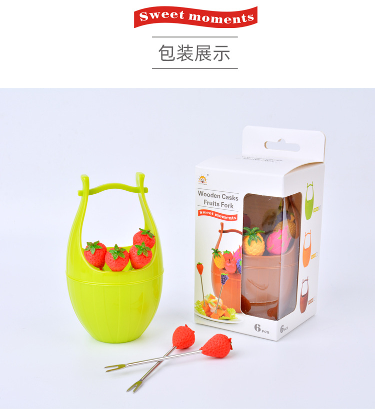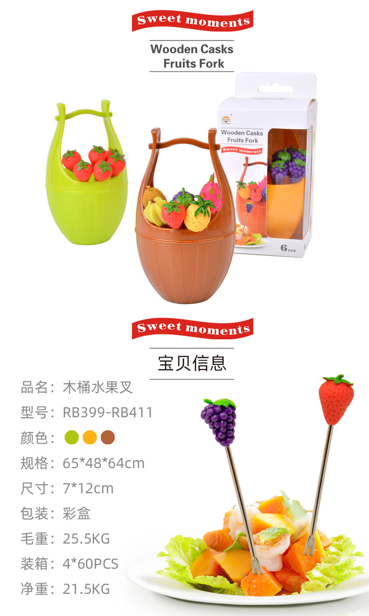 批发水果叉创意木桶水果签套装家用聚餐家居不锈钢叉子工厂RB411