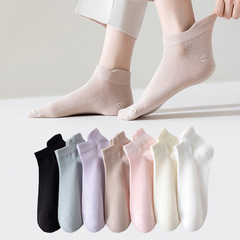 纯棉袜子女夏季短袜网眼透气提耳全棉女袜夏季薄款防臭防滑女袜