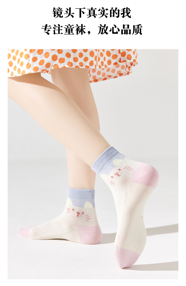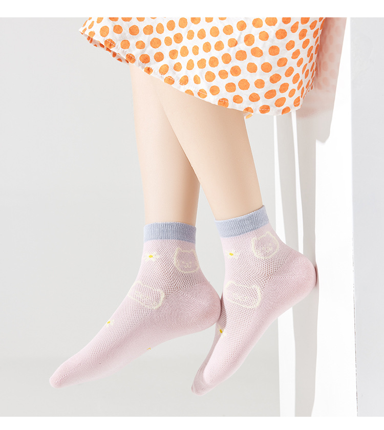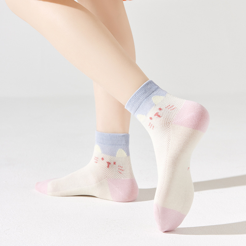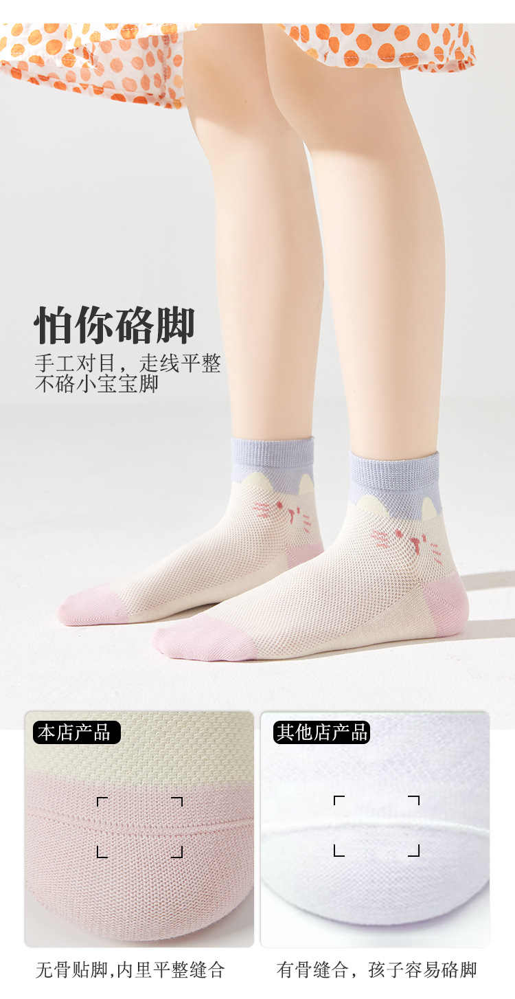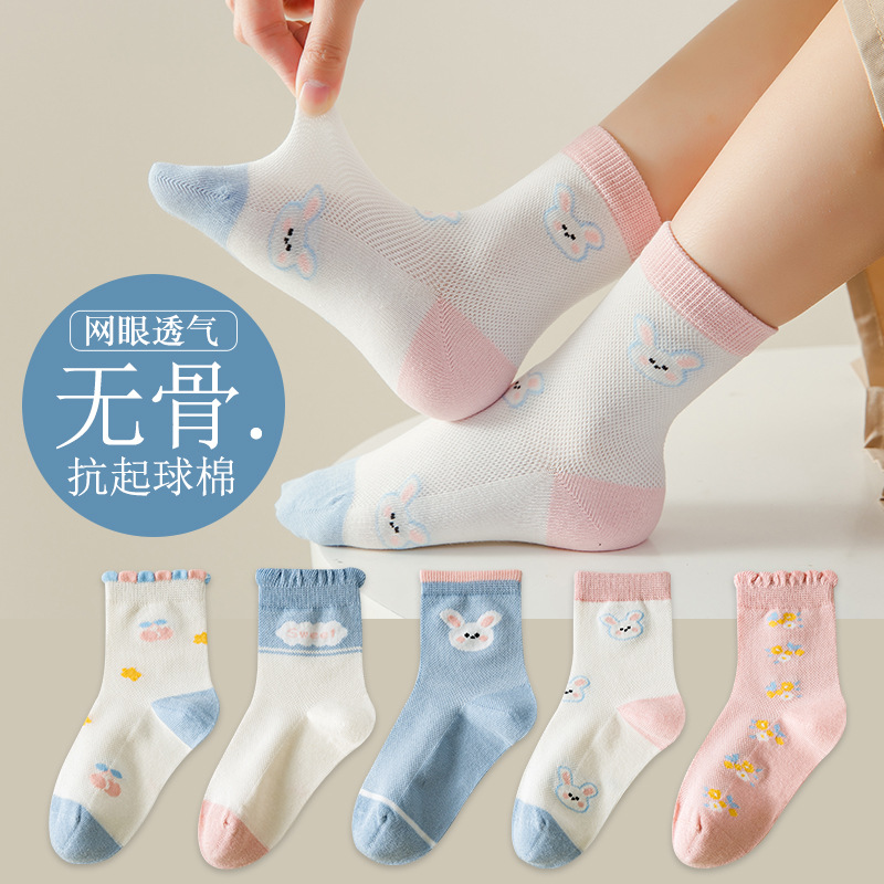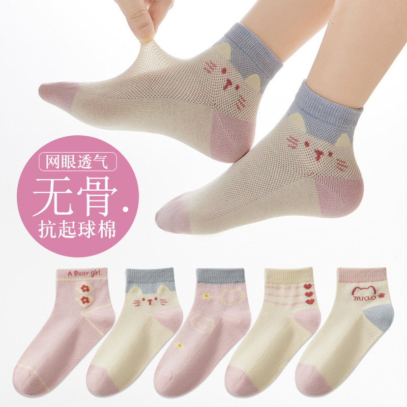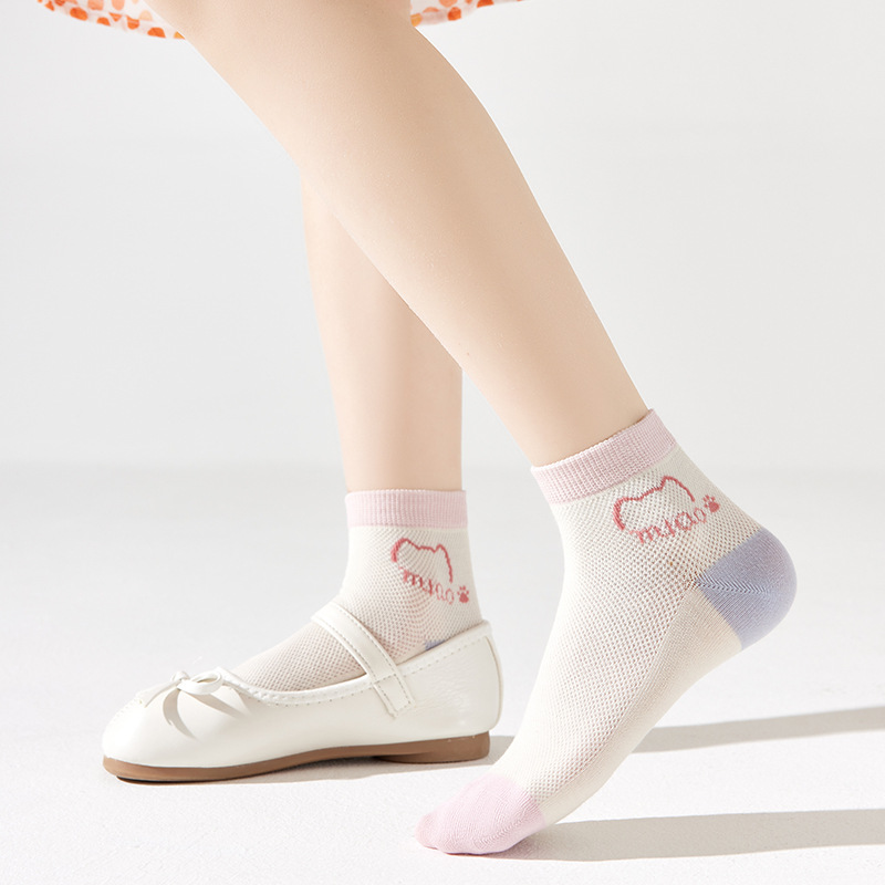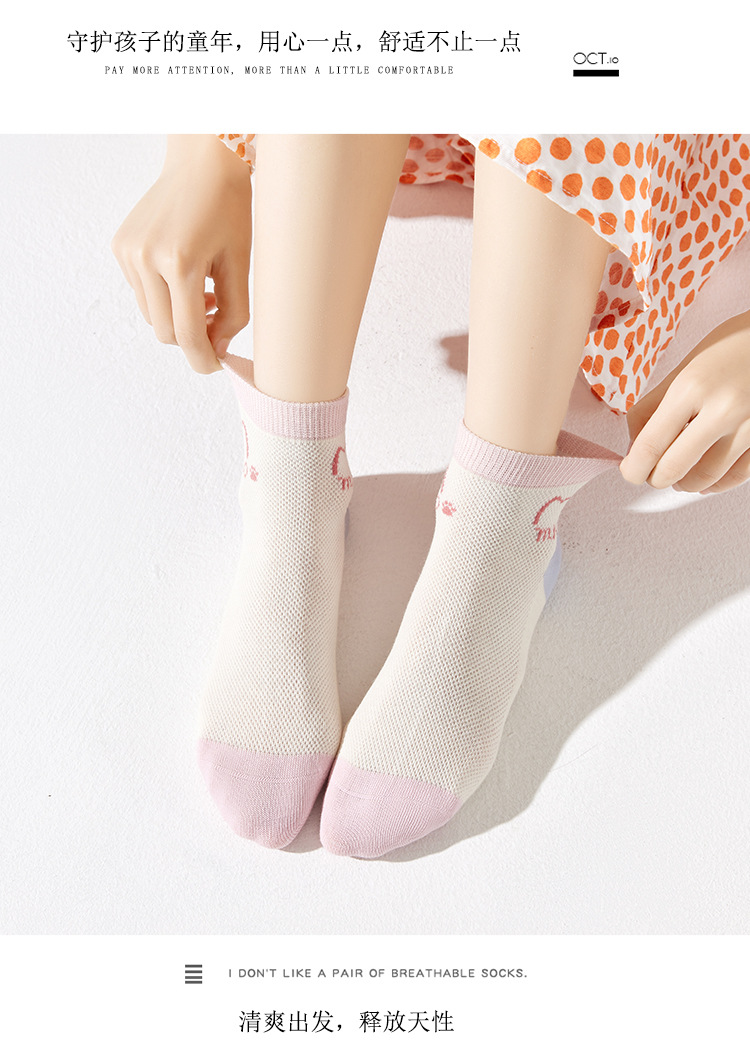 儿童袜子春夏季薄款女童卡通可爱棉袜夏季女宝无骨网眼粉色中筒袜